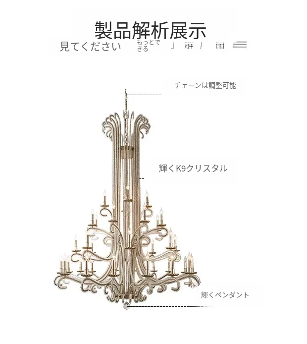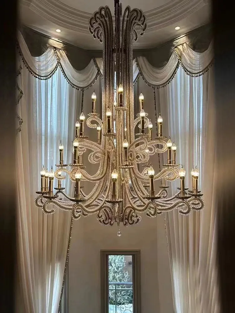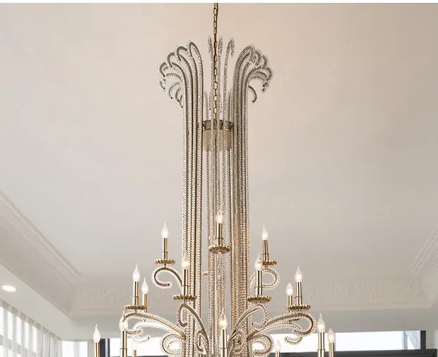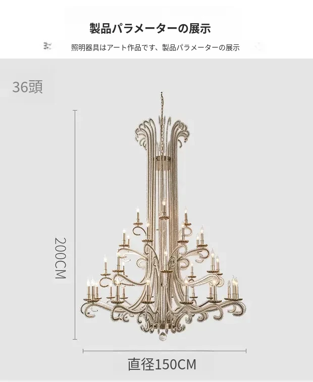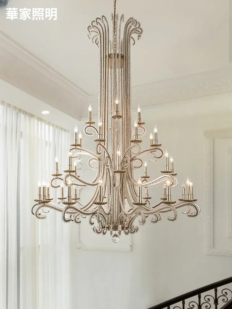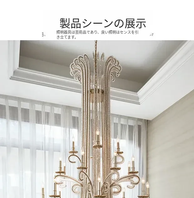 美しいアメリカンスタイルの複層リビングルーム用シャンデリア - ヴィラやアパートに最適な空間を演出するフランス風デザイン、ロフトや高い階段にぴったりの豪華な照明。