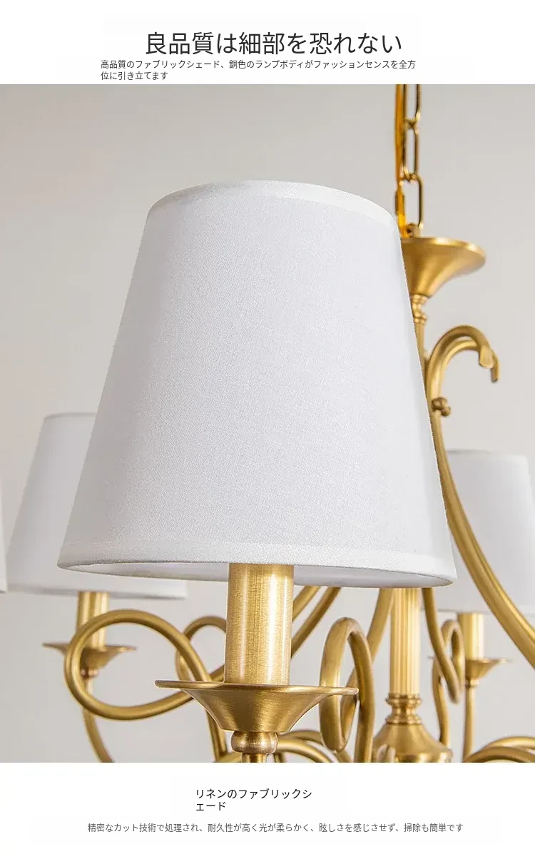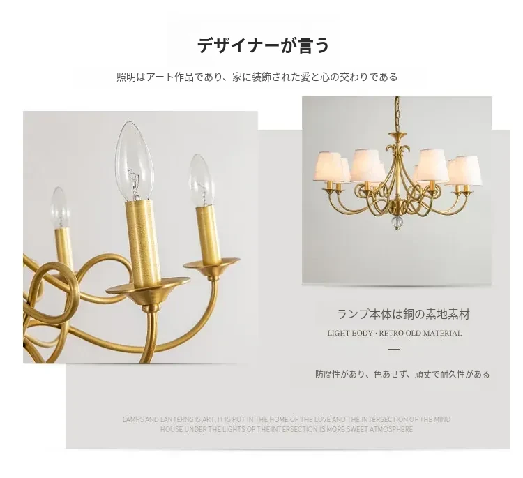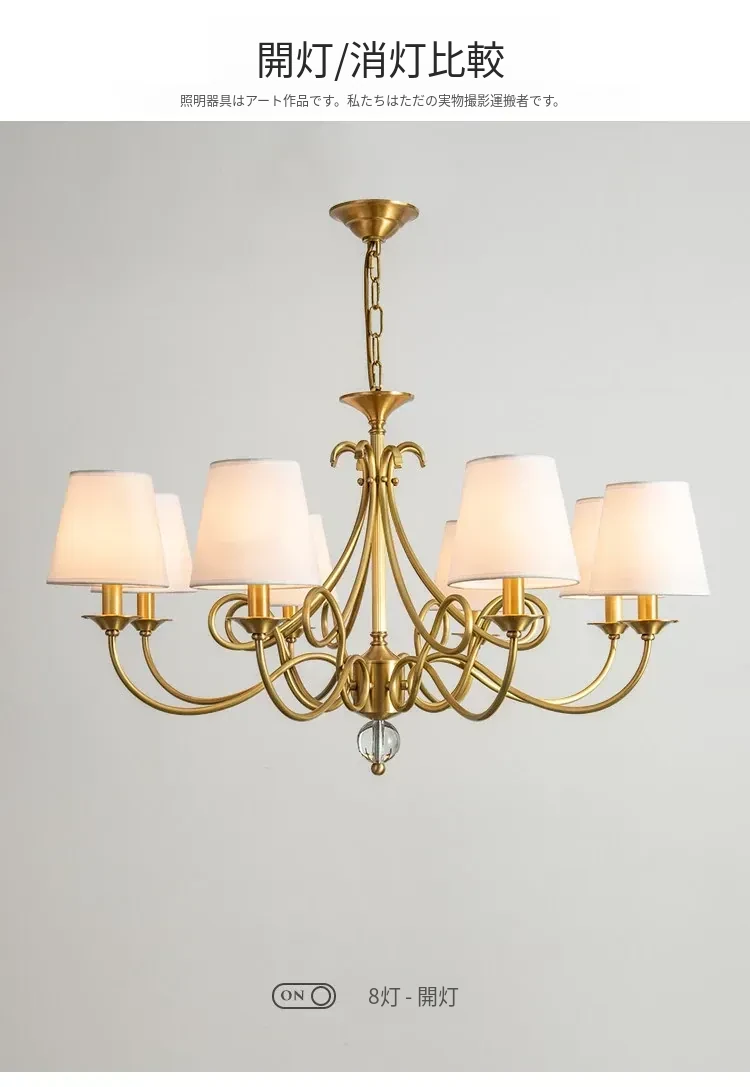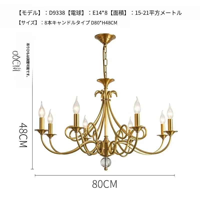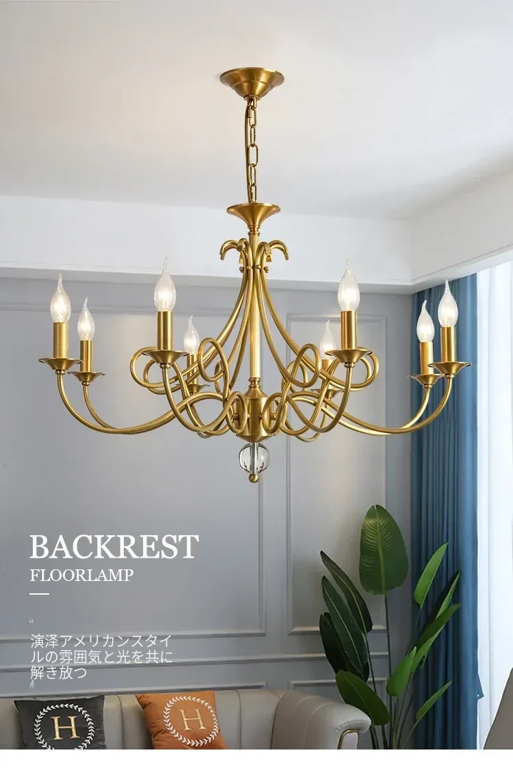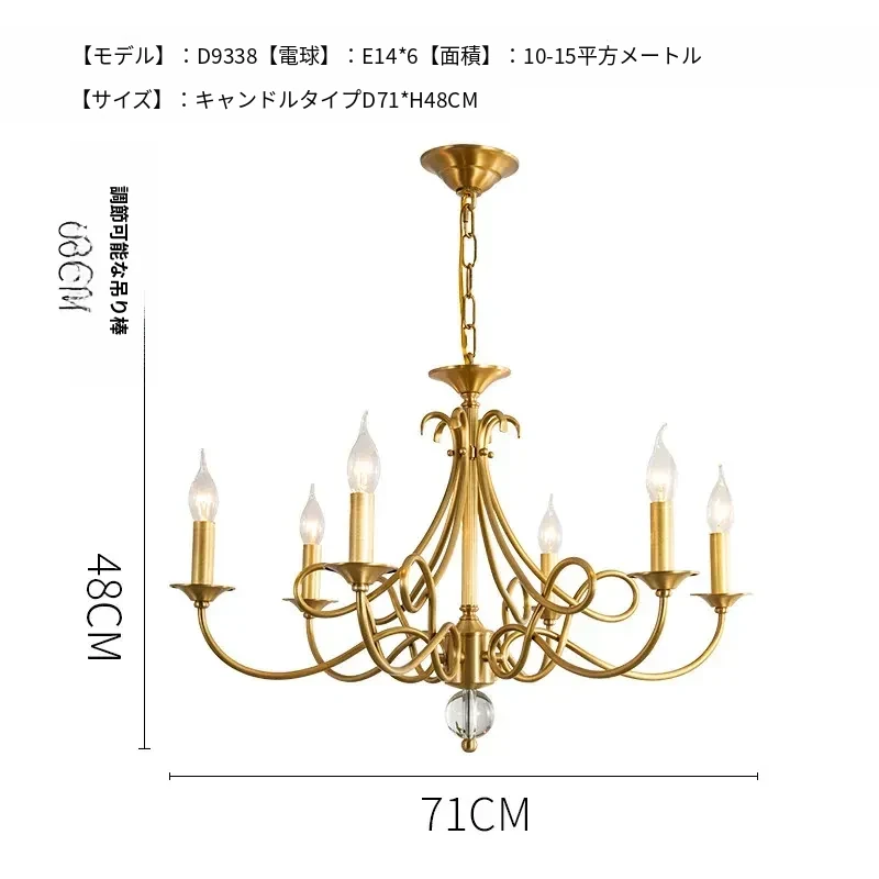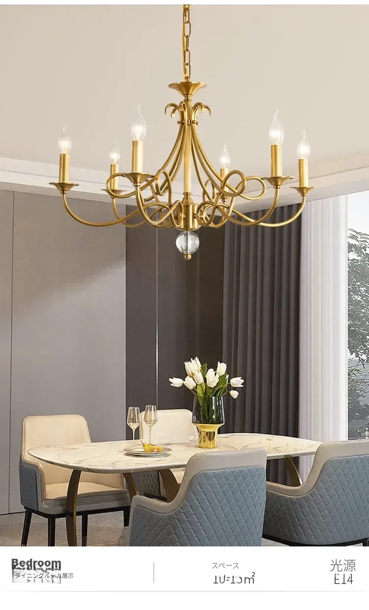 アメリカンスタイルのシャンデリア|リビング&ダイニング用|フレンチラグジュアリーな全銅製|シンプルで高級感溢れるベッドルーム用キャンドルライト|お部屋をおしゃれに演出するアイテム!