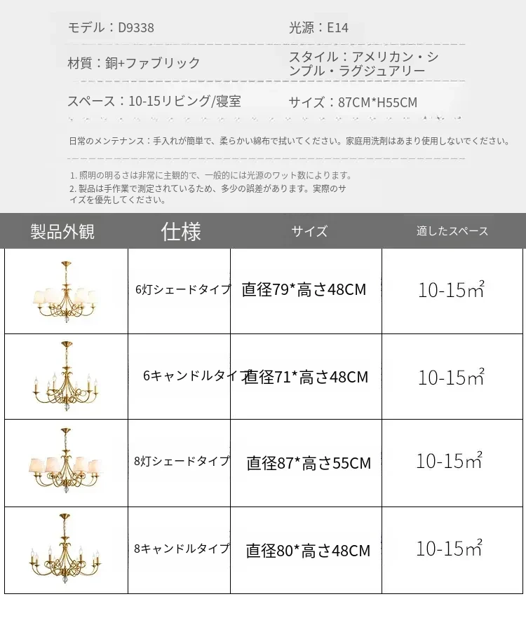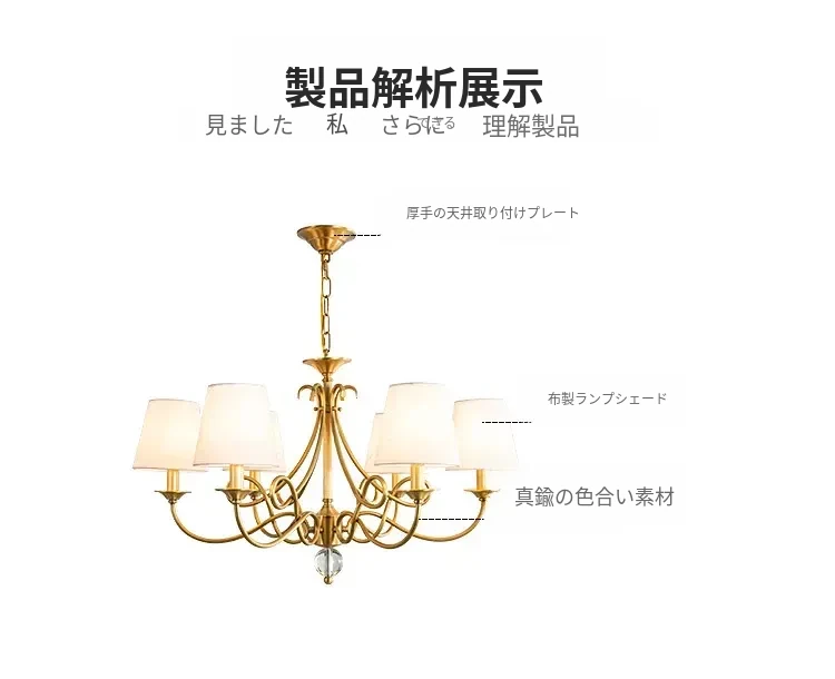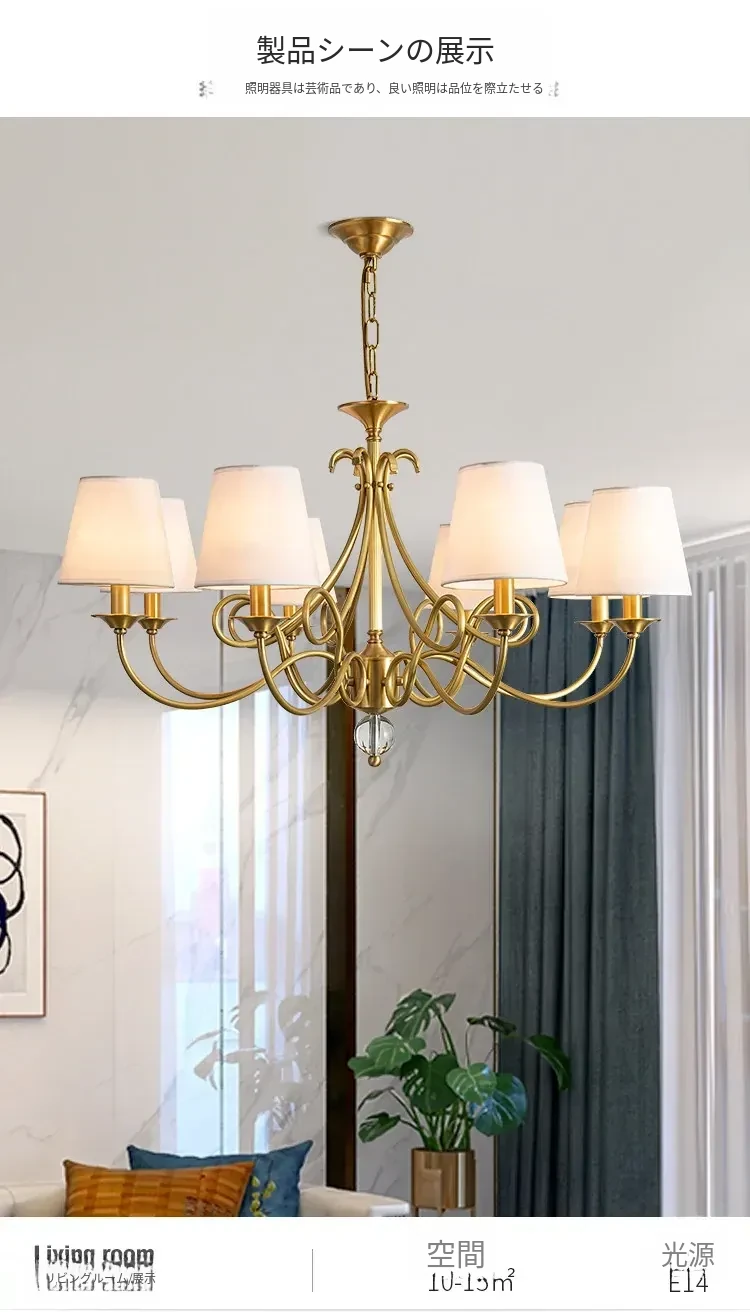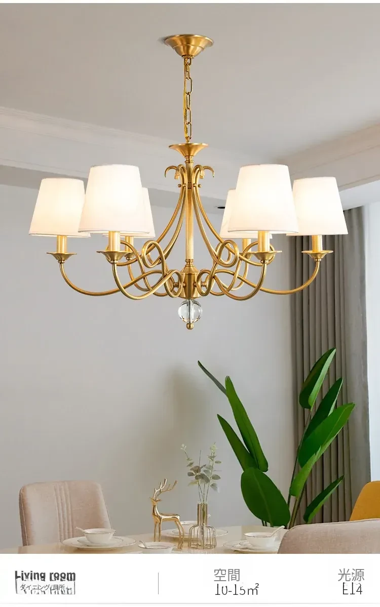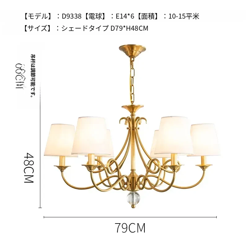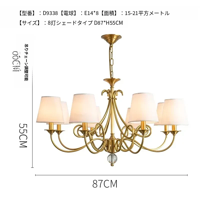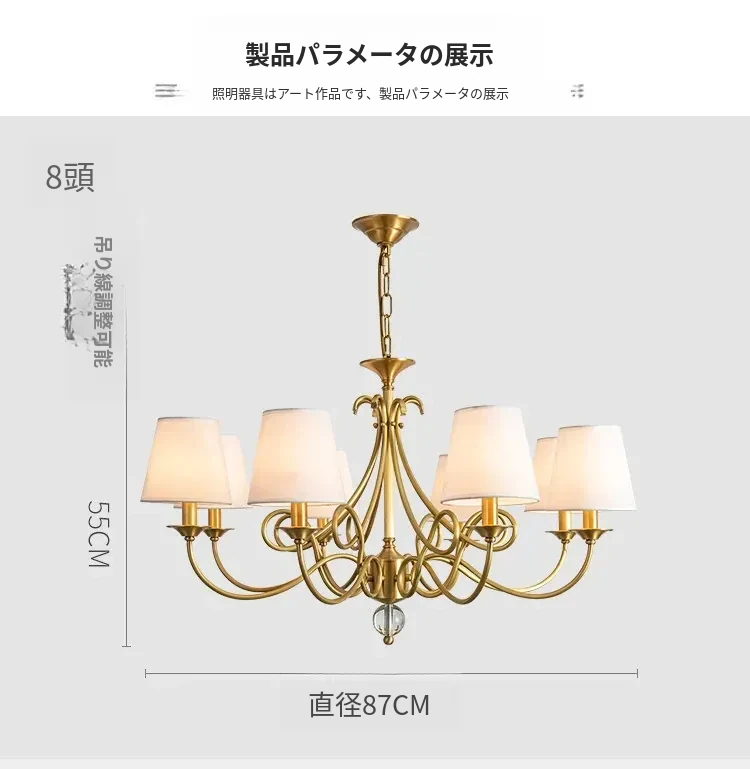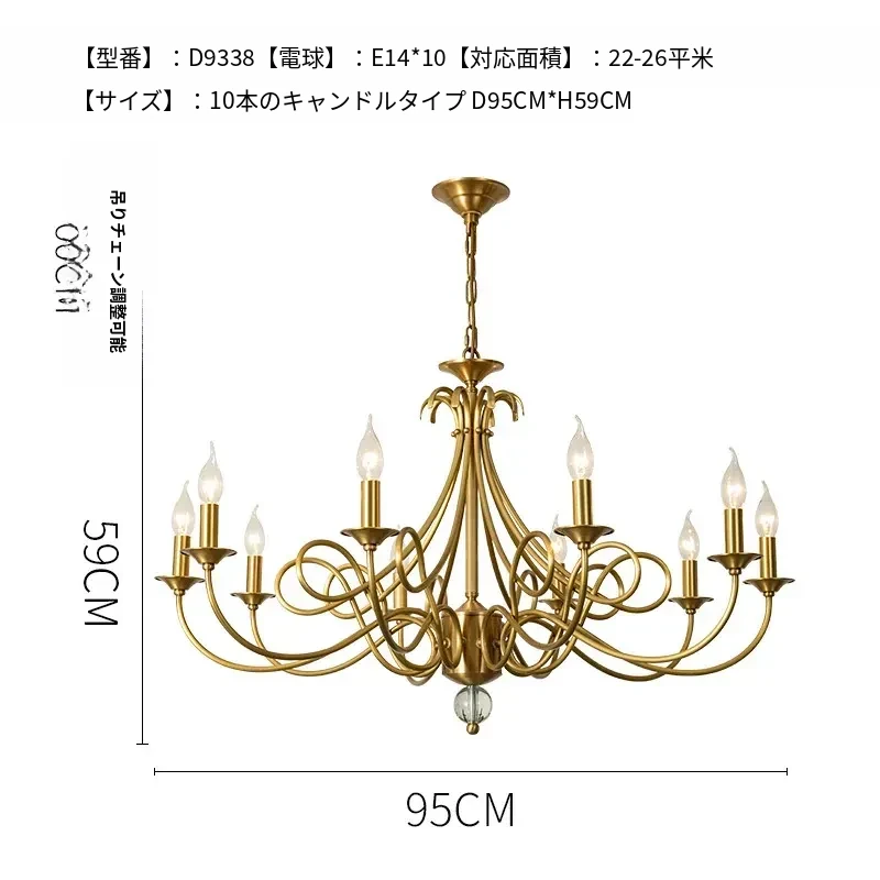 アメリカンスタイルのシャンデリア|リビング&ダイニング用|フレンチラグジュアリーな全銅製|シンプルで高級感溢れるベッドルーム用キャンドルライト|お部屋をおしゃれに演出するアイテム!