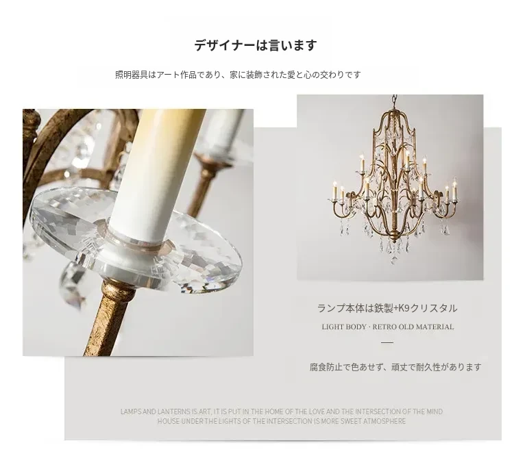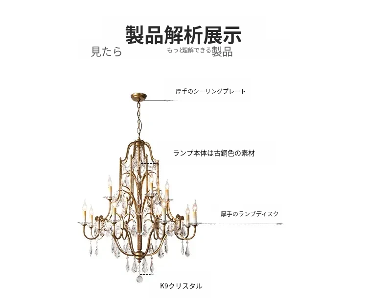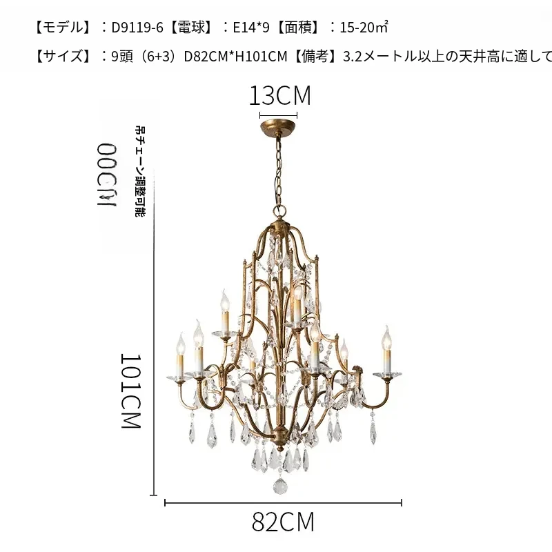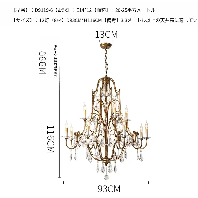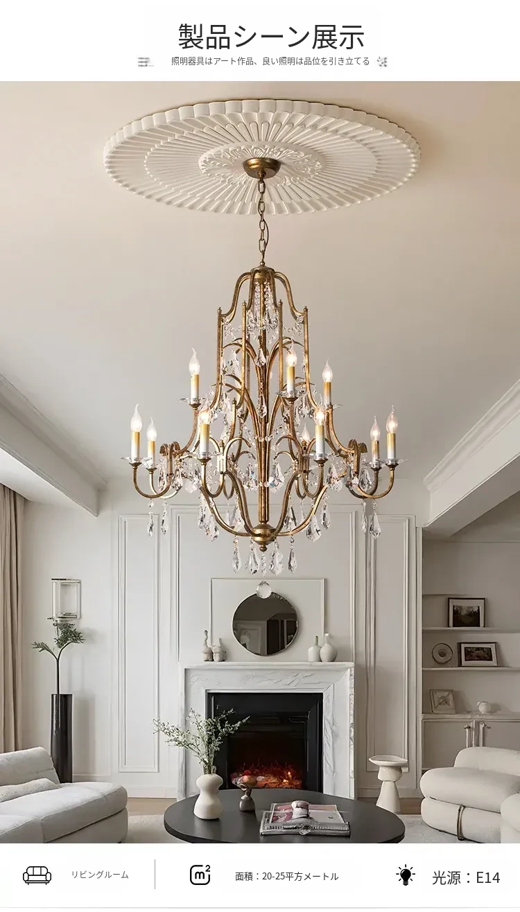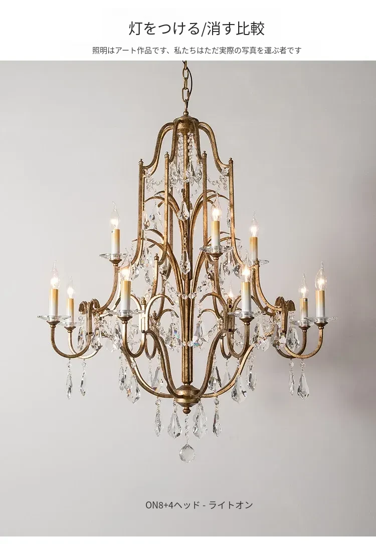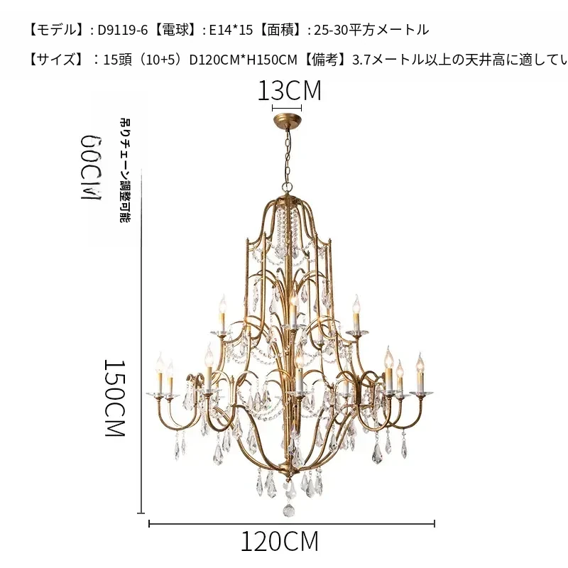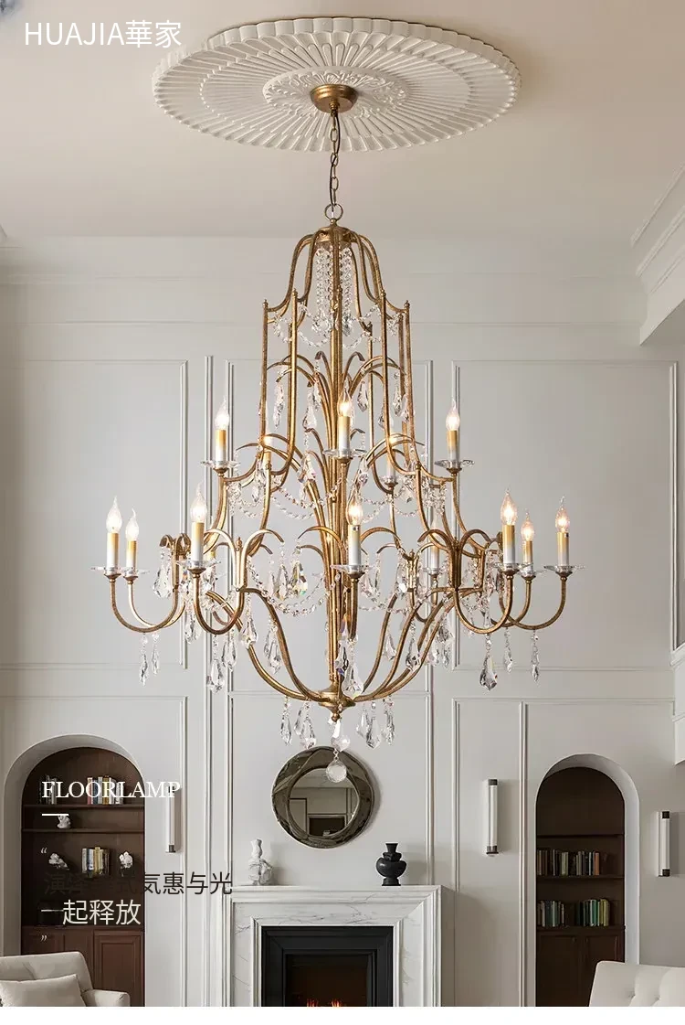 アメリカンスタイルの豪華な二段式シャンデリア - リビングルームや別荘、アパートに最適!高い天井に映えるクリスタルとフレンチキャンドルデザインの美しいステップライト。ダイニングや階段スペースにぴったりのアイテム!