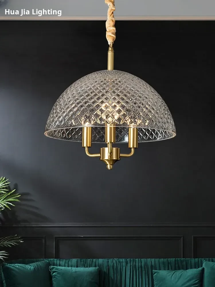 Elegant Copper Mini Pendant Light for Dining and Bar Areas - American Minimalist Style, Perfect for Model Homes, Studies, and Entryways - Round Glass Design
