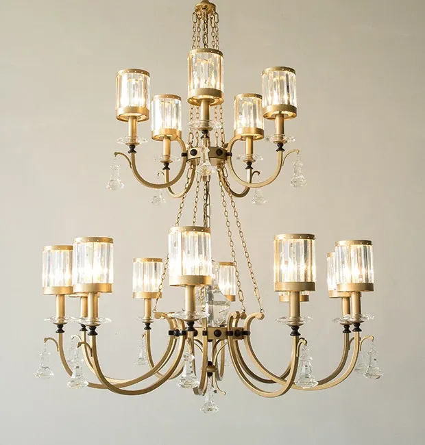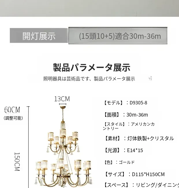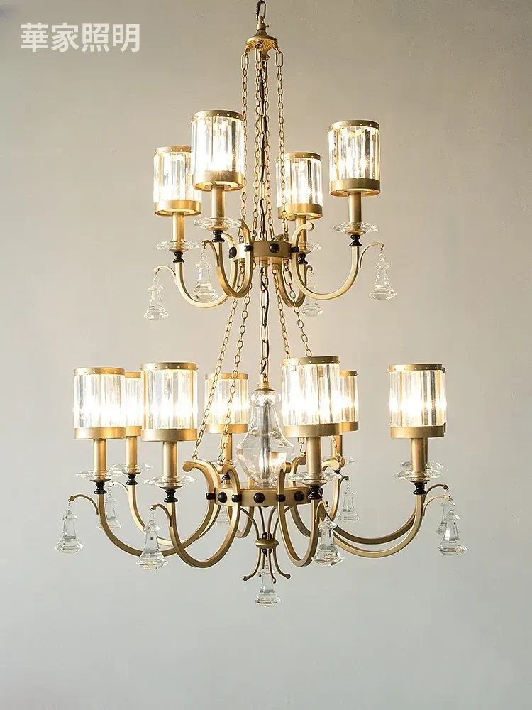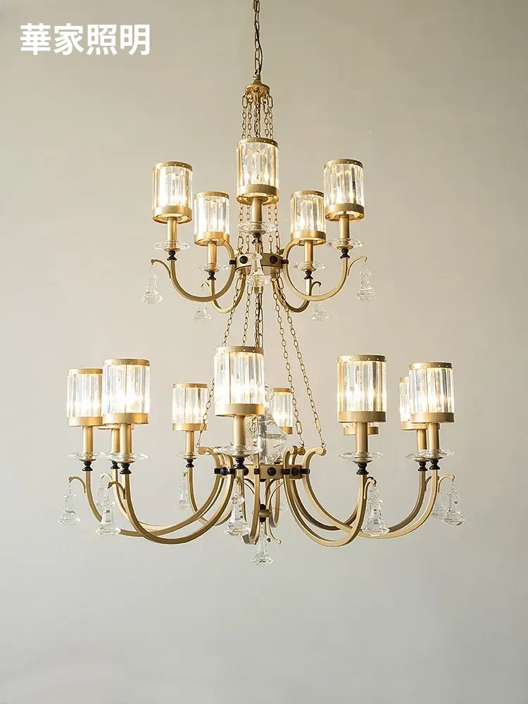 豪華な水晶シャンデリア - ヴィラや二階建てのリビングにぴったり!アメリカン・ヨーロピアンスタイルのダイニングルームや二重階段に最適な美しい照明器具。空間を華やかに演出します!