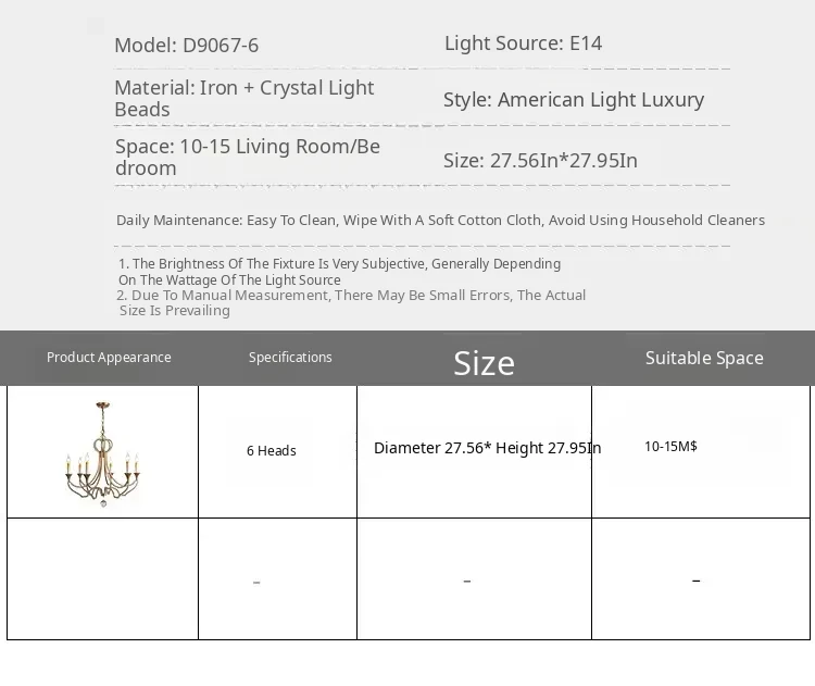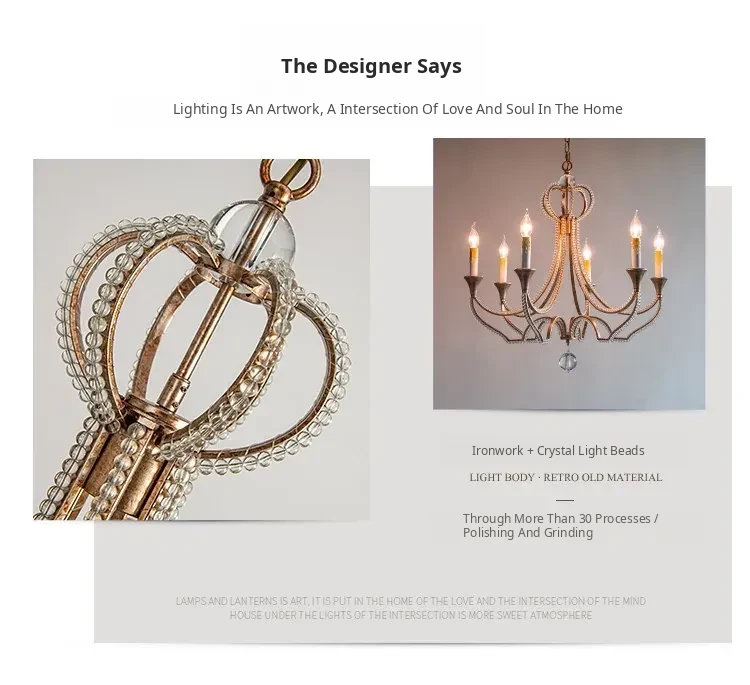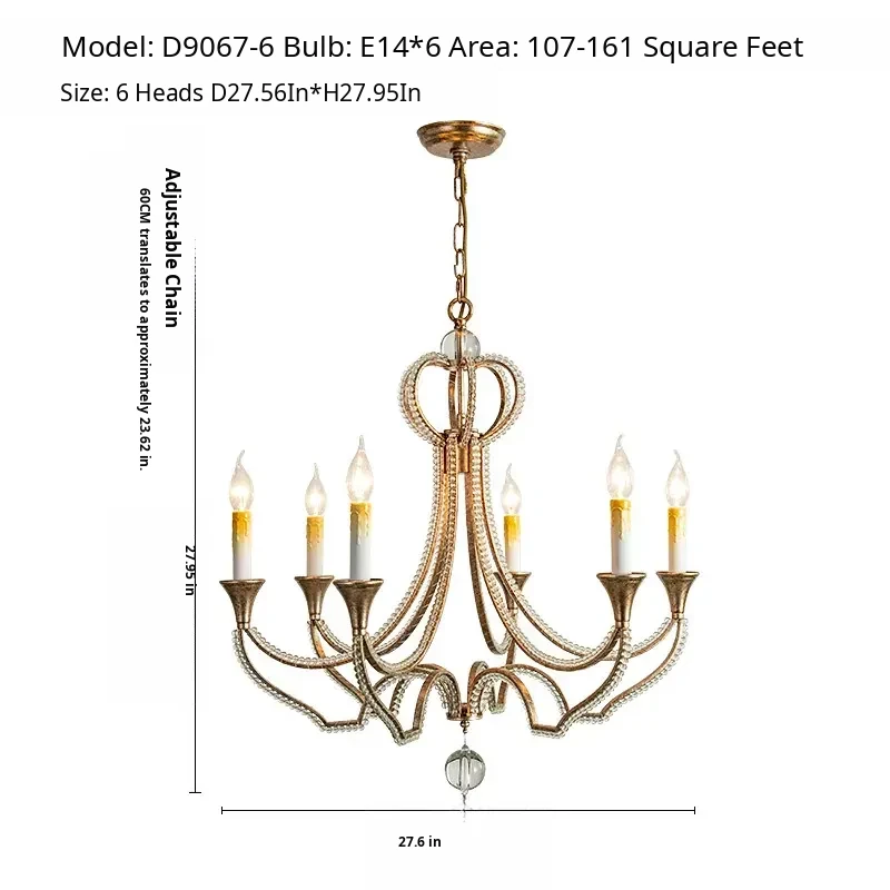 Elegant French Chandelier for Living Room and Dining Room - Vintage American Rustic Design for Bedroom and Master Suite - Luxurious Crystal Lighting Fixture