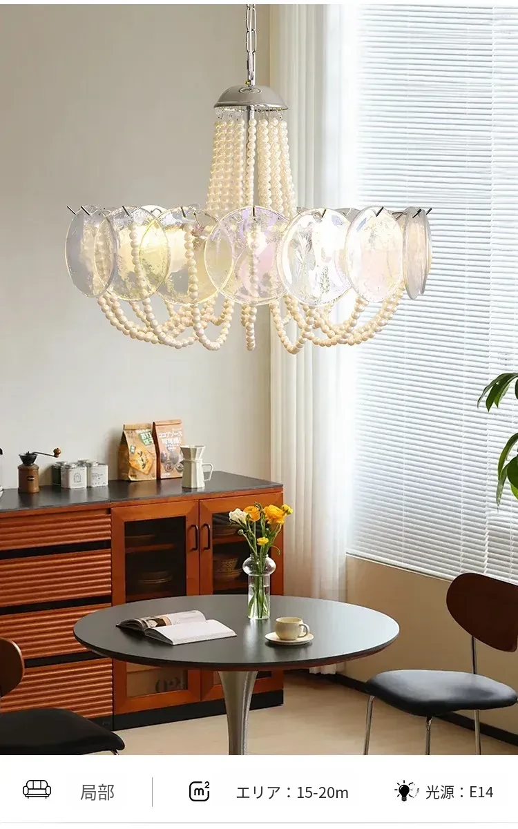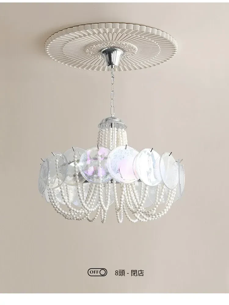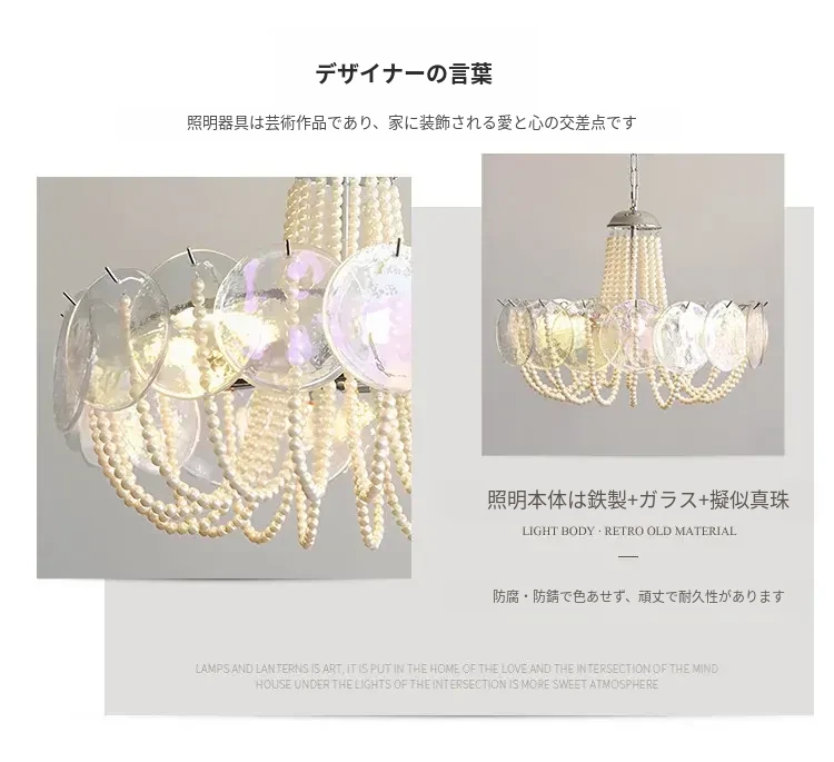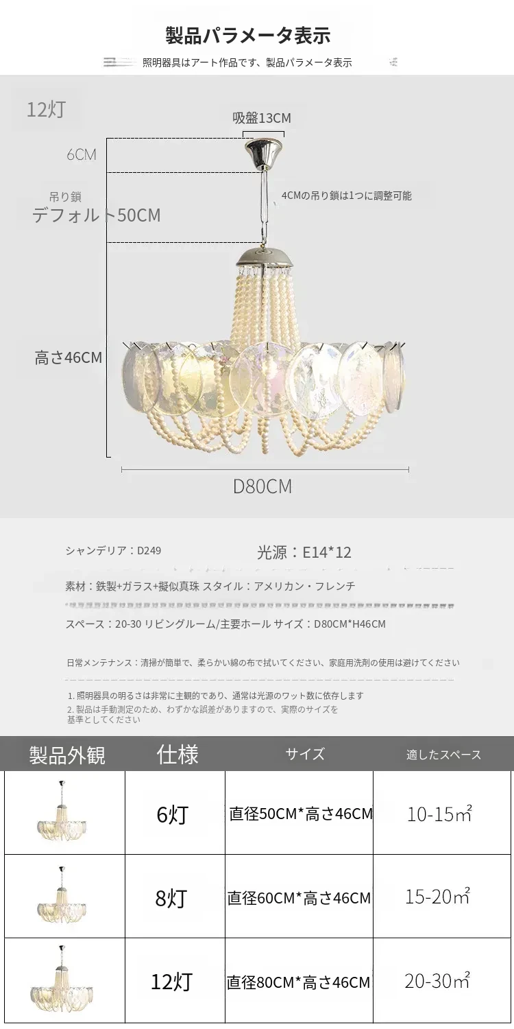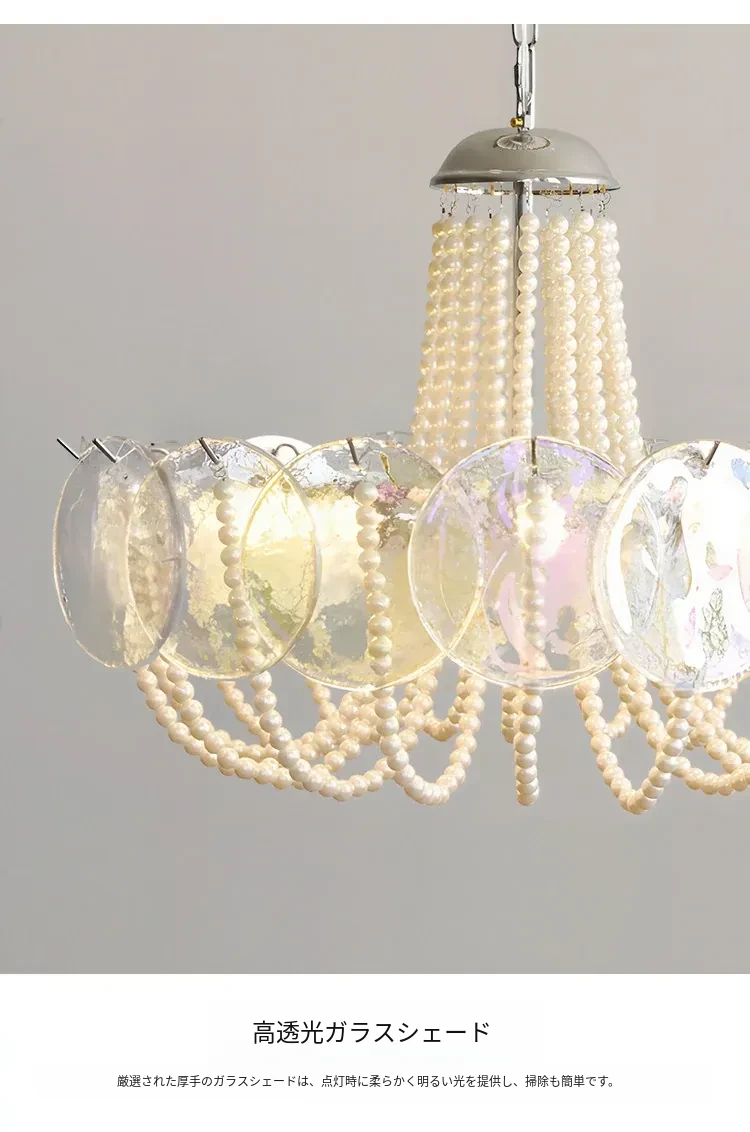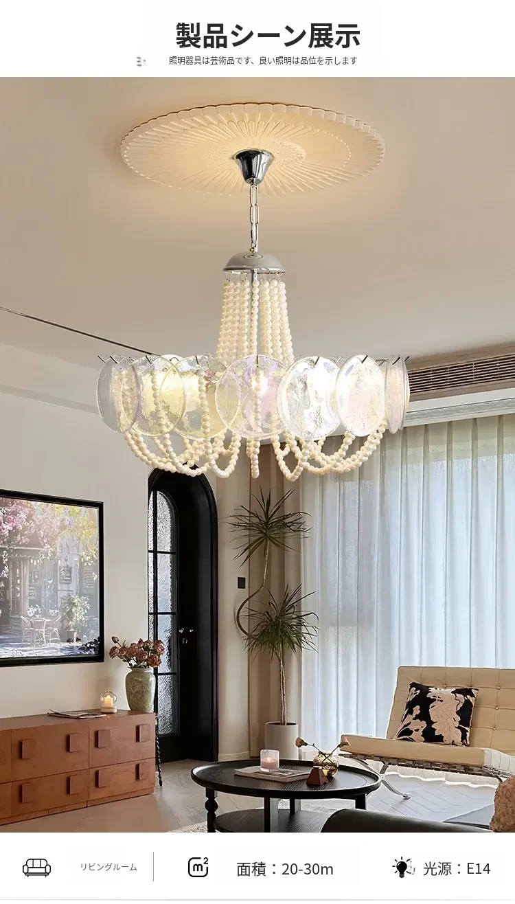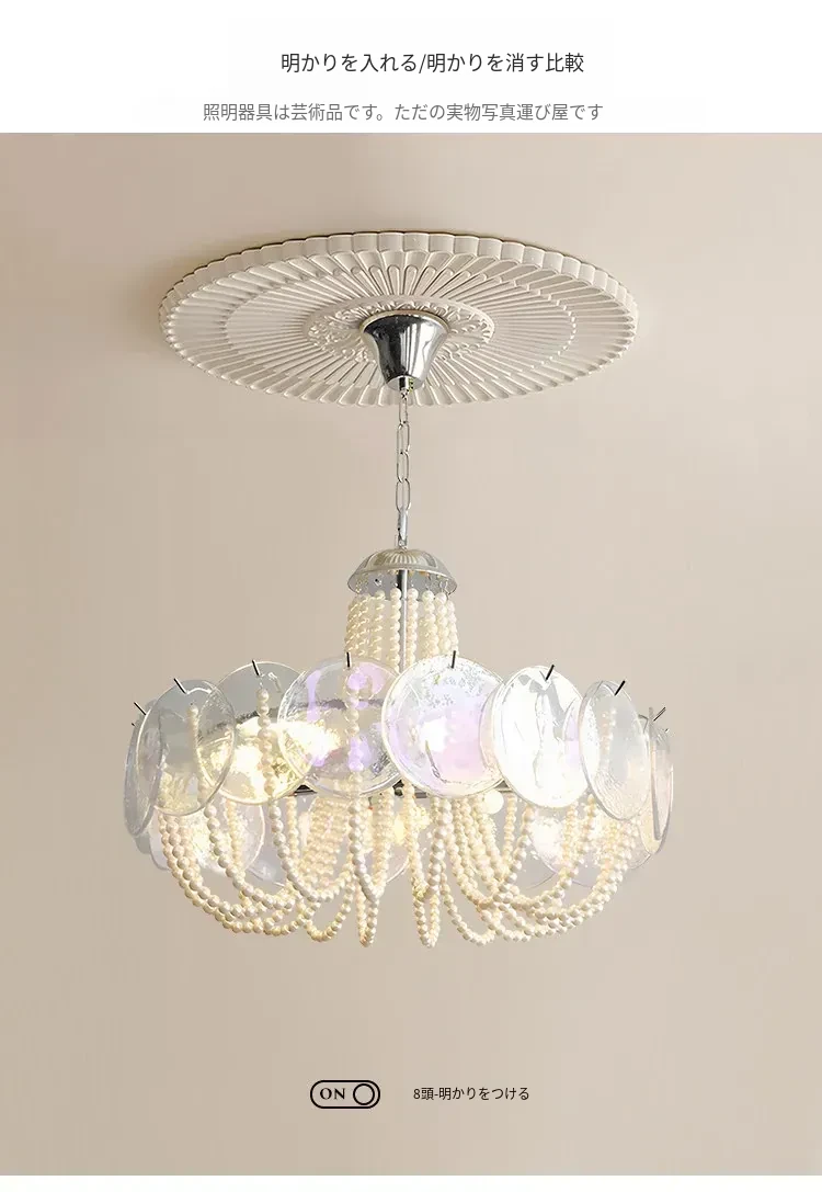フレンチスタイルのシャンデリア|ラグジュアリーなリビングにぴったり!アートでおしゃれなシンプルデザイン|寝室やダイニングにも最適なパールガラス製シャンデリア。魅力的な空間を演出します!