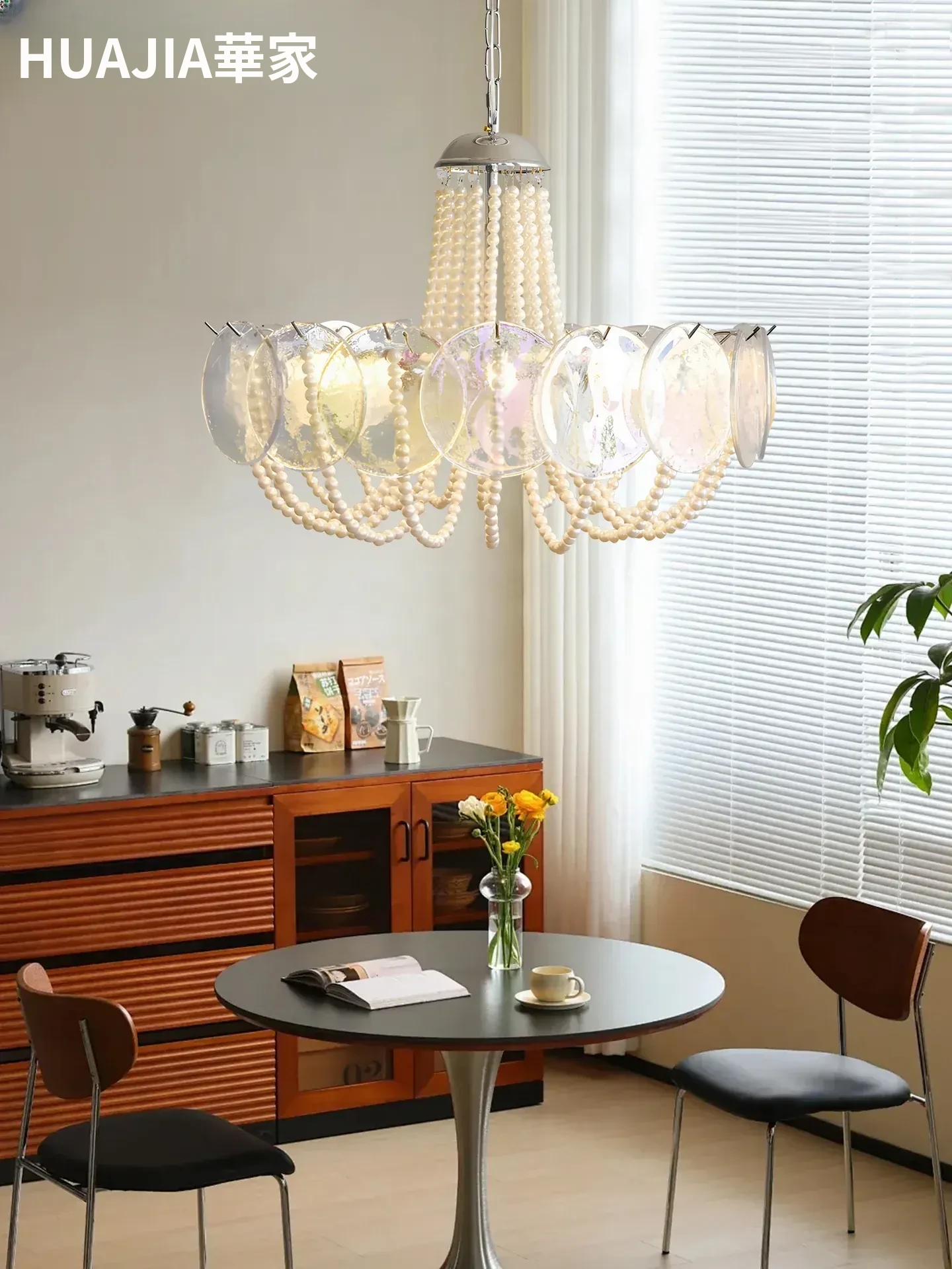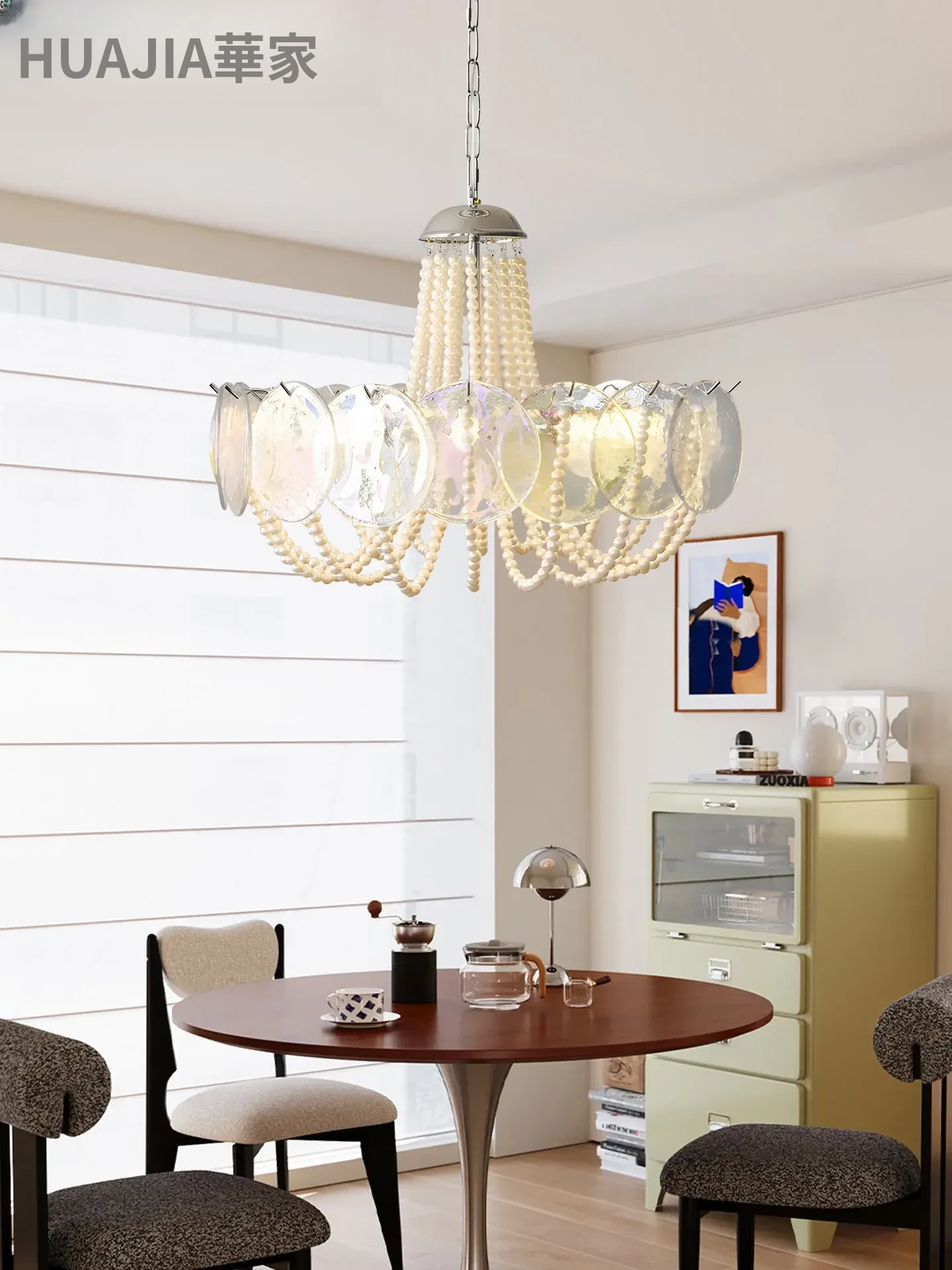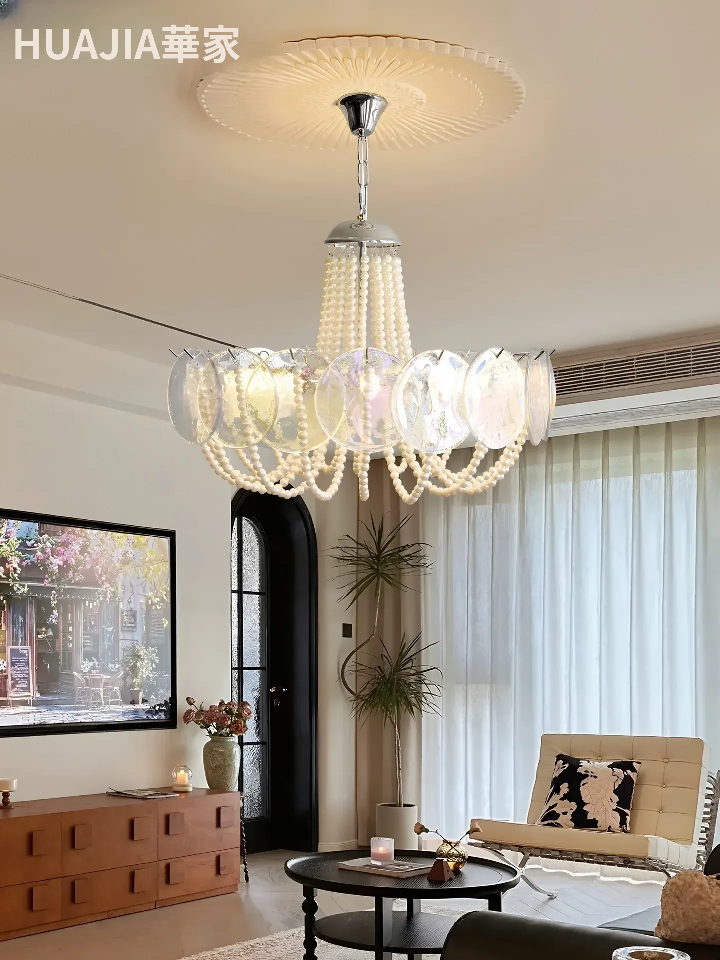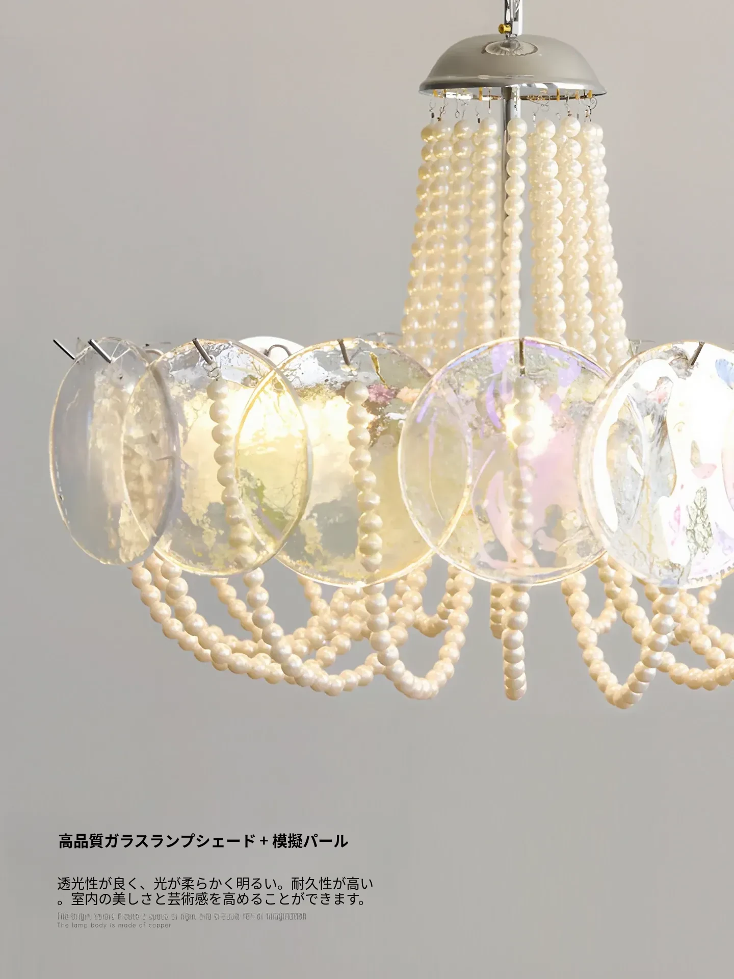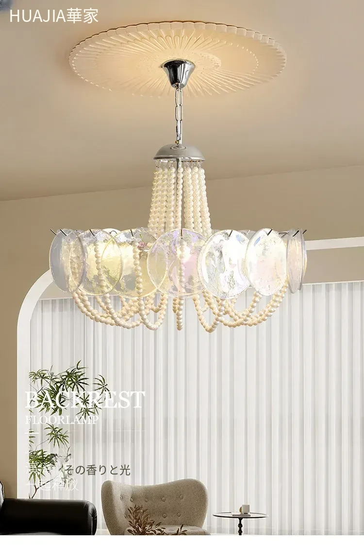 フレンチスタイルのシャンデリア|ラグジュアリーなリビングにぴったり!アートでおしゃれなシンプルデザイン|寝室やダイニングにも最適なパールガラス製シャンデリア。魅力的な空間を演出します!