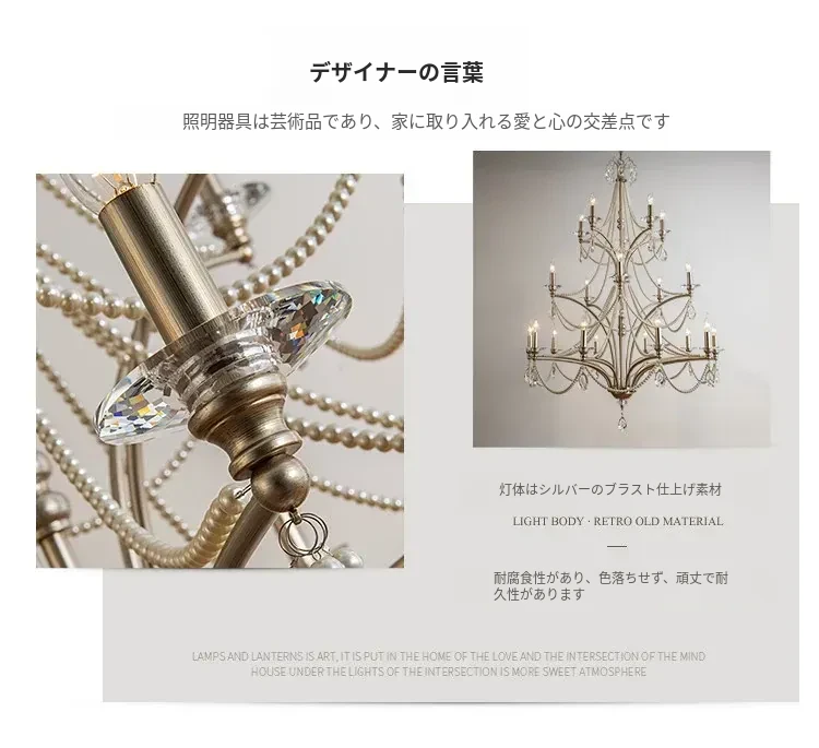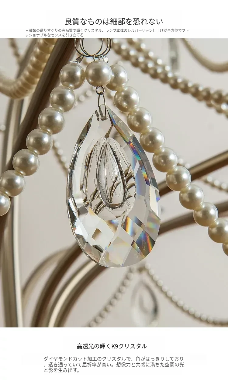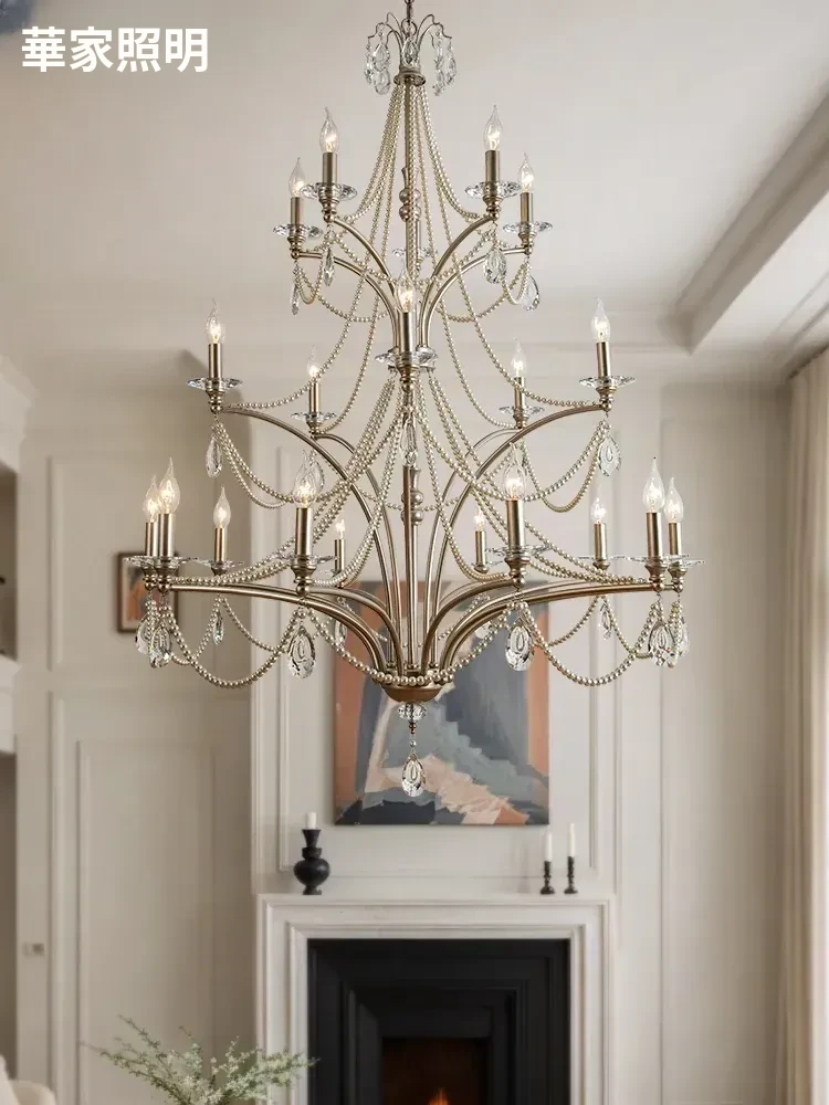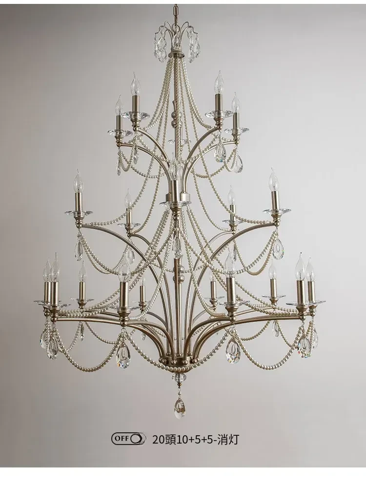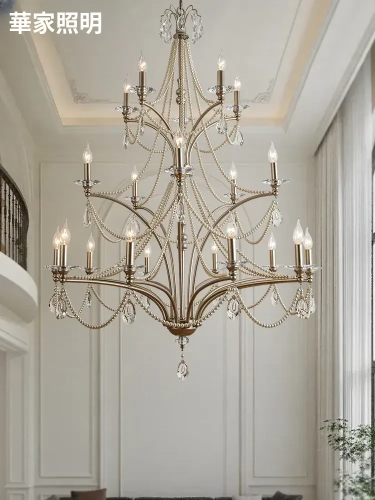 フレンチスタイルの豪華シャンデリア!2階建てアメリカンLOFT別荘の吹き抜けリビングにぴったり。美しい二層のパールクリスタルが階段を彩る、優雅な照明で特別な空間を演出!