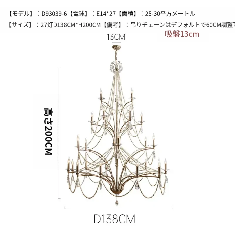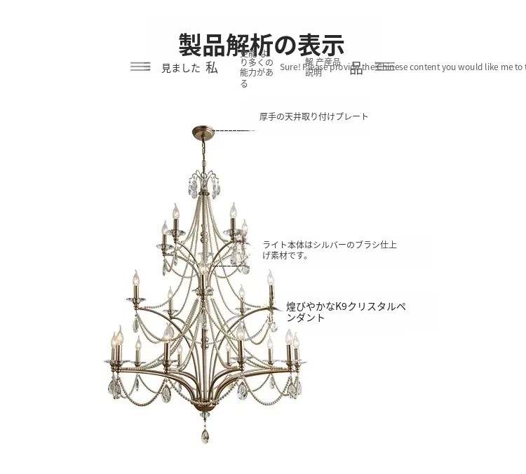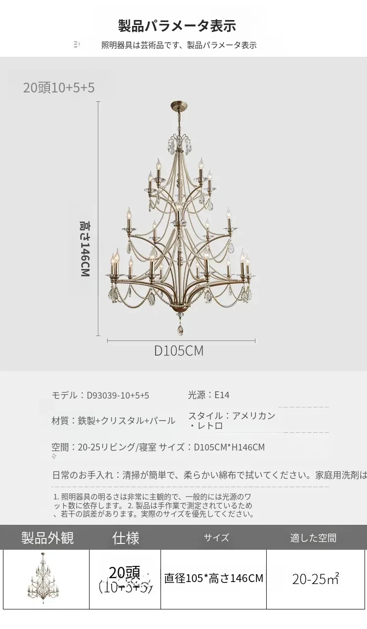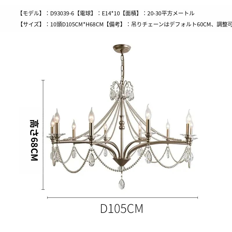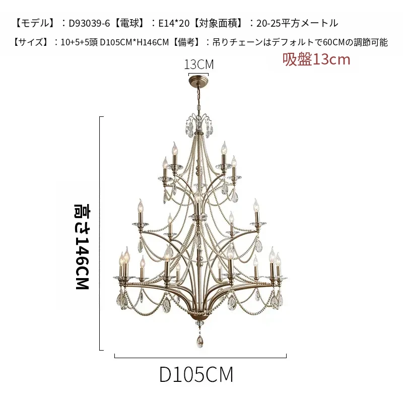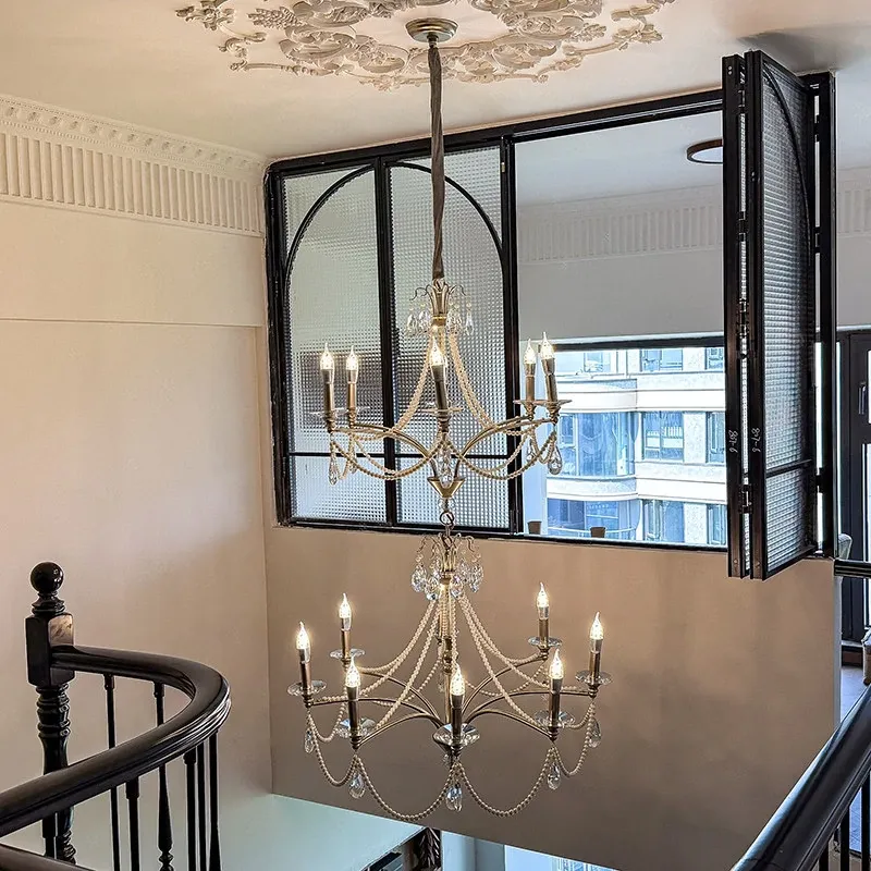 フレンチスタイルの豪華シャンデリア!2階建てアメリカンLOFT別荘の吹き抜けリビングにぴったり。美しい二層のパールクリスタルが階段を彩る、優雅な照明で特別な空間を演出!