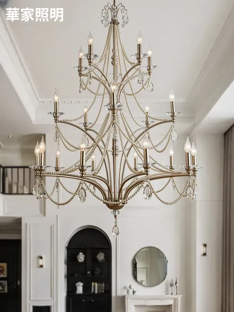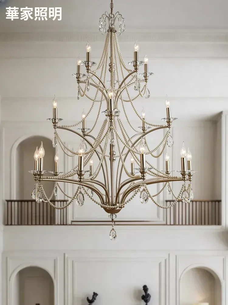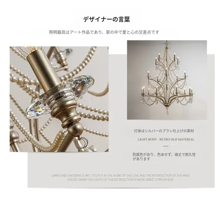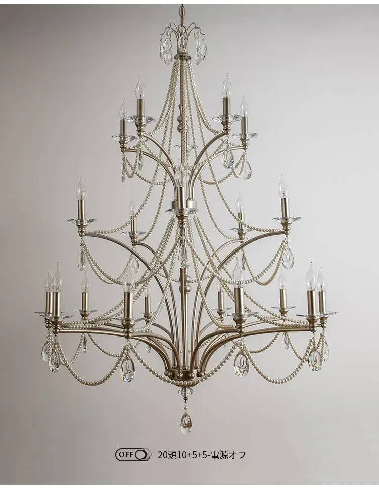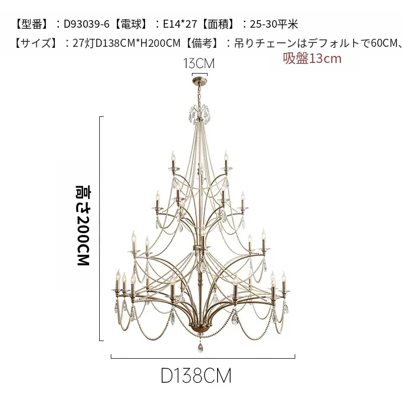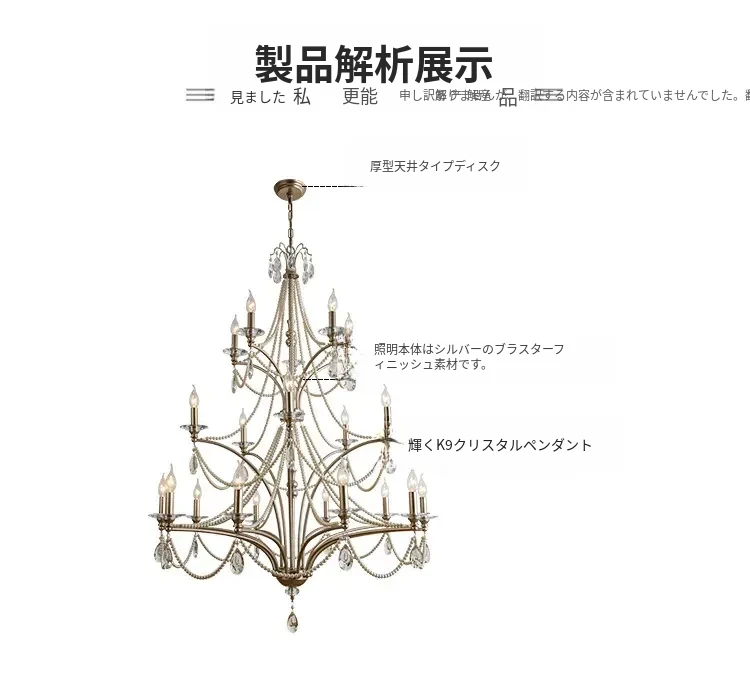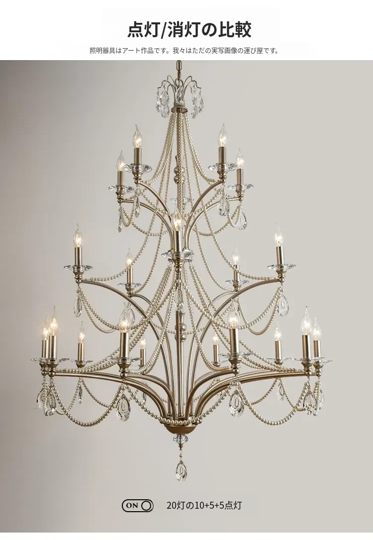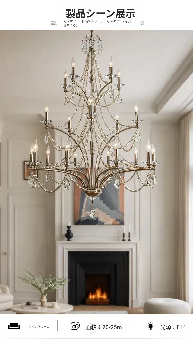 フランス風シャンデリア - ラグジュアリーなミニマリズム、クリスタル仕上げ!自宅の階段やメゾネット、別荘にぴったりな高天井用の大きなリビングシャンデリア。空間を華やかに演出し、特別な雰囲気をお届けします。