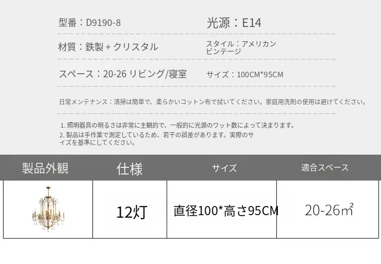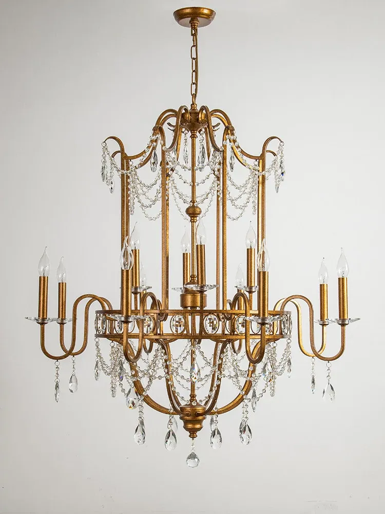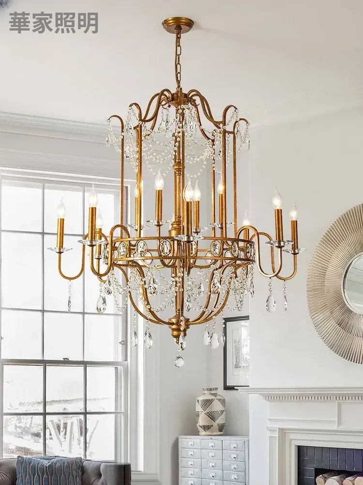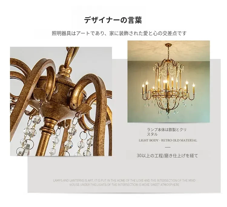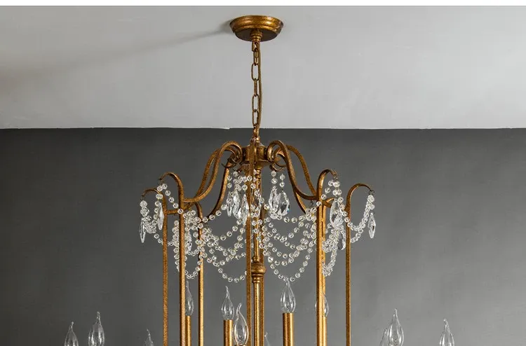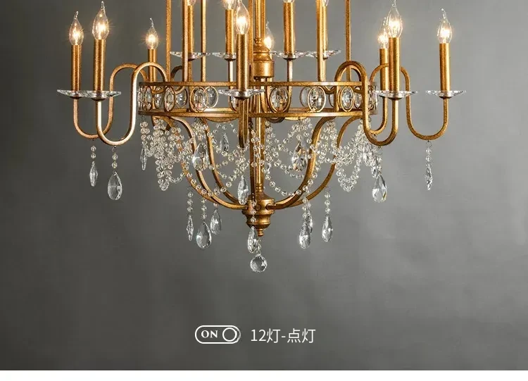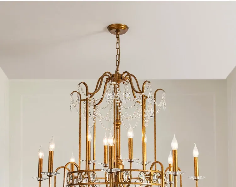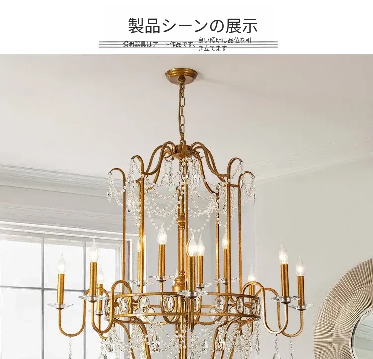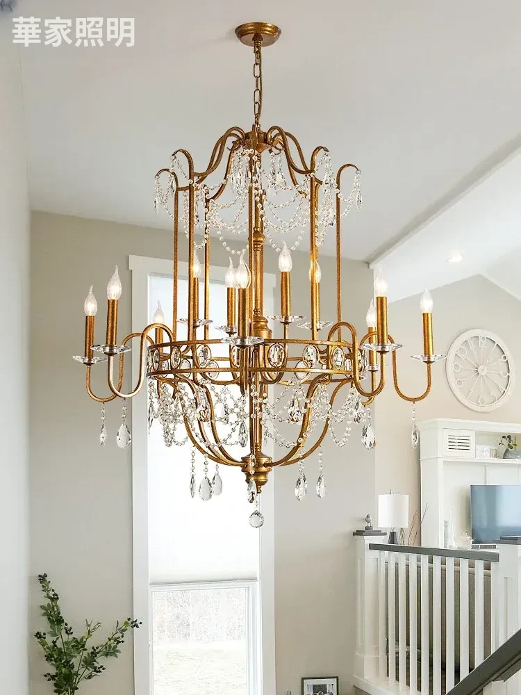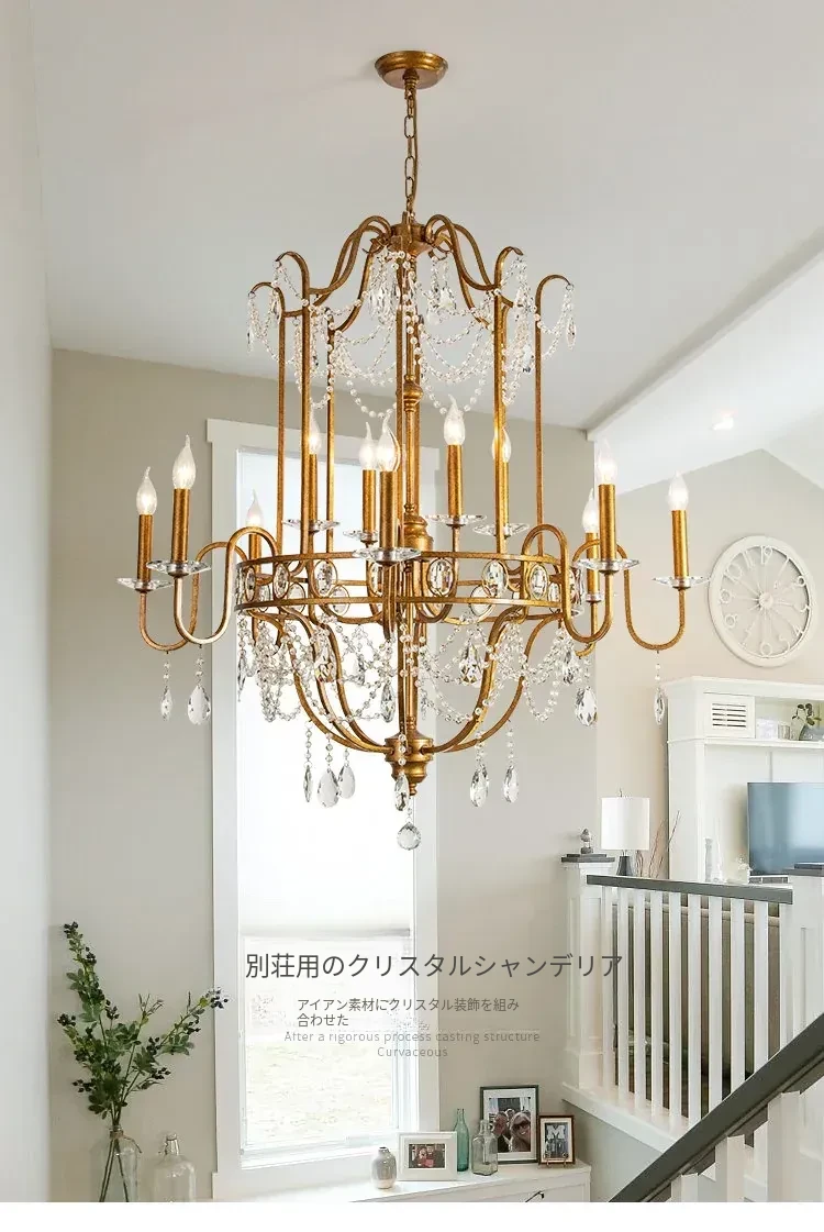 アメリカンスタイルの高級シャンデリア!豪華な2階建ての別荘にぴったり。高い天井のリビングやダイニングに最適なフレンチヴィンテージデザインのキャンドルクリスタル階段灯具。おしゃれな空間を演出します!