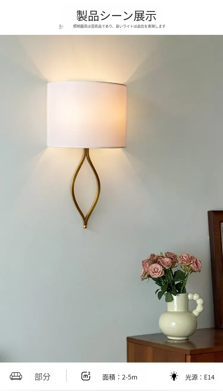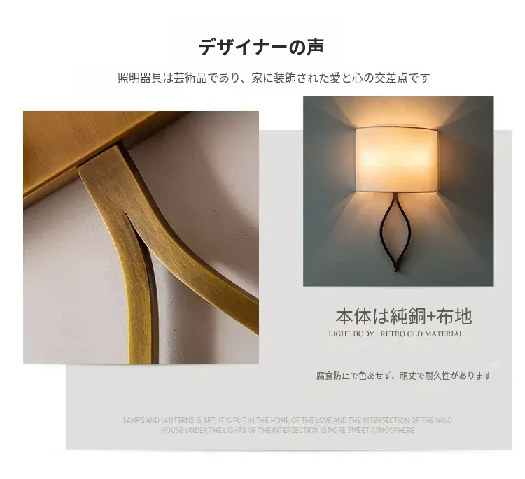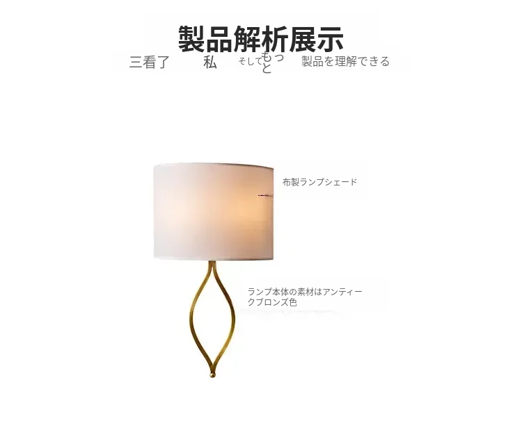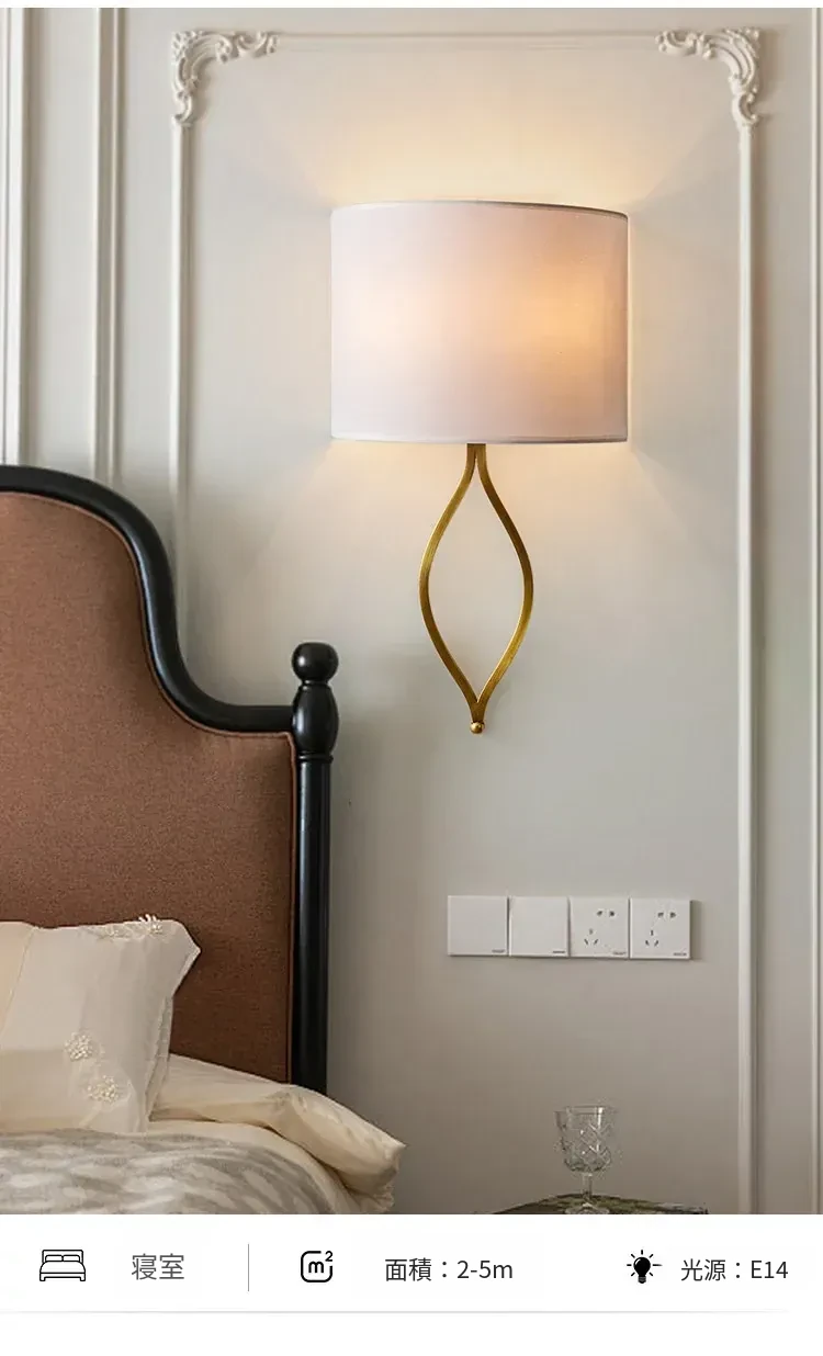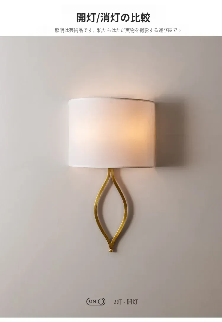 フレンチスタイルのシンプルな壁灯 - おしゃれなクリーム色のアメリカンビラ用高級感あふれる全銅製の寝室用ベッドサイドライト。リビングや廊下にぴったり!