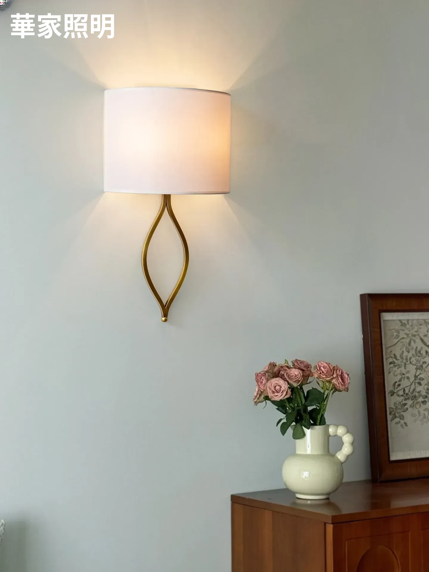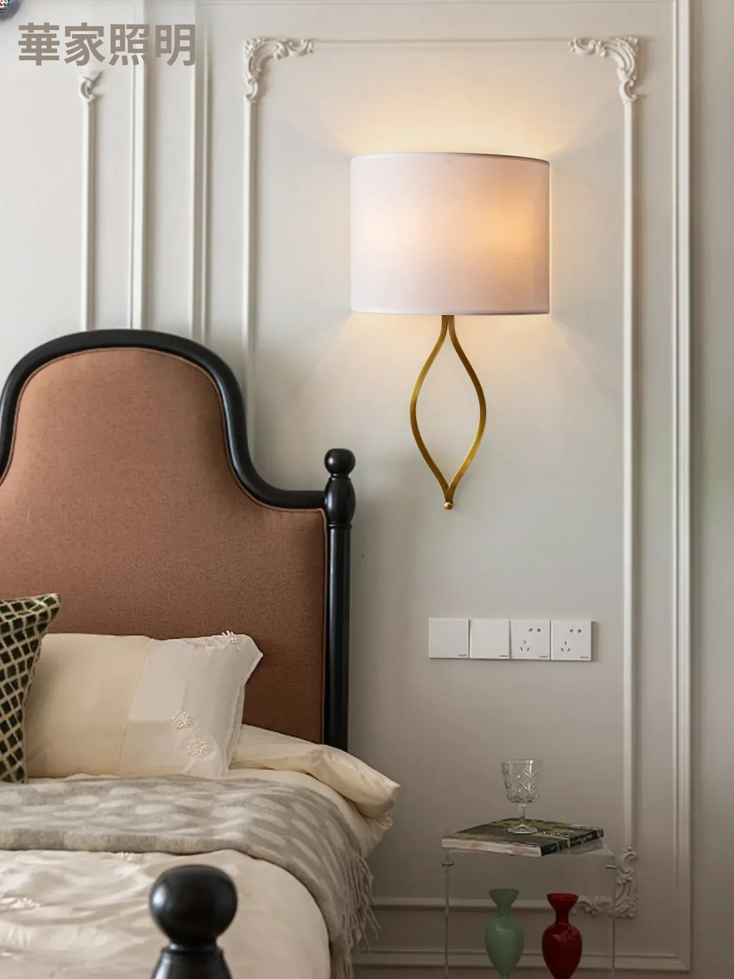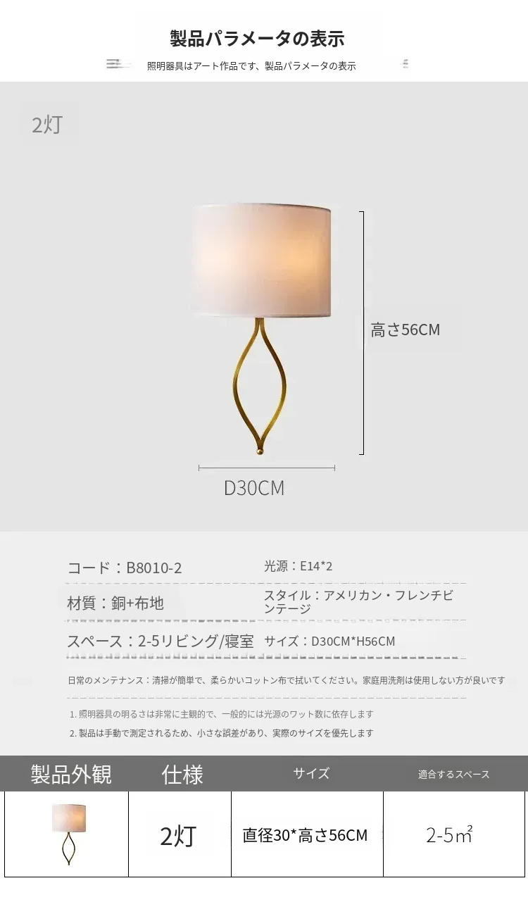フレンチスタイルのシンプルな壁灯 - おしゃれなクリーム色のアメリカンビラ用高級感あふれる全銅製の寝室用ベッドサイドライト。リビングや廊下にぴったり!