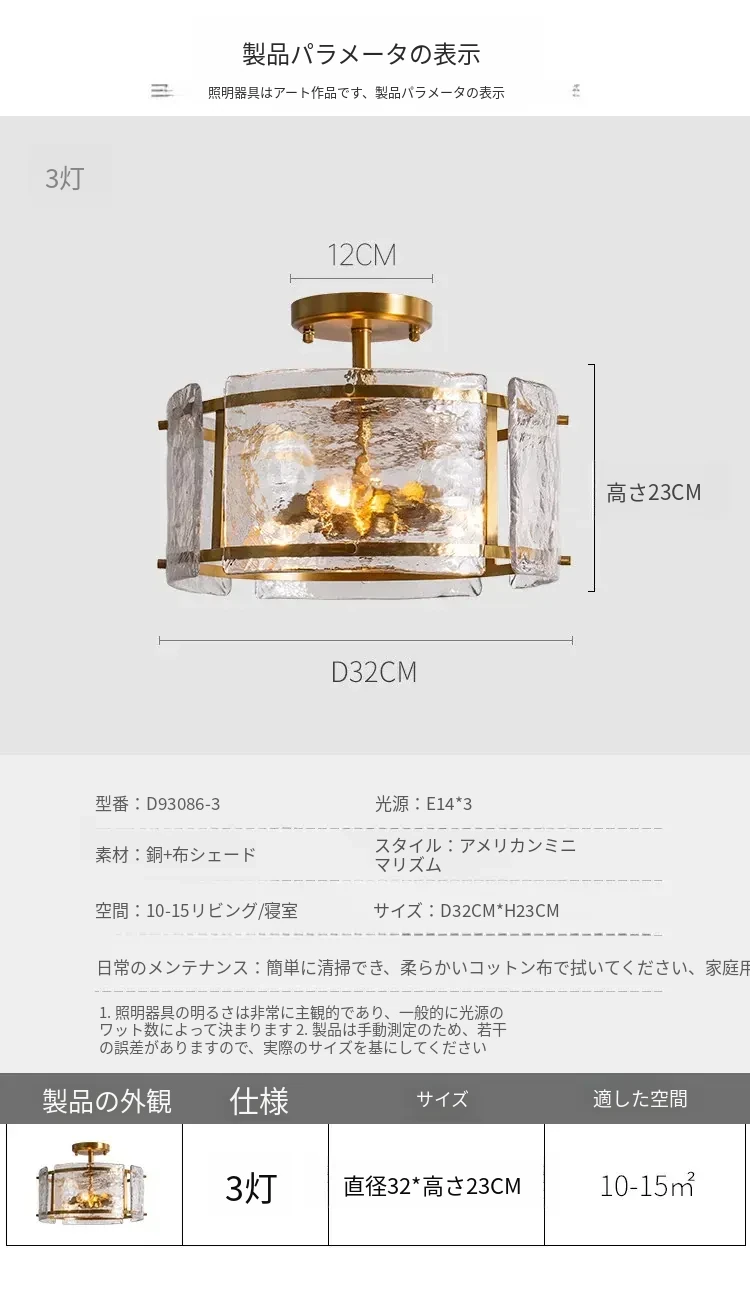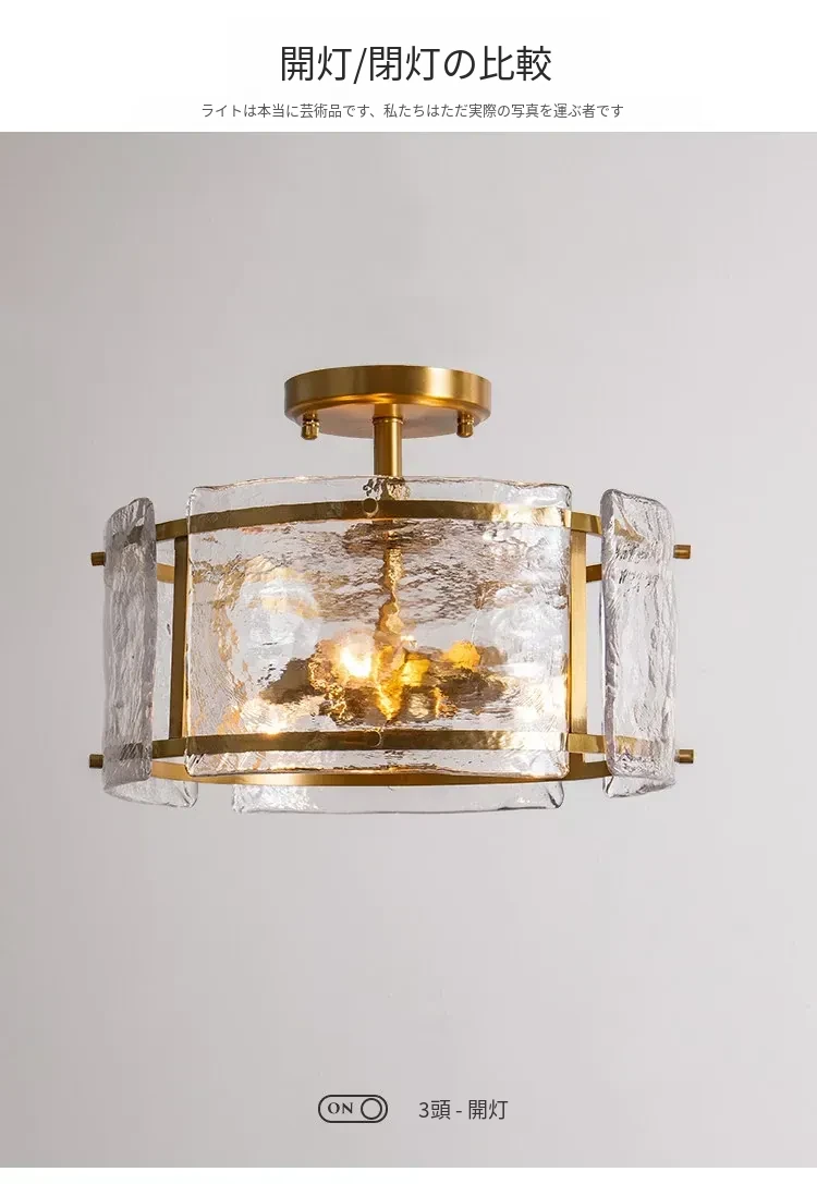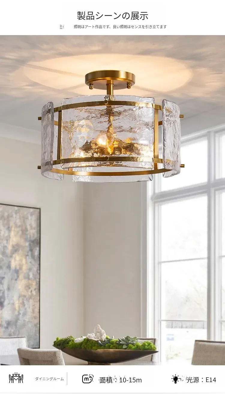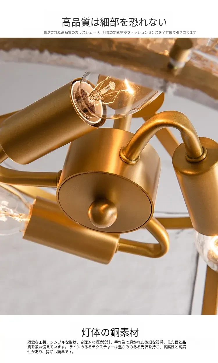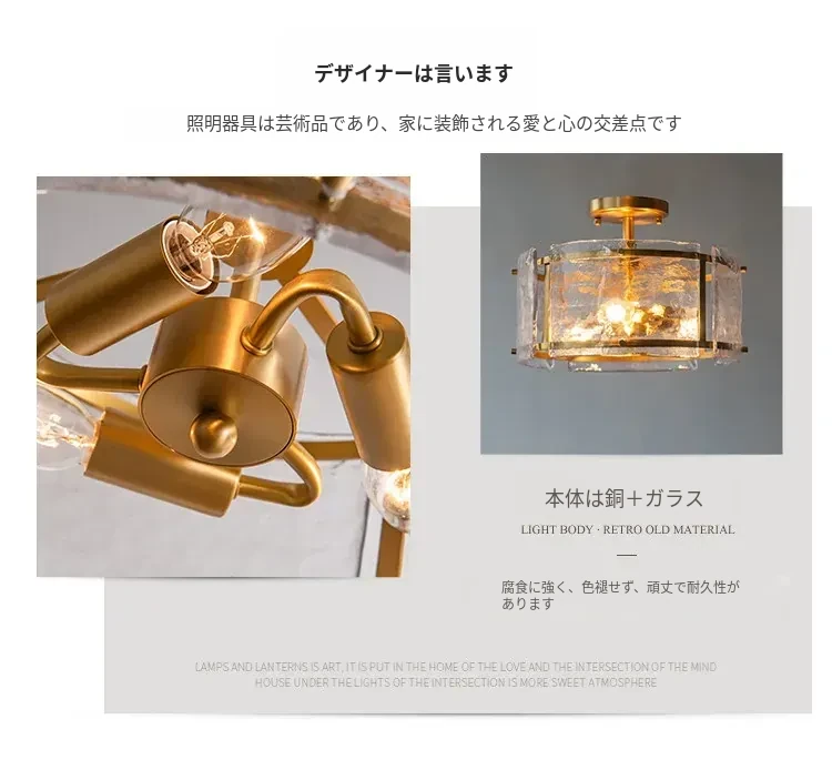 フレンチスタイルのシーリングライト|高級感あふれる純銅製|寝室や書斎に最適な雰囲気を演出|ガラスを使用したエレガントなデザイン✨
