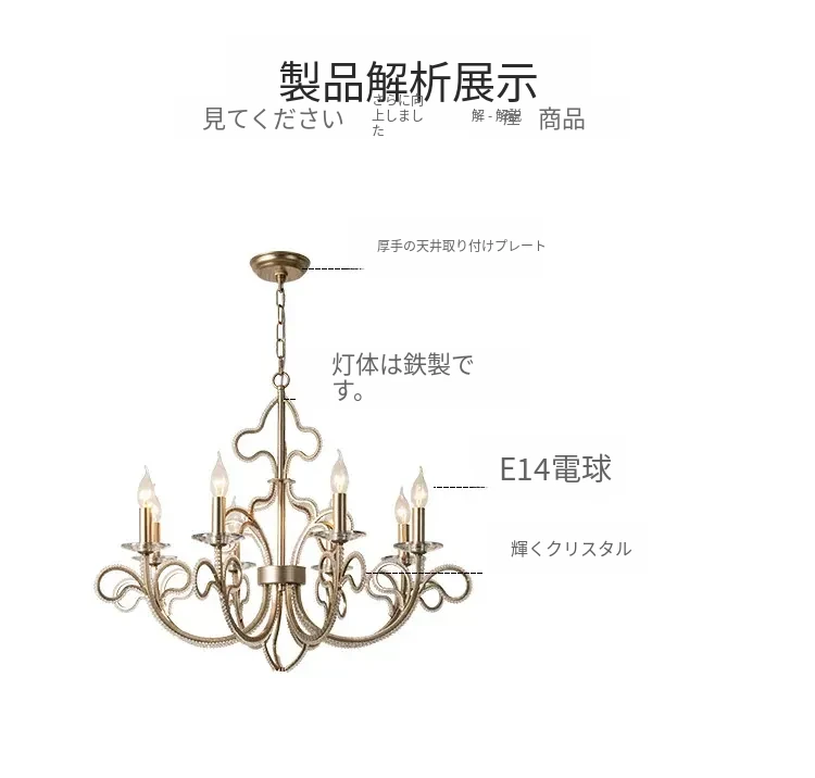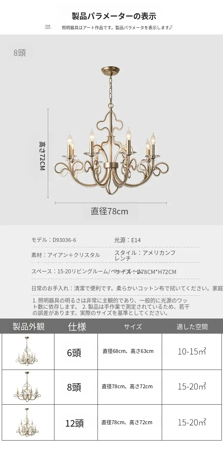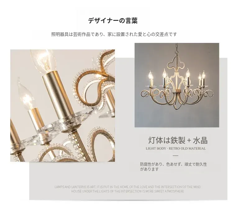 フランス風シャンデリア アメリカンスタイルリビングライト 創造的なライトで軽やかな贅沢感 水晶ビンテージ ヴィラ用ダイニング・ベッドルーム・キャンドルライト 階段用照明器具
