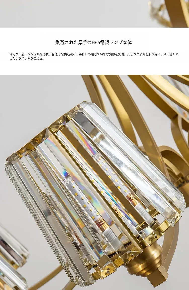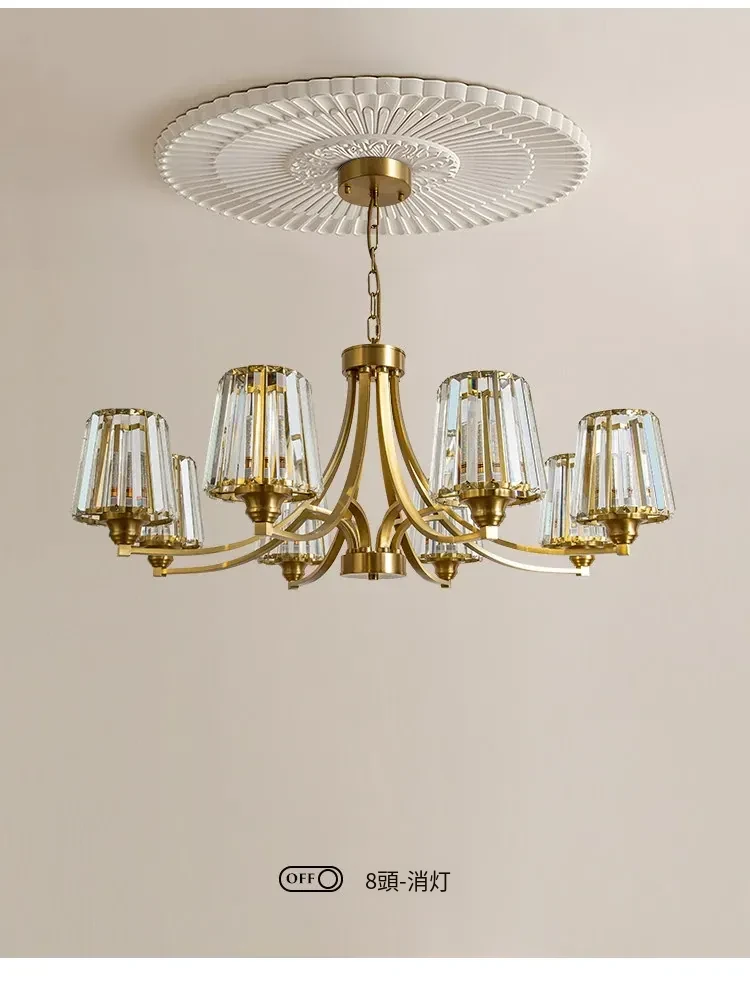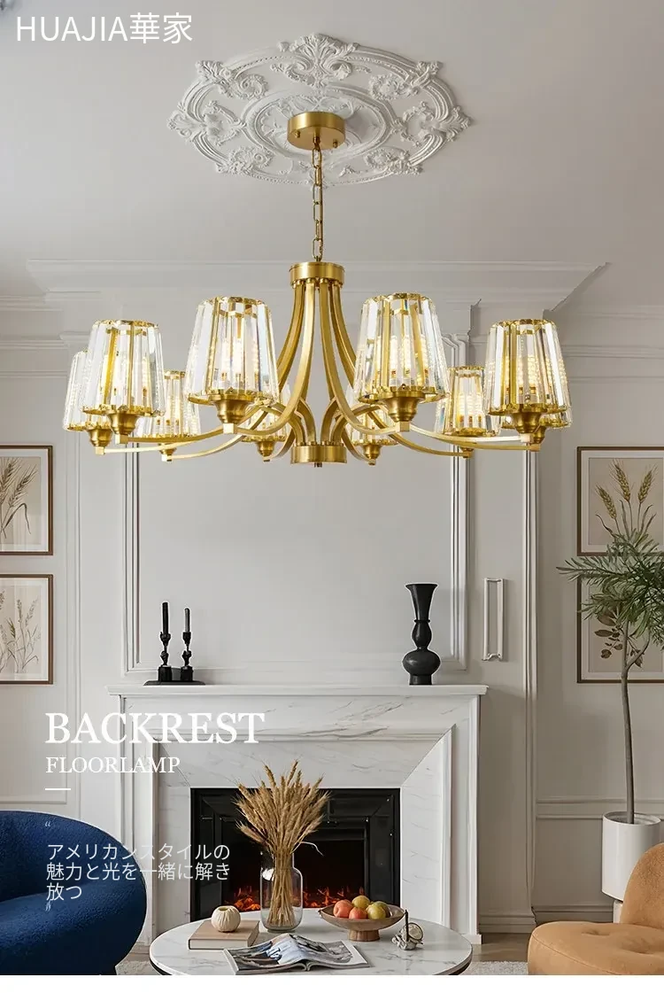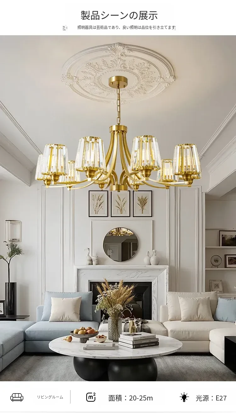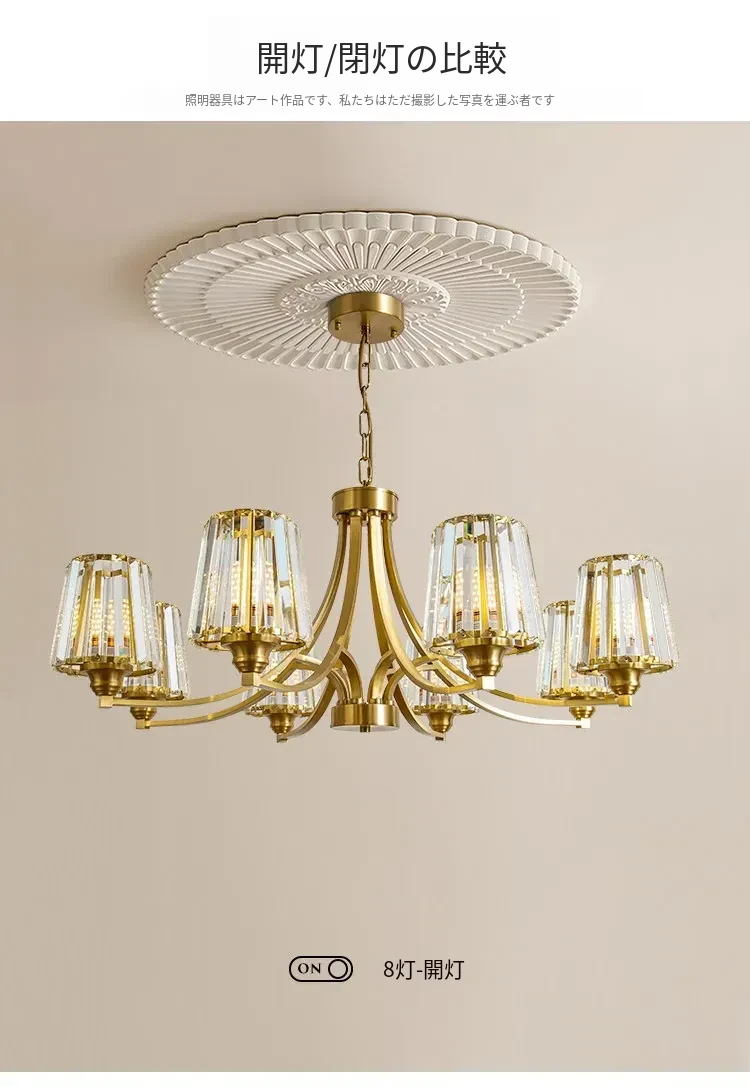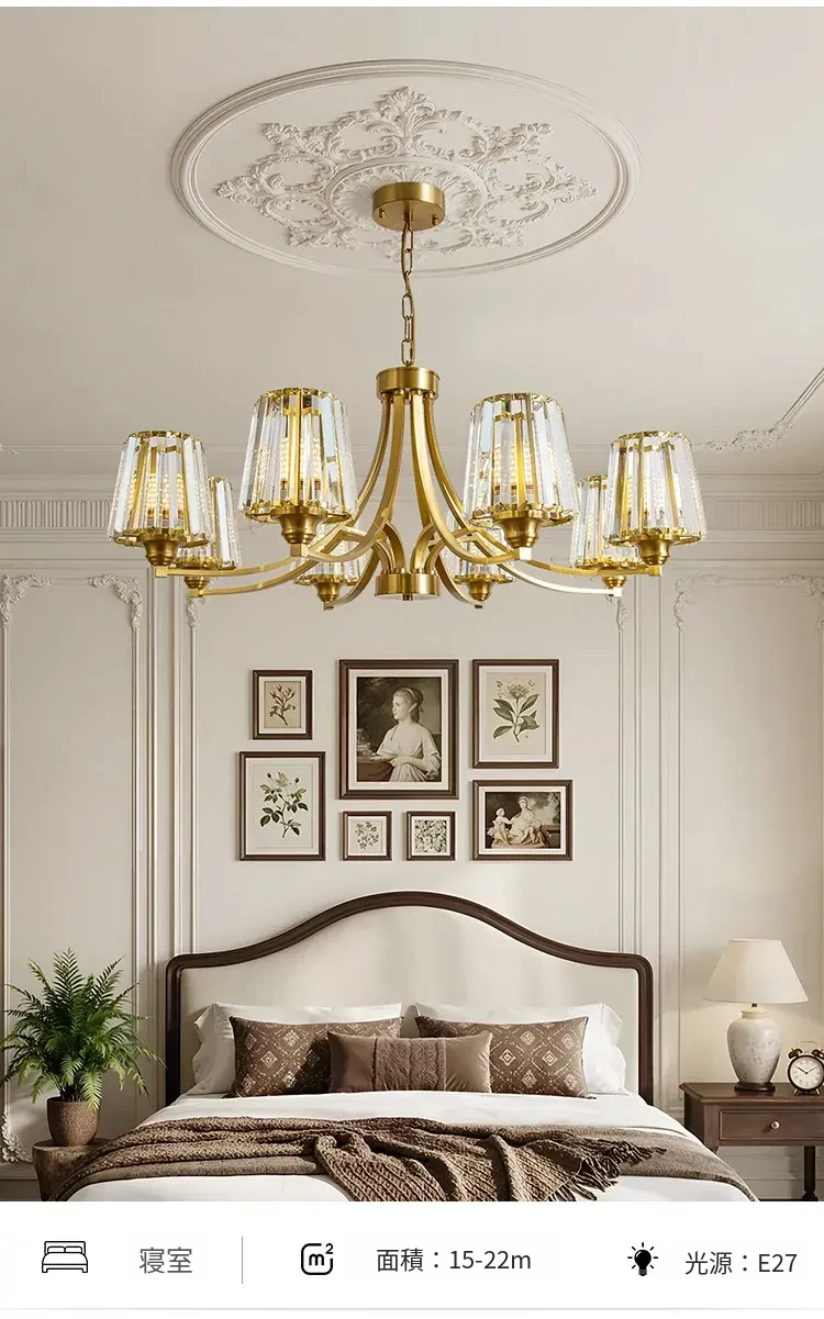 フランス風シャンデリア|リビング・ダイニングに最適なクリスタルの高級感溢れる銅製ライト|2025年新作|上品で大人の雰囲気を演出するアメリカンスタイルの寝室照明