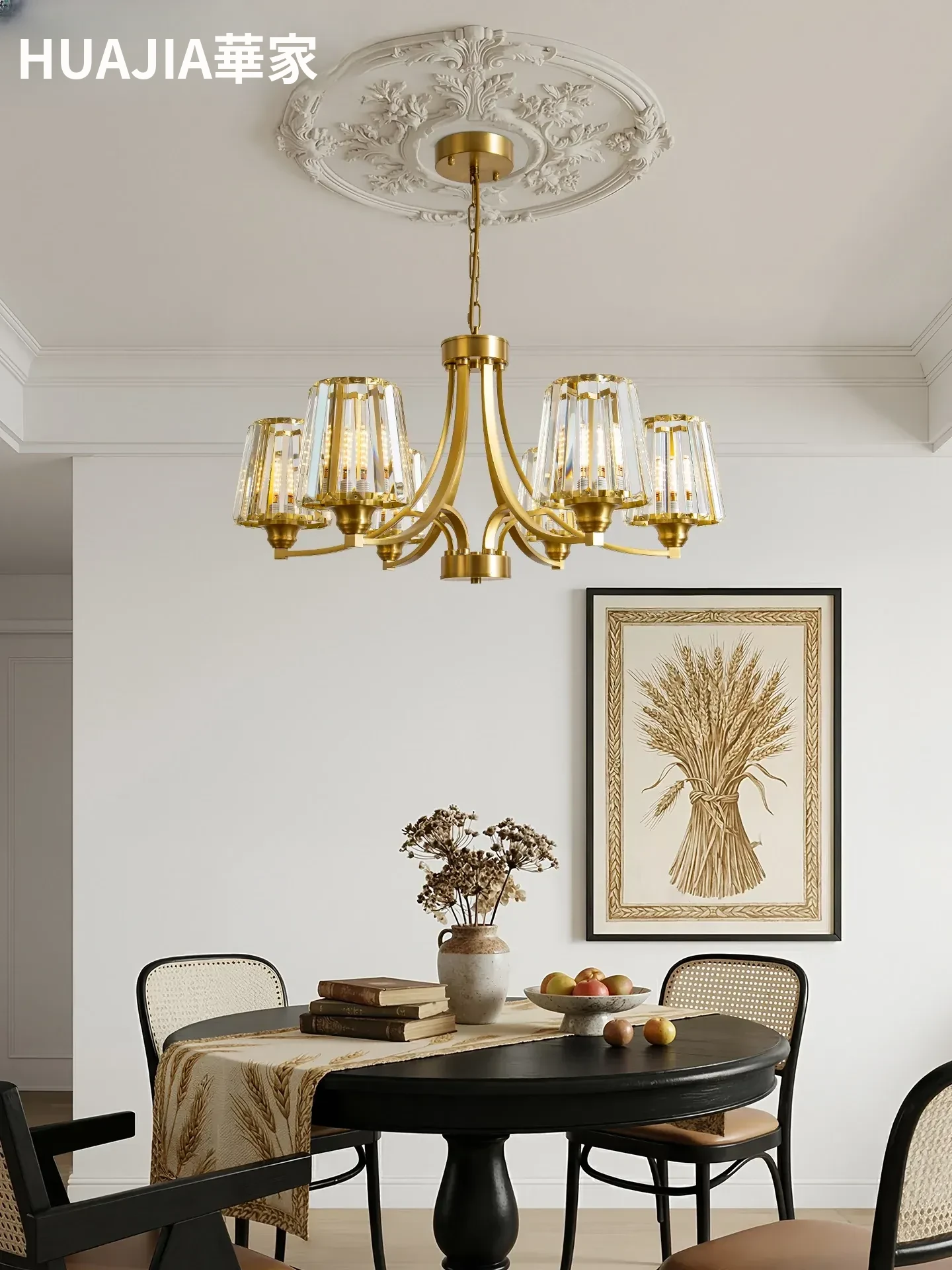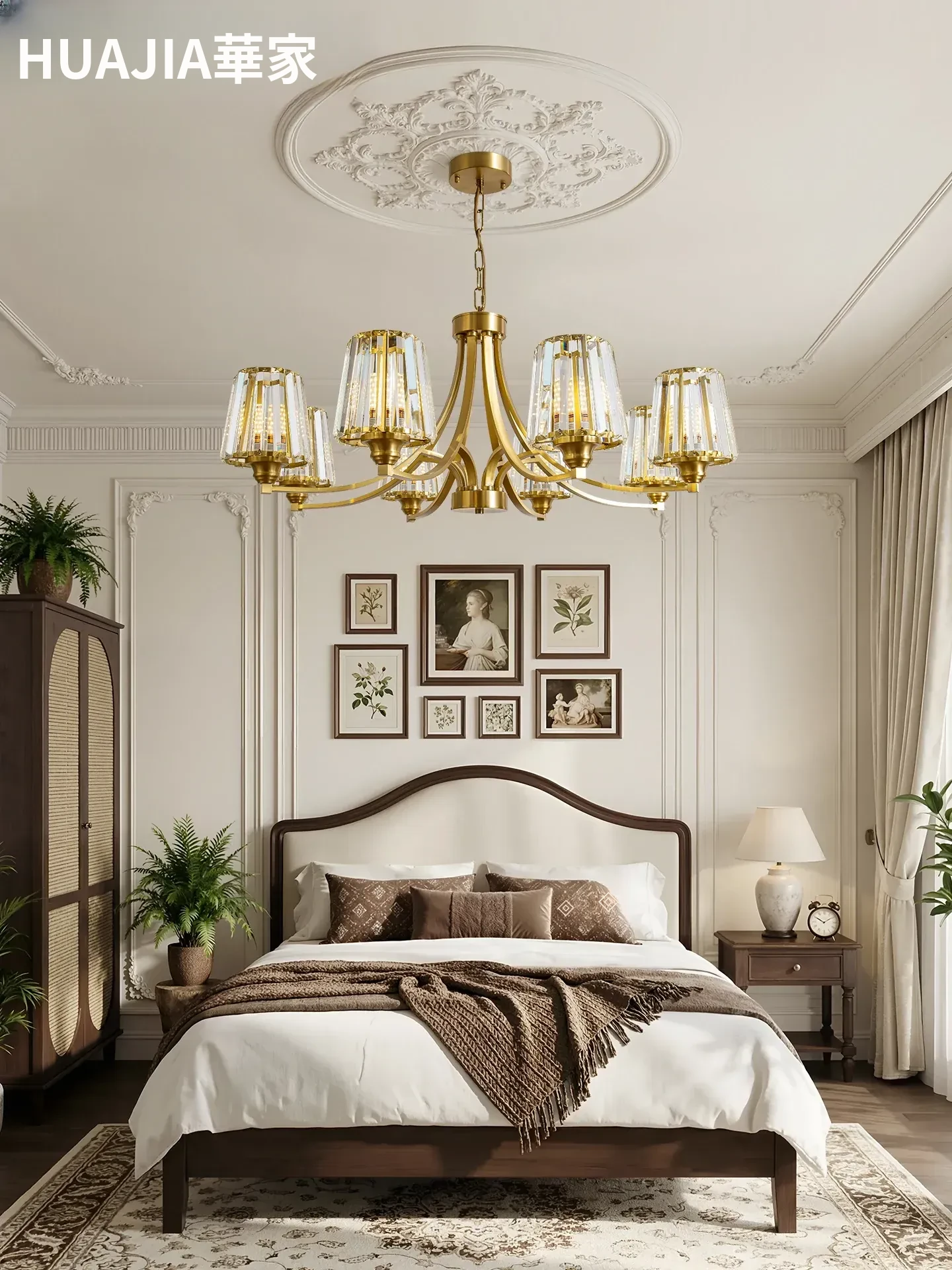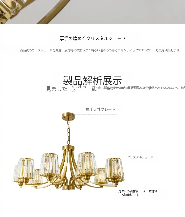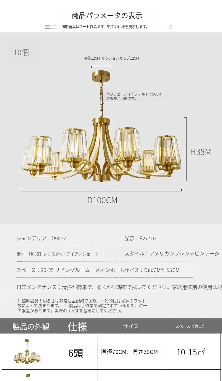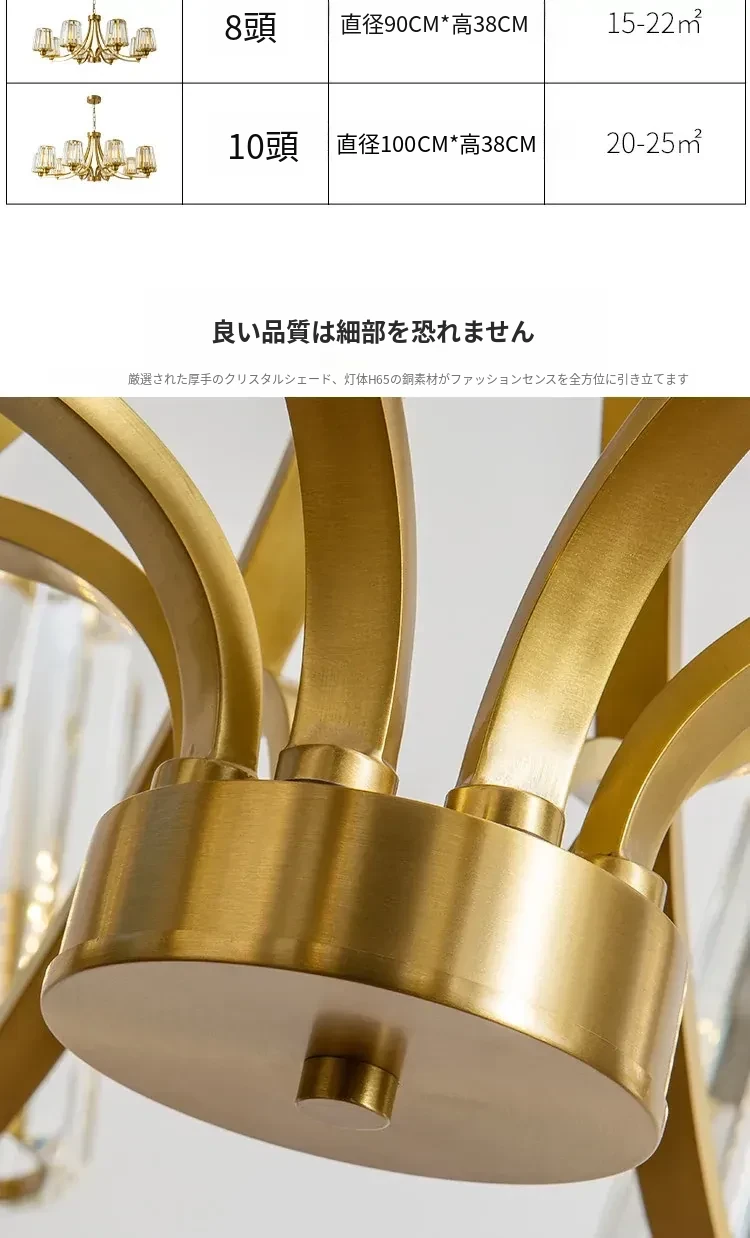 フランス風シャンデリア|リビング・ダイニングに最適なクリスタルの高級感溢れる銅製ライト|2025年新作|上品で大人の雰囲気を演出するアメリカンスタイルの寝室照明