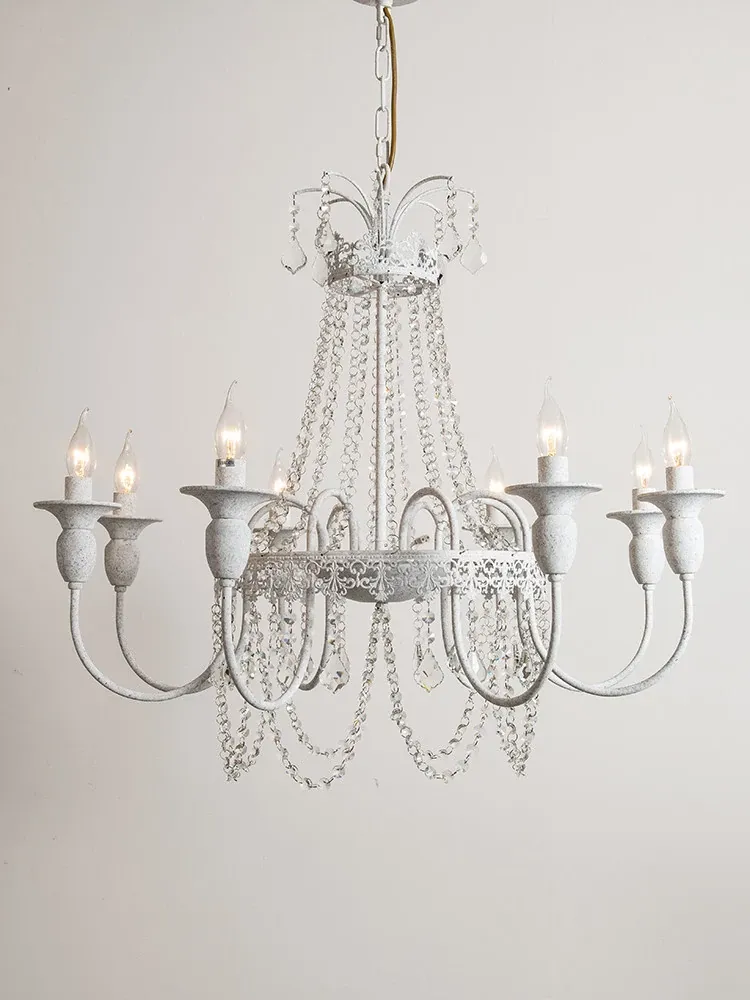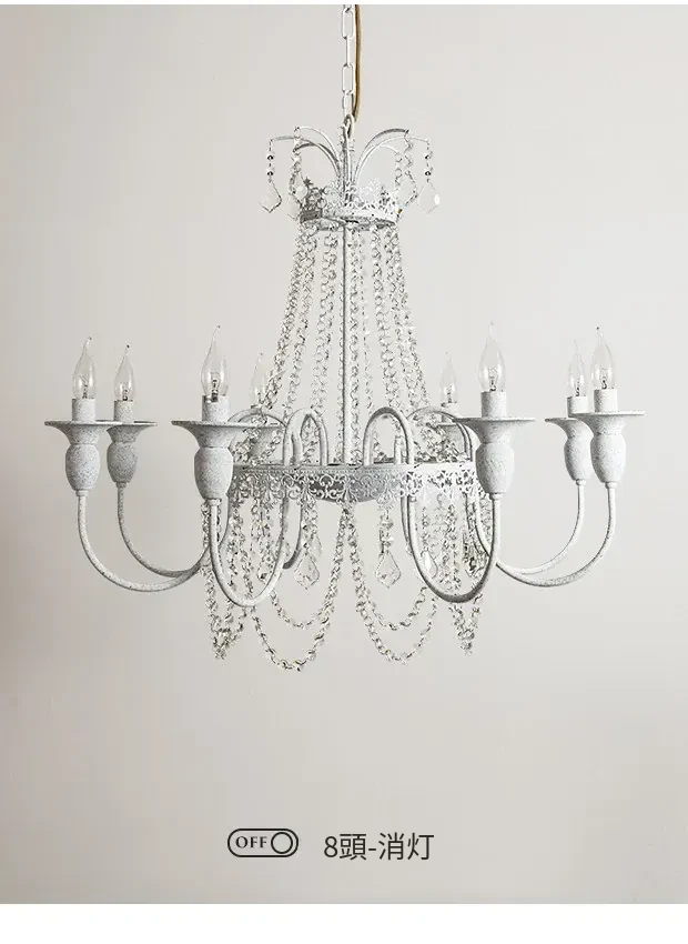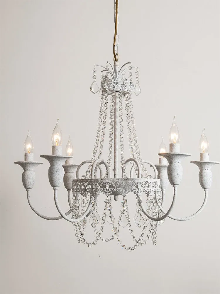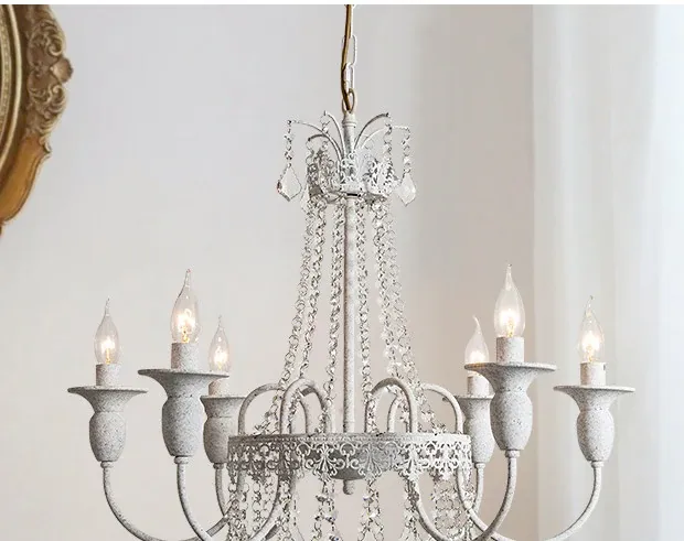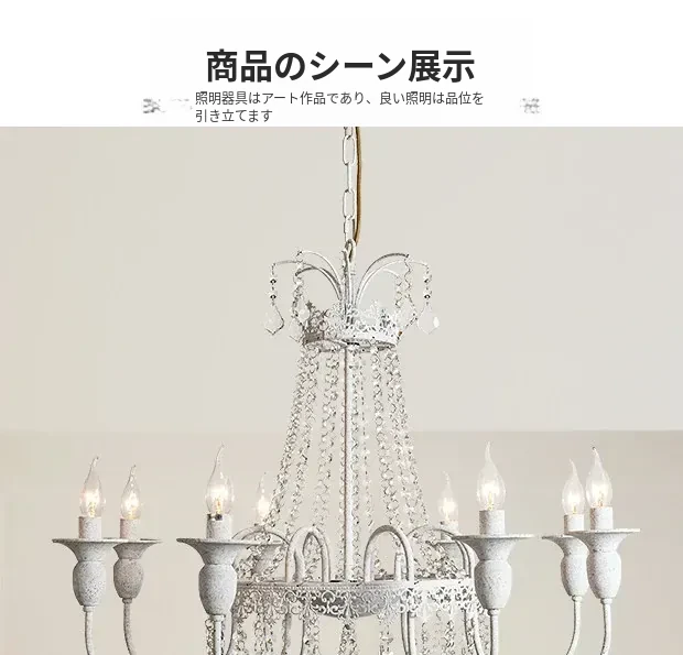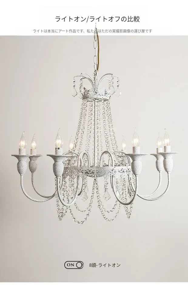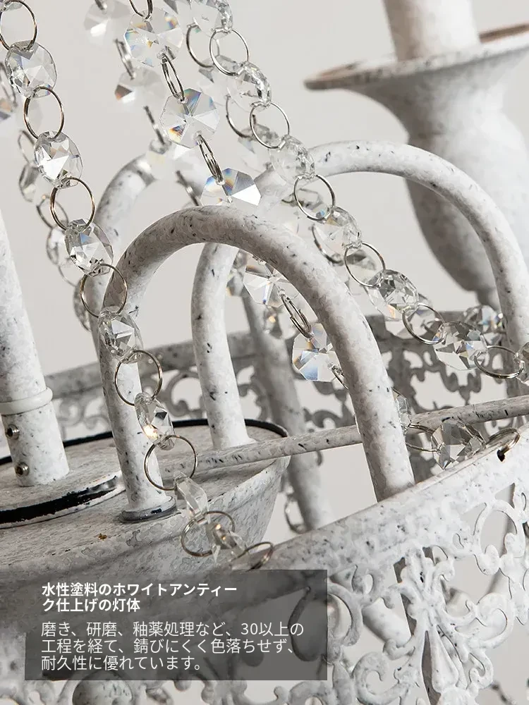 フランス風シャンデリア・主寝室用ライト|アメリカンレトロな白いクリスタル・ダイニングランプ|民宿にぴったりなクリーミーな風合いのプリンセスルーム用寝室灯!魅力的な空間を演出します。