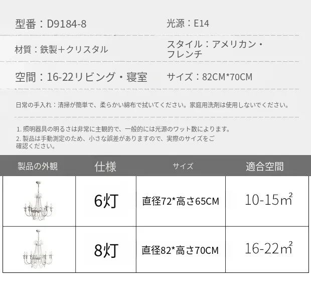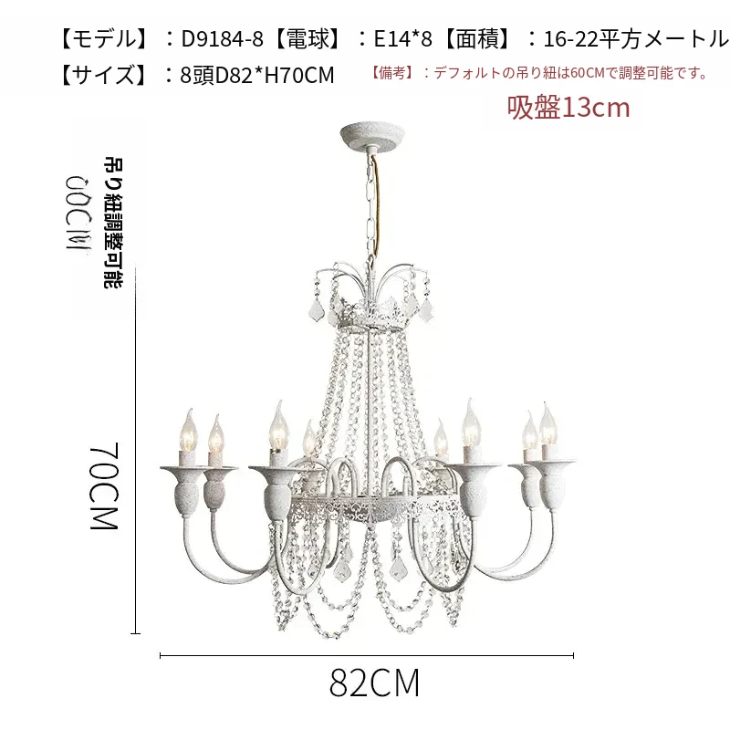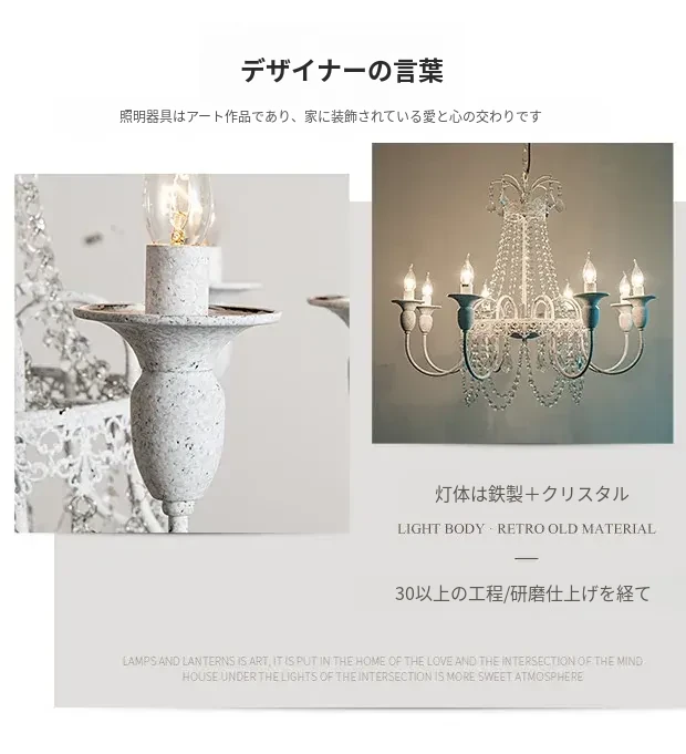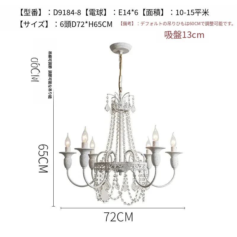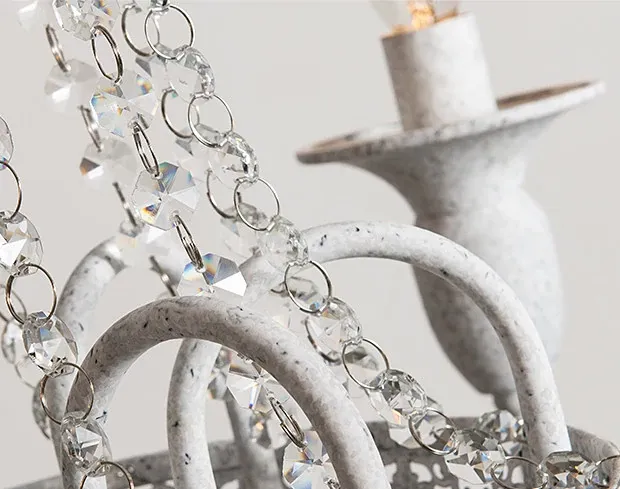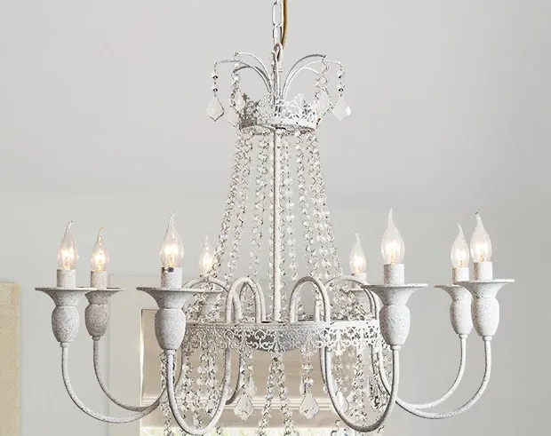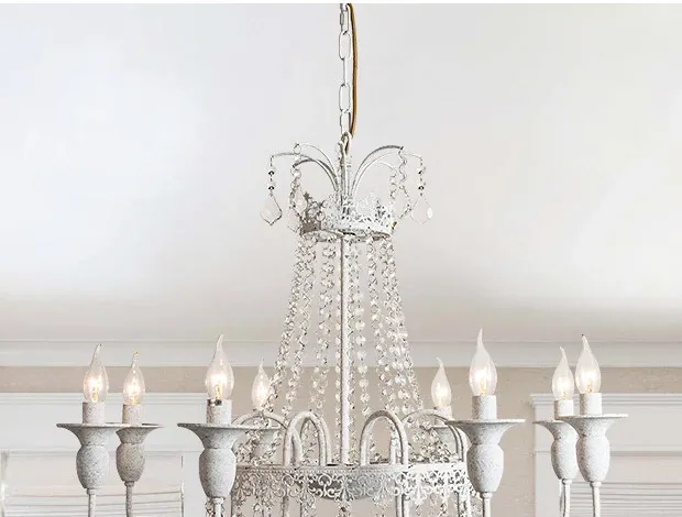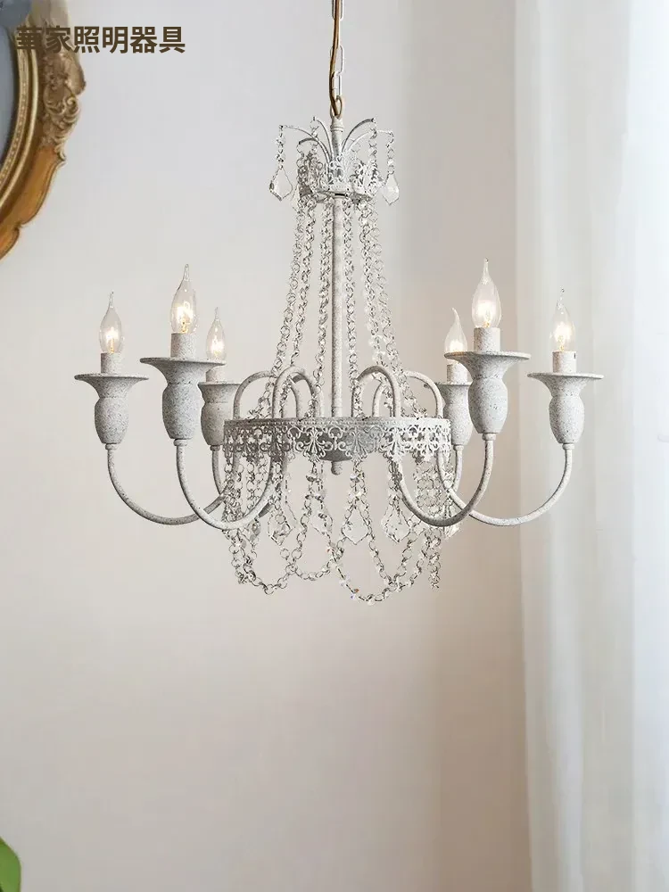 フランス風シャンデリア・主寝室用ライト|アメリカンレトロな白いクリスタル・ダイニングランプ|民宿にぴったりなクリーミーな風合いのプリンセスルーム用寝室灯!魅力的な空間を演出します。