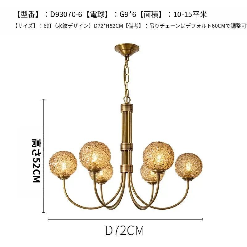 D72*H52CM 6灯 アンバーウォーターパターンガラス