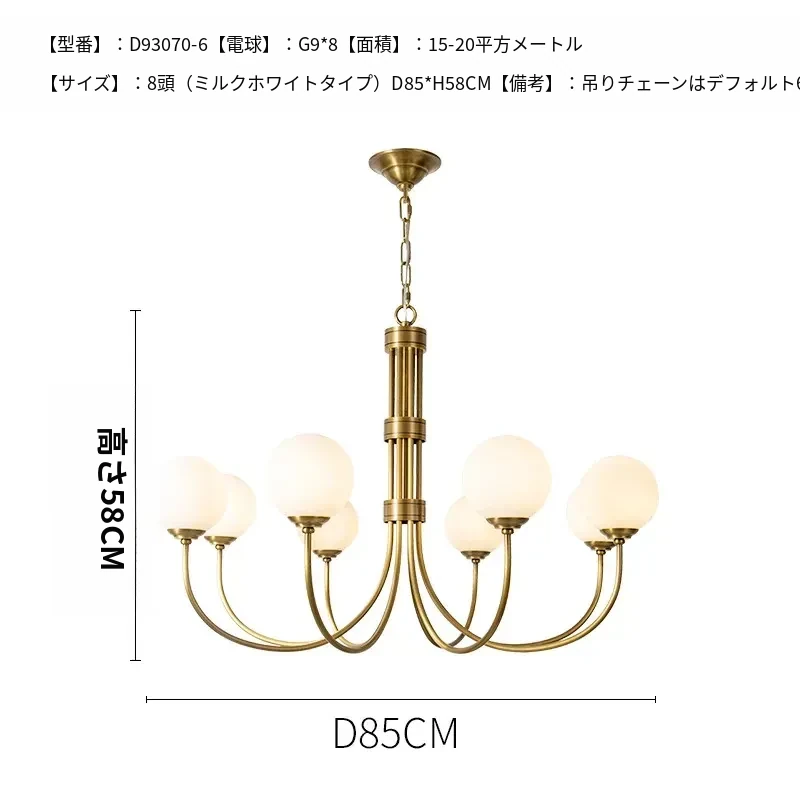 D85*H58CM 8灯 アンバーウォーターパターンガラス