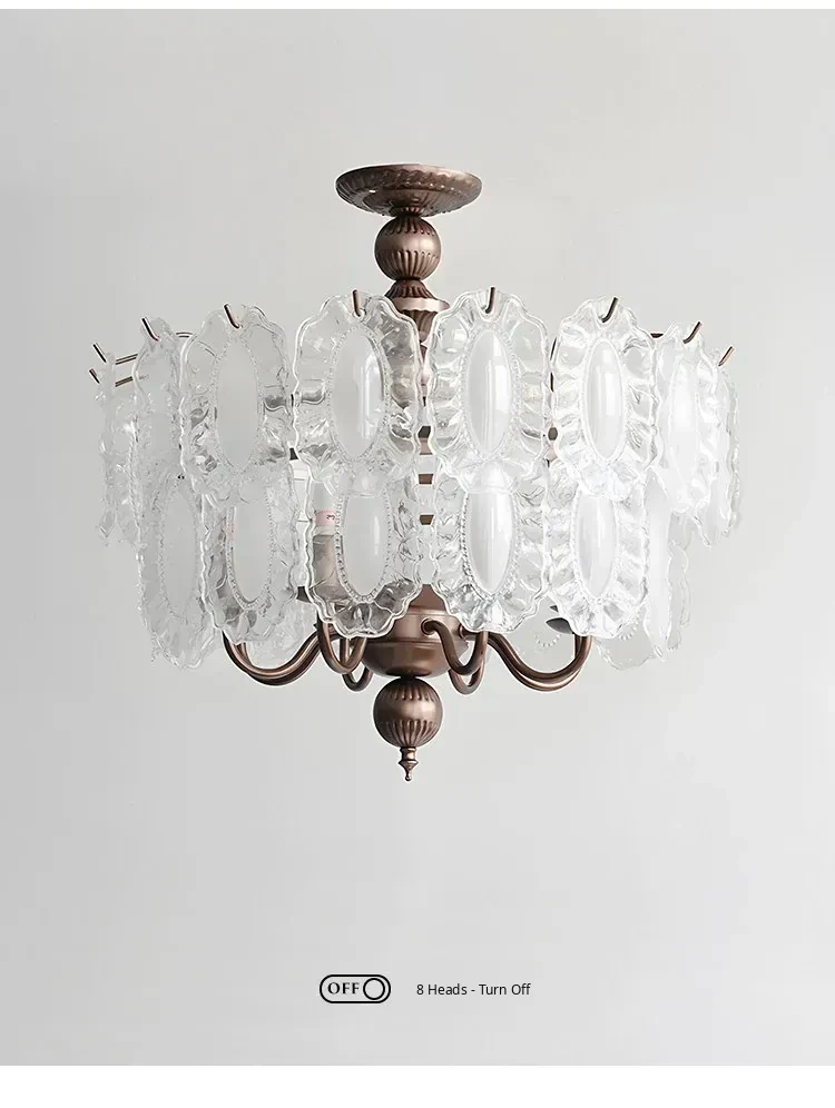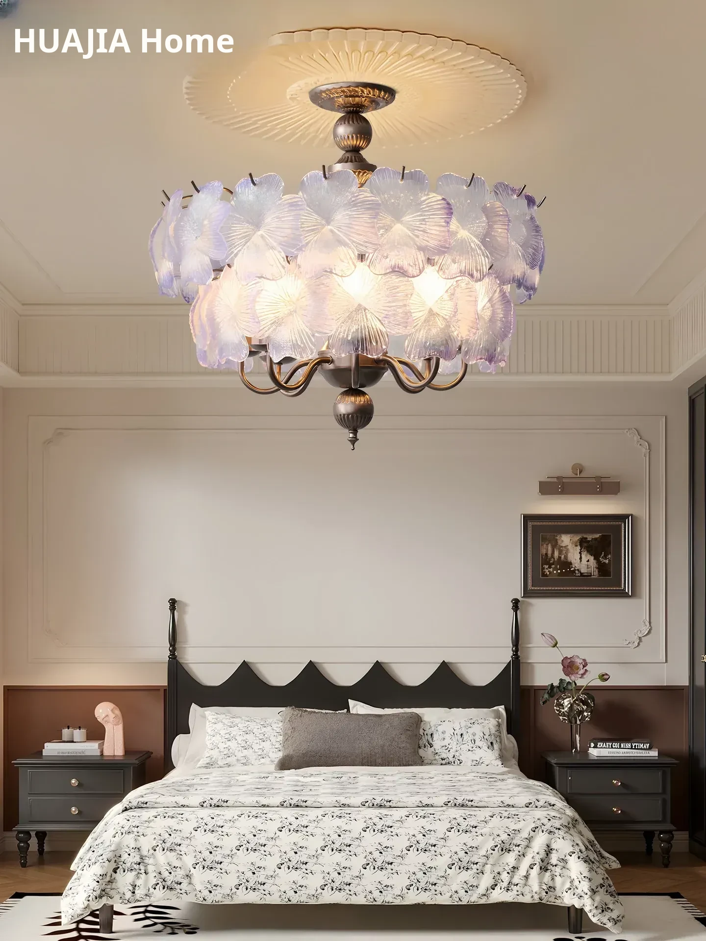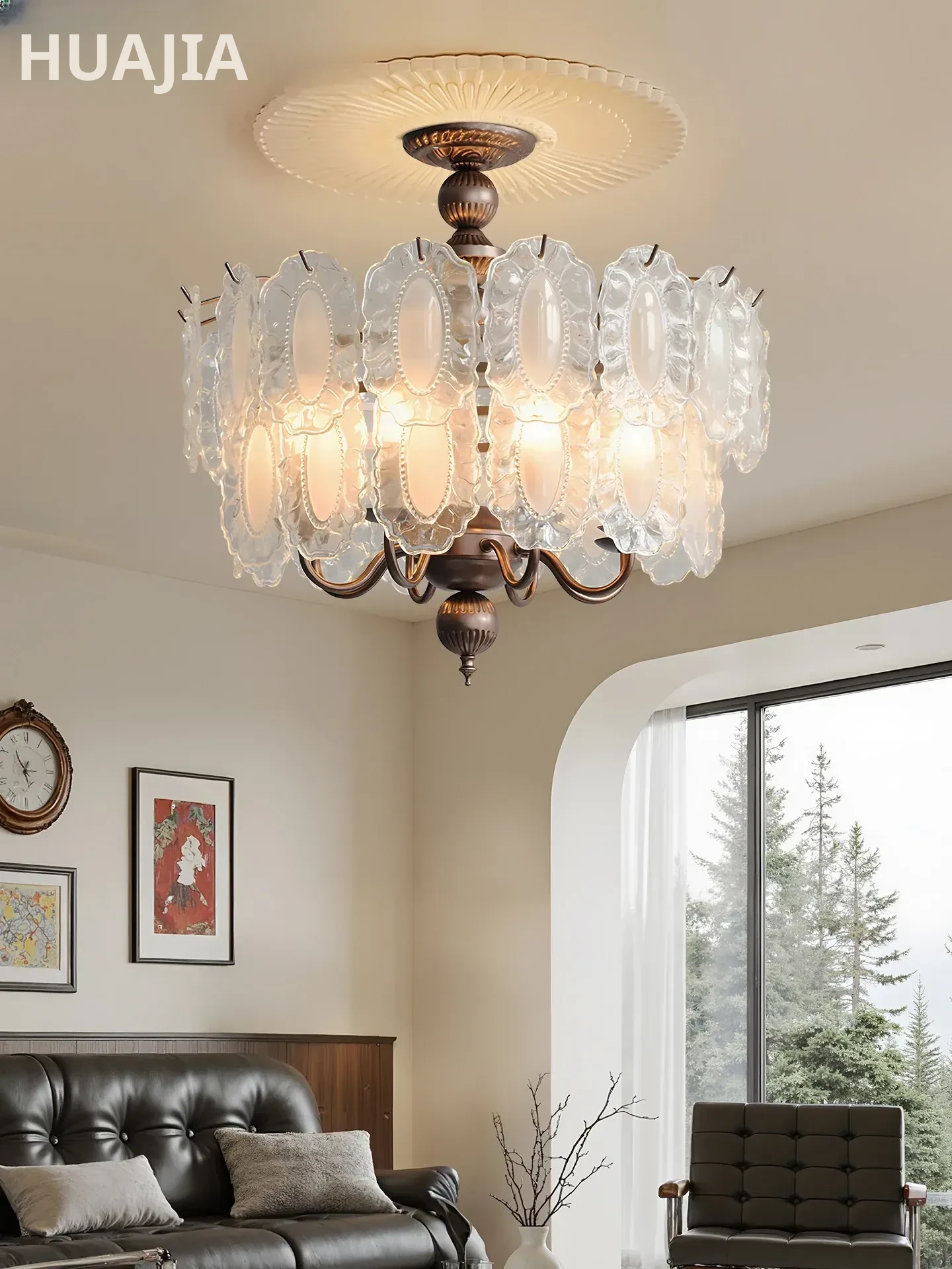 French Chic Minimalist Semi-Flush Mount Light Fixture - Stylish Art Glass Ceiling Lamp for Bedroom, Dining Room, and Study - Elegant Coffee Color Design