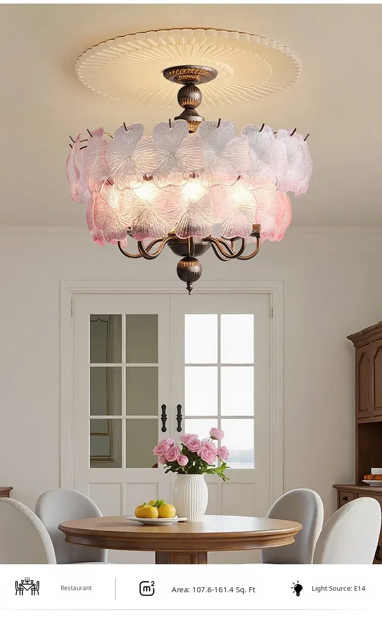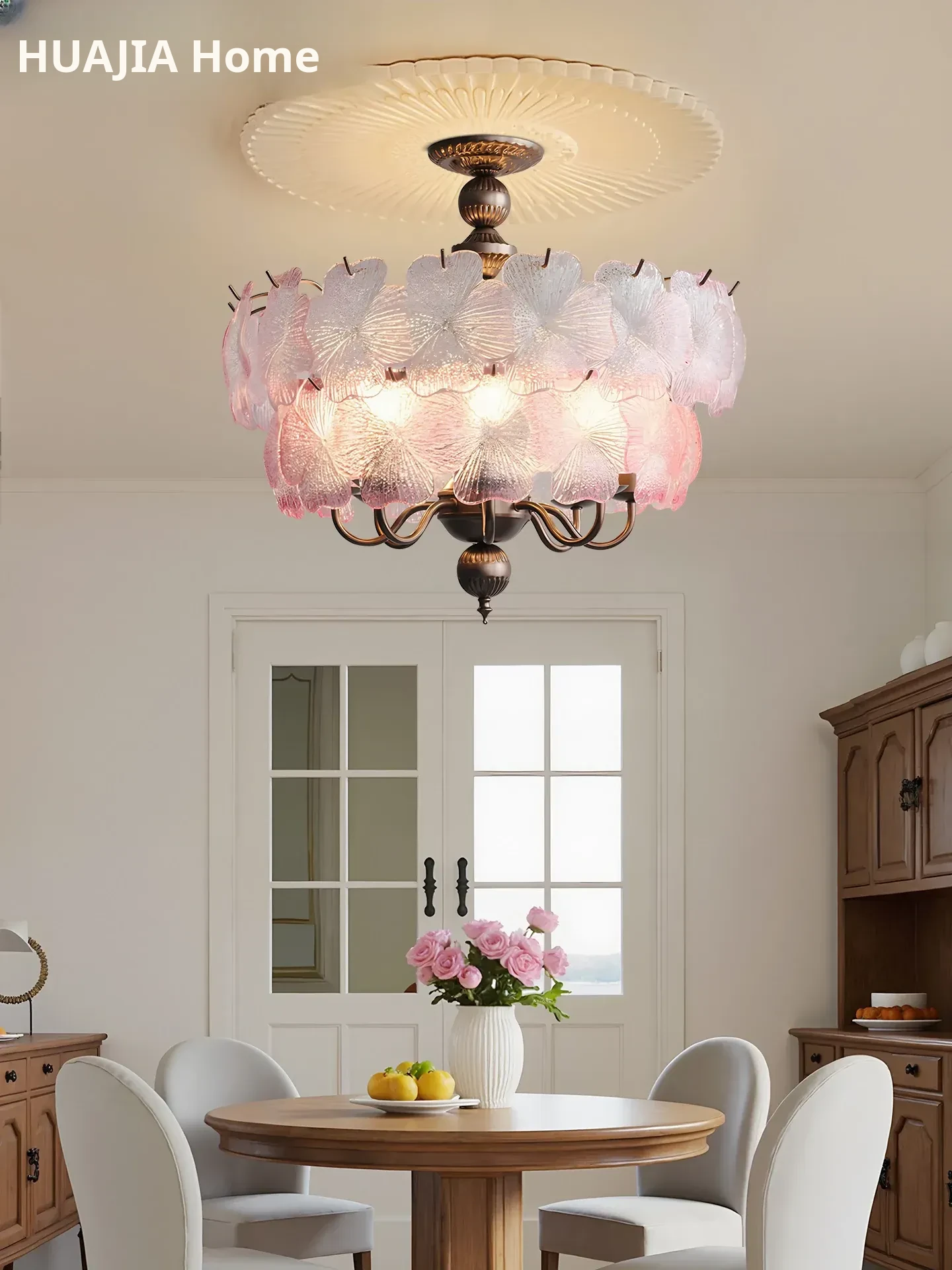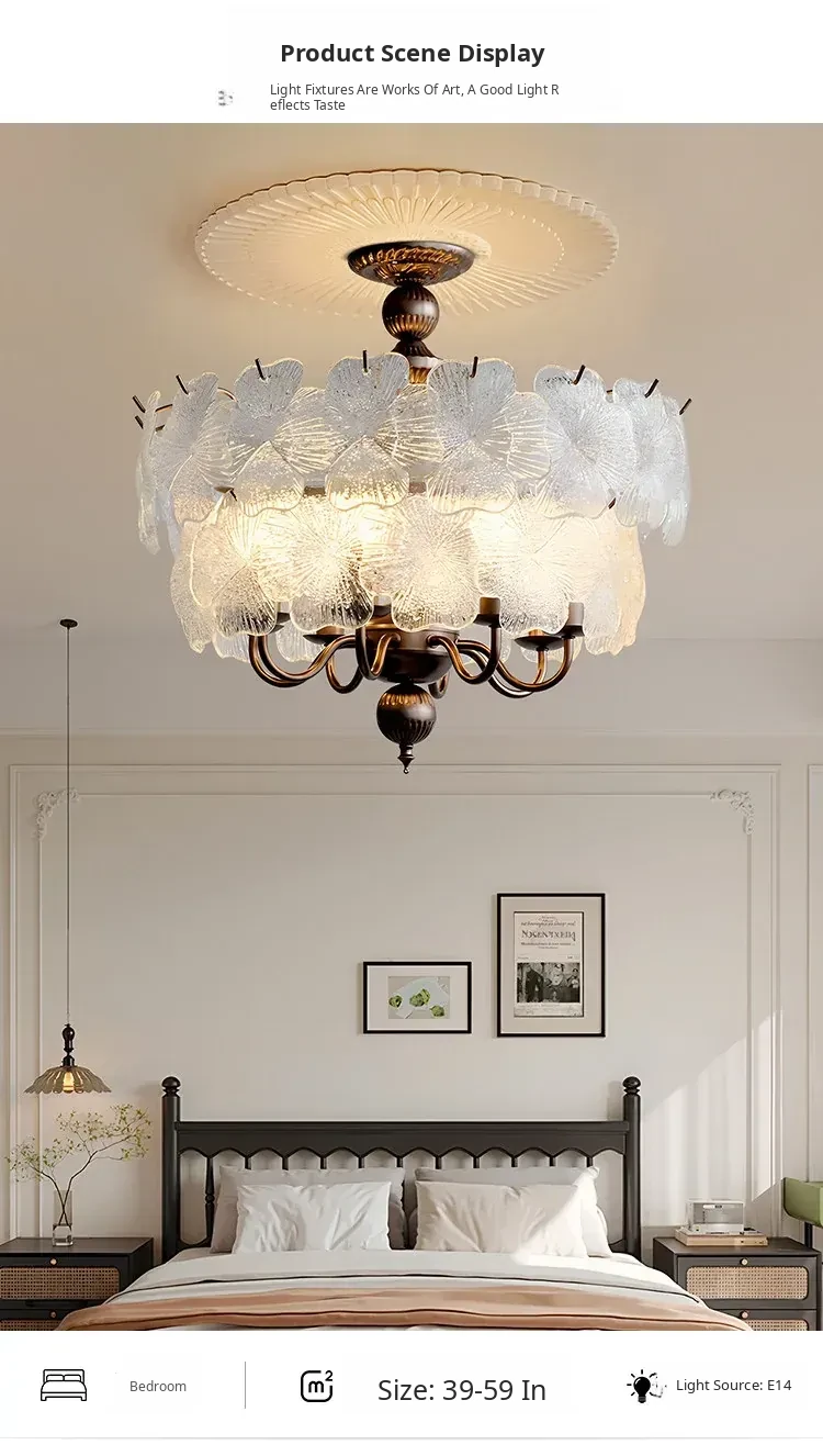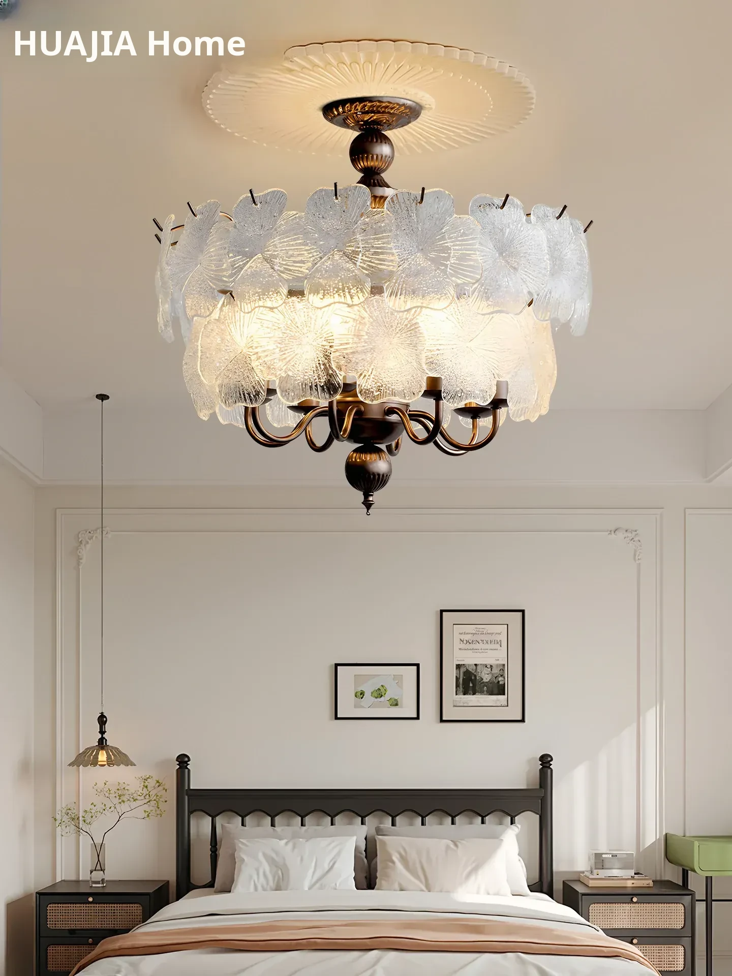 French Chic Minimalist Semi-Flush Mount Light Fixture - Stylish Art Glass Ceiling Lamp for Bedroom, Dining Room, and Study - Elegant Coffee Color Design