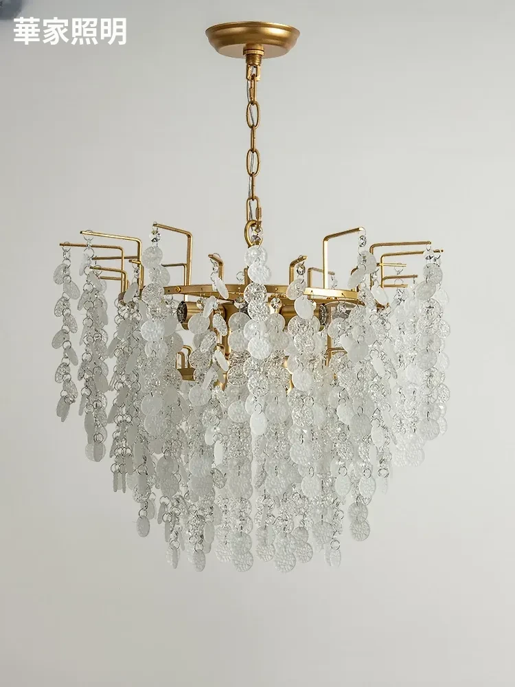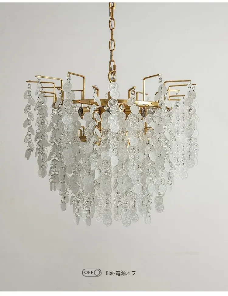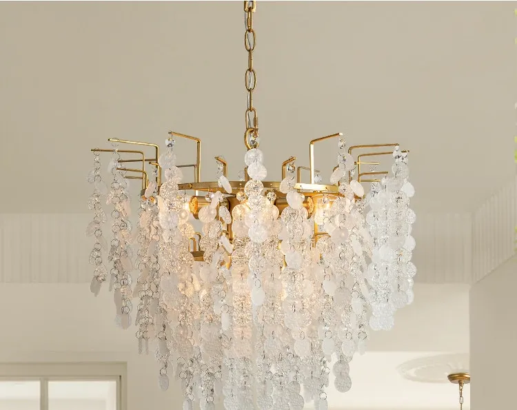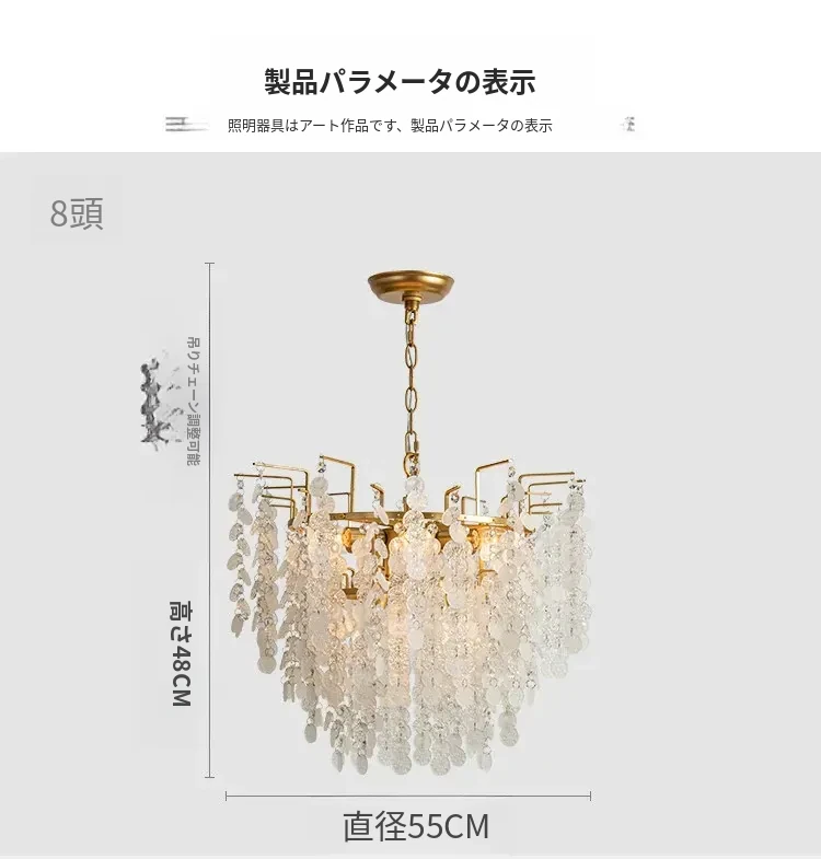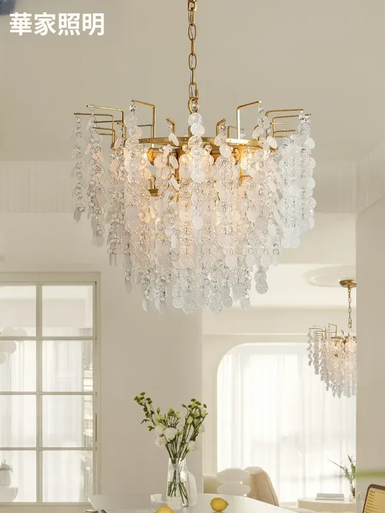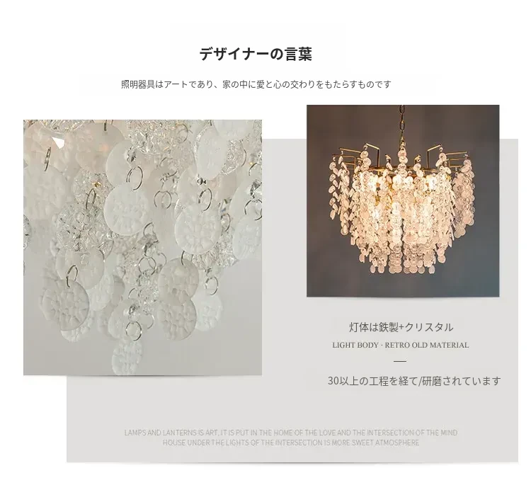 フランス風クリスタルシャンデリア クリーム色の田園風 エレガントなガラス製リビング・ダイニング用照明 アメリカンビンテージ宮廷スタイルのライト