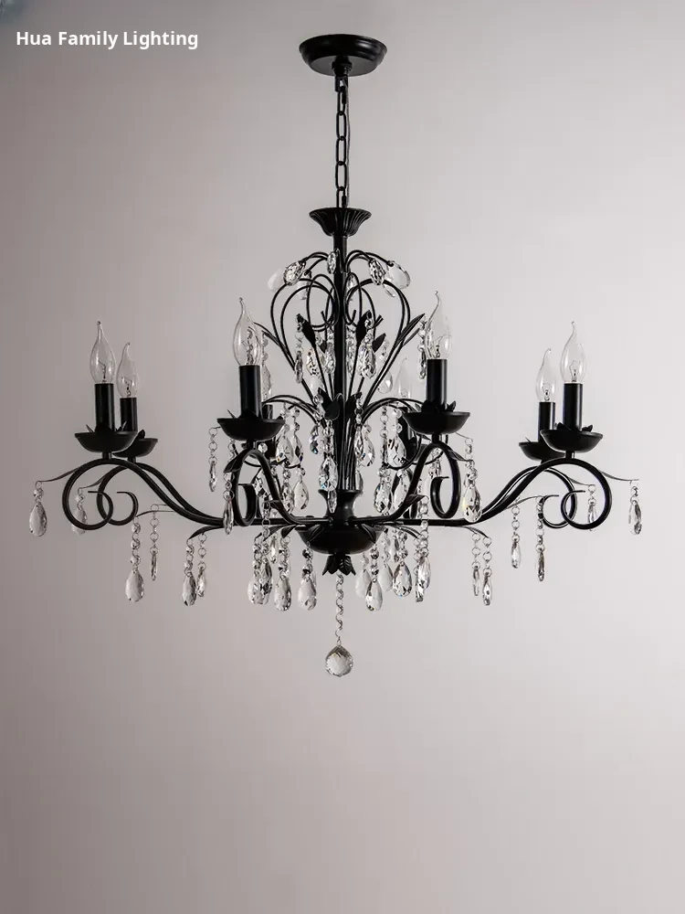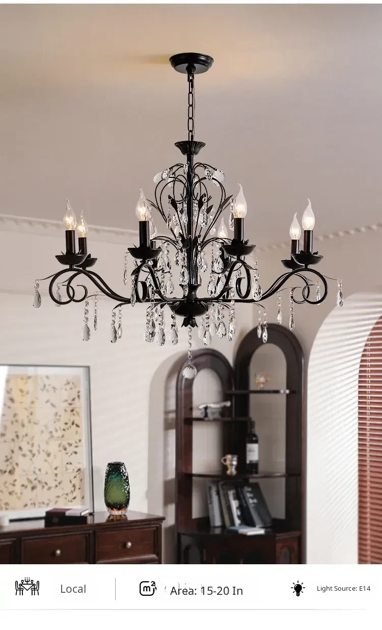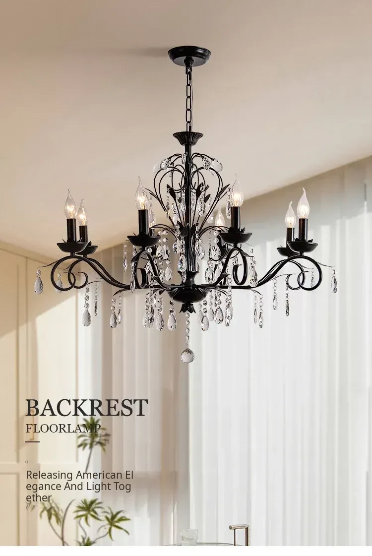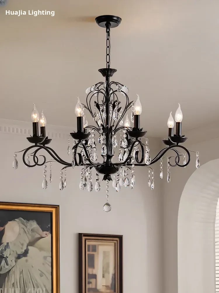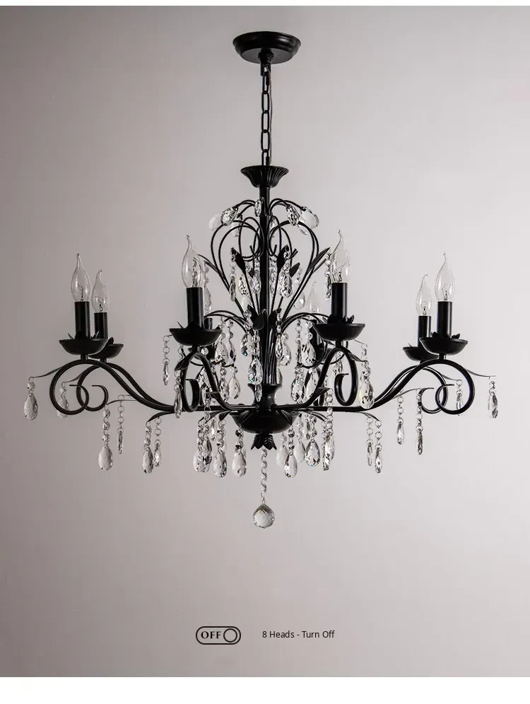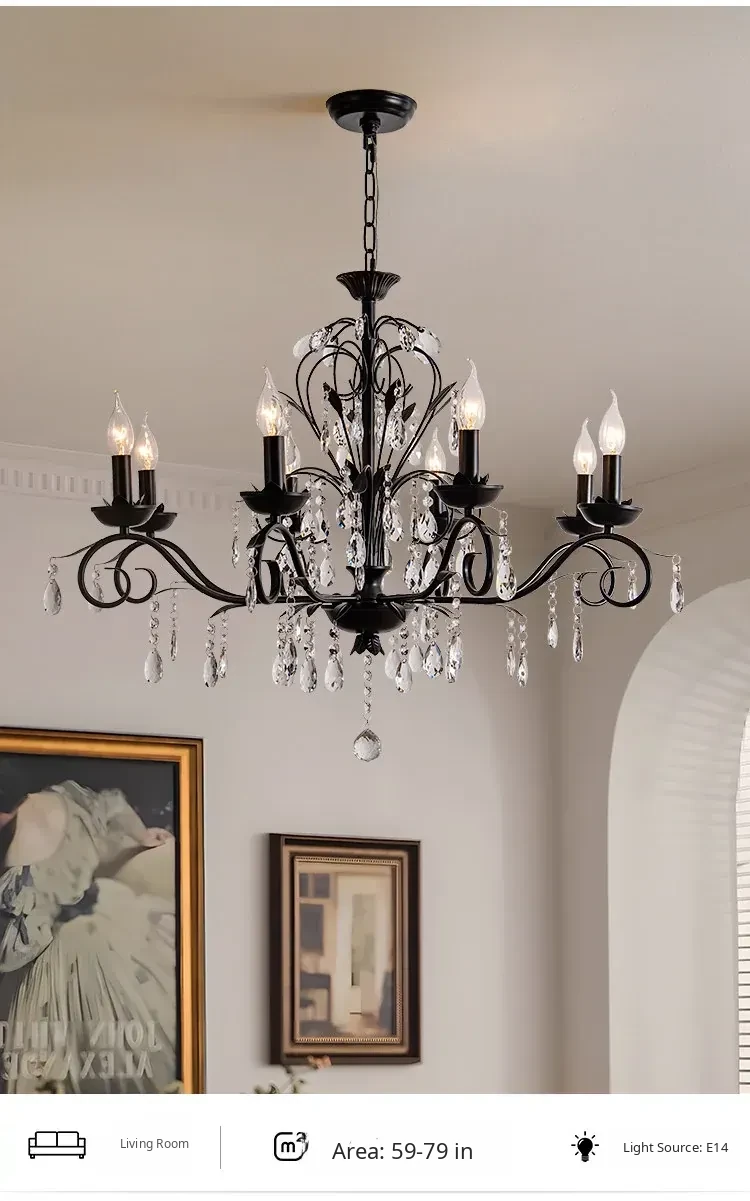 French Crystal Chandelier - Vintage American Candle Style Black Lighting for Elegant Living Rooms, Dining Areas, and Bedrooms - Timeless Antique Charm for Your Home