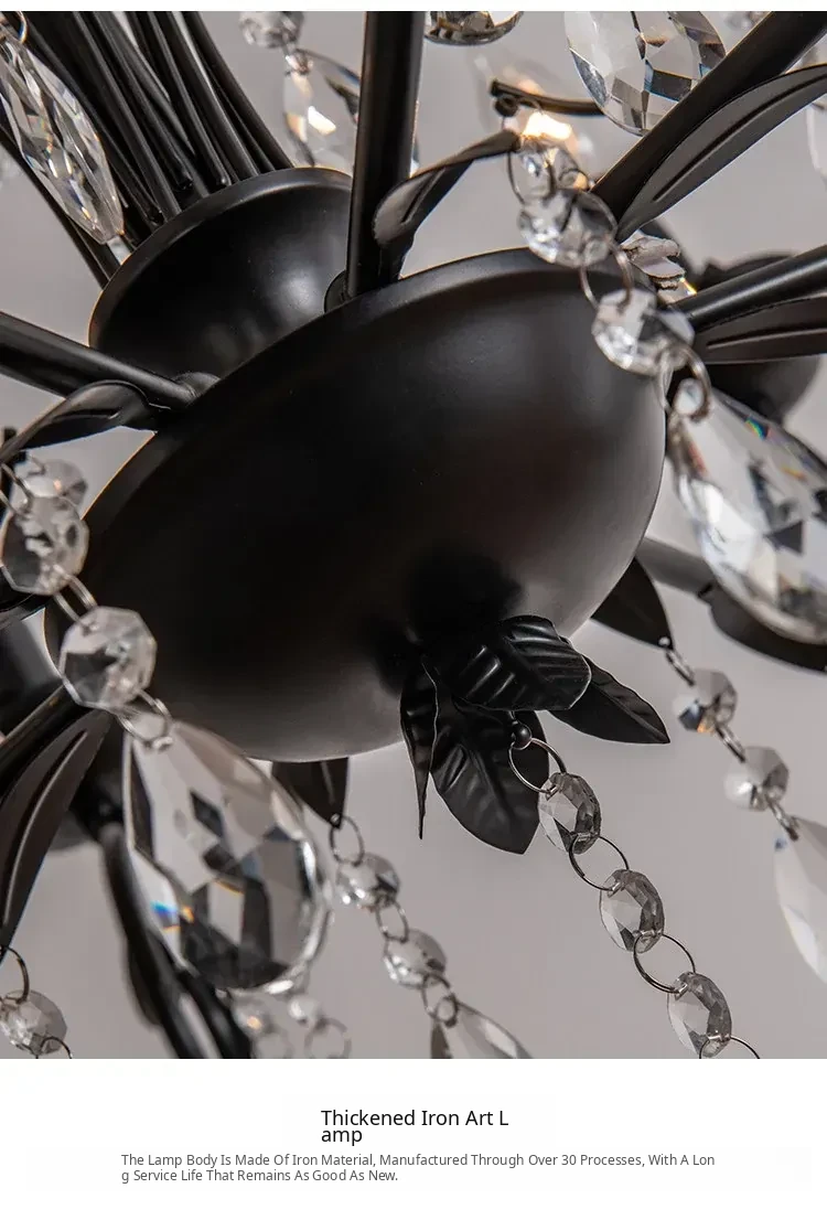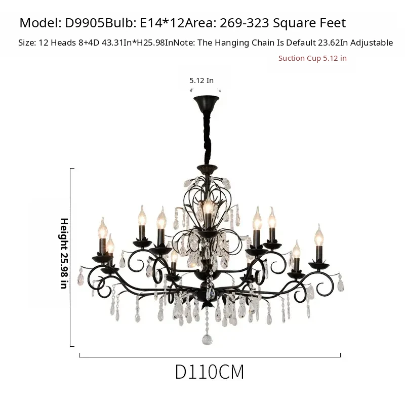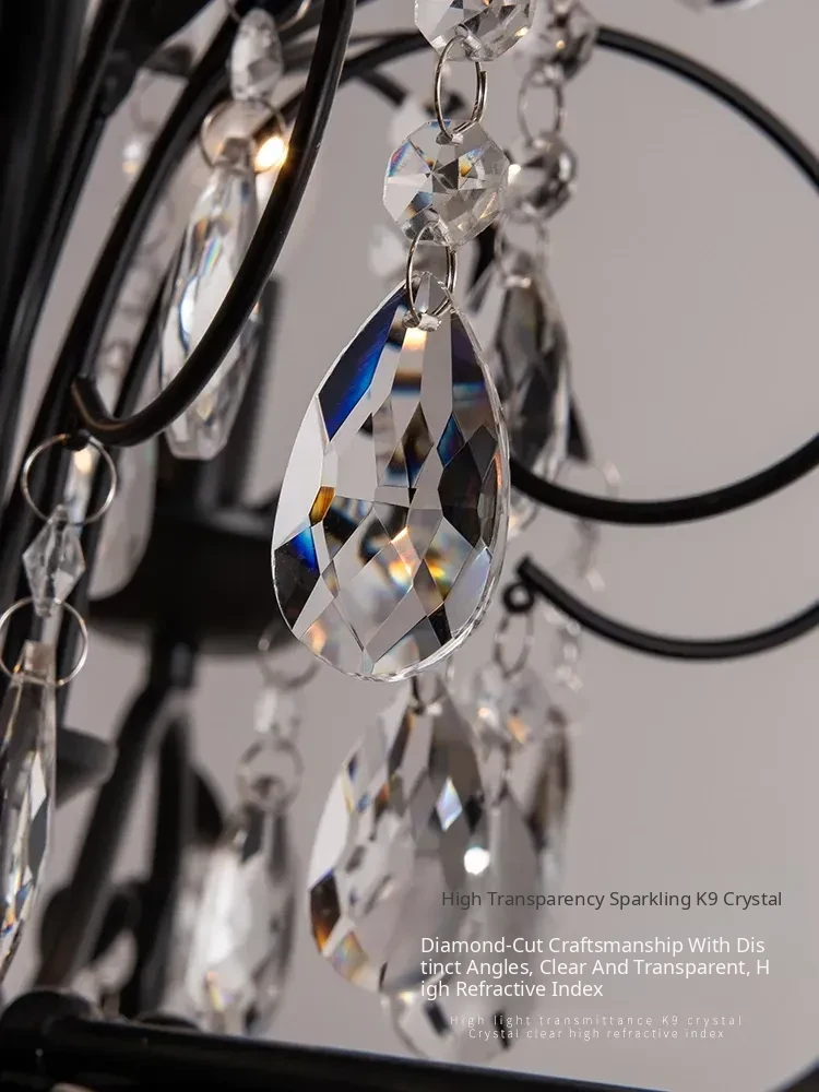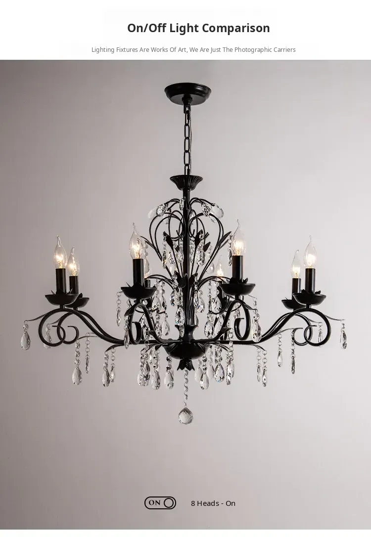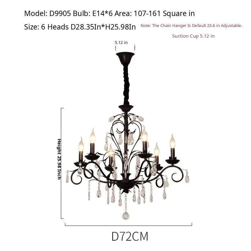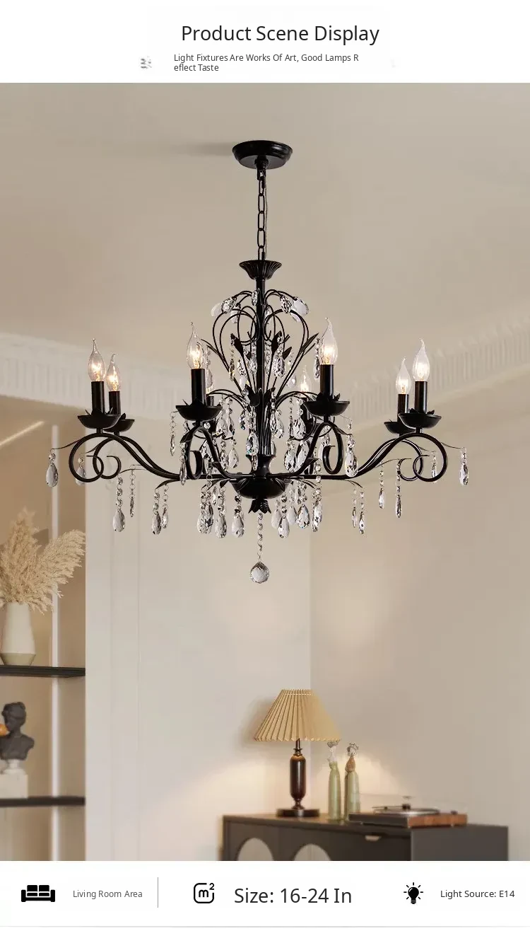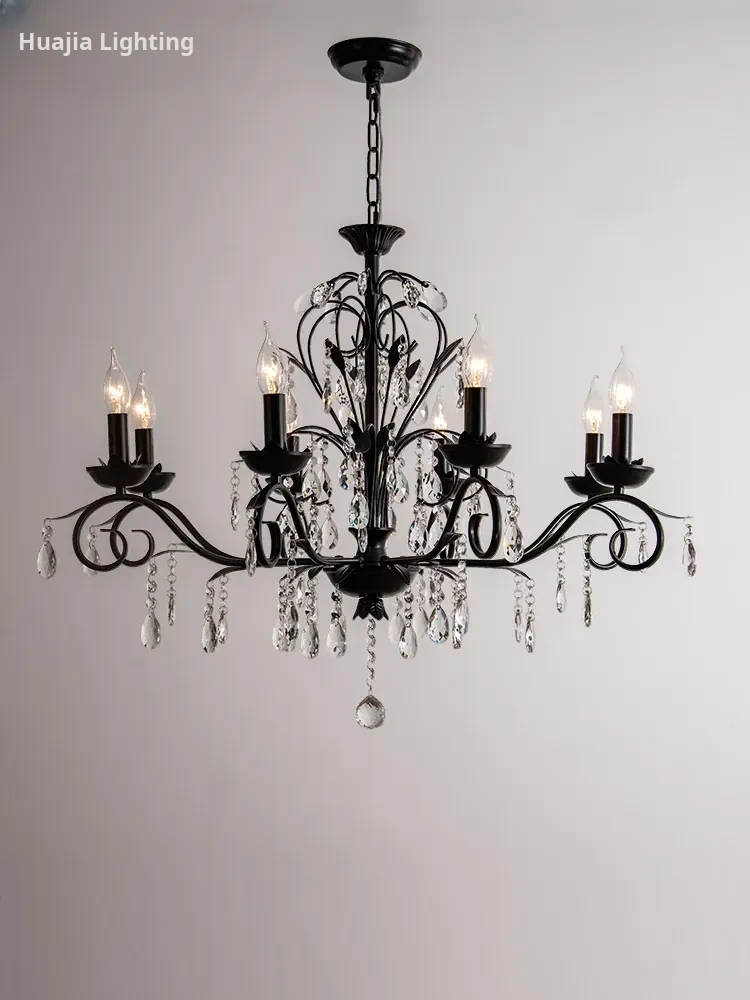 French Crystal Chandelier - Vintage American Candle Style Black Lighting for Elegant Living Rooms, Dining Areas, and Bedrooms - Timeless Antique Charm for Your Home