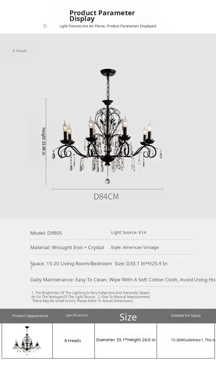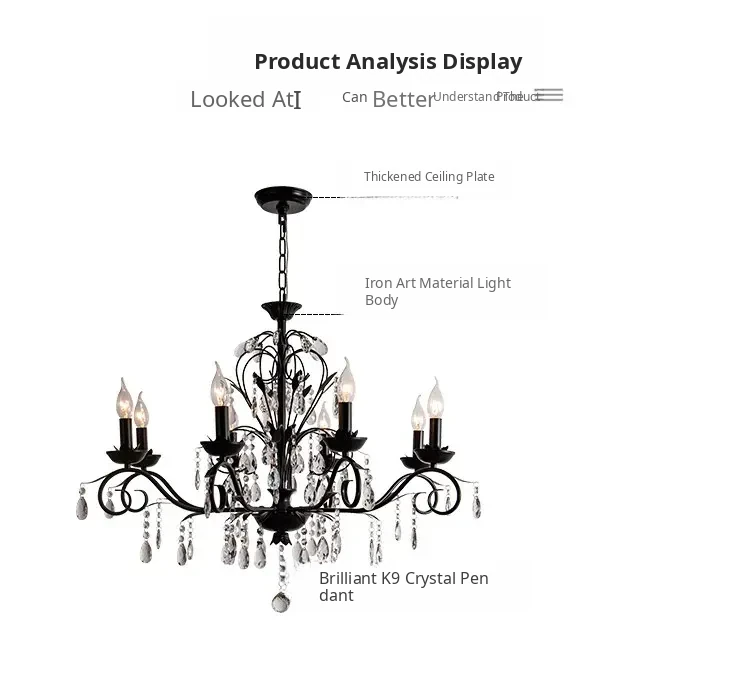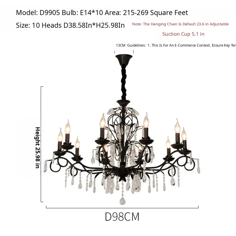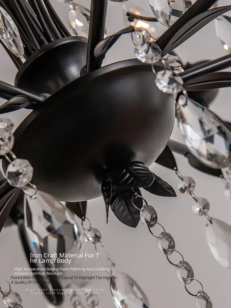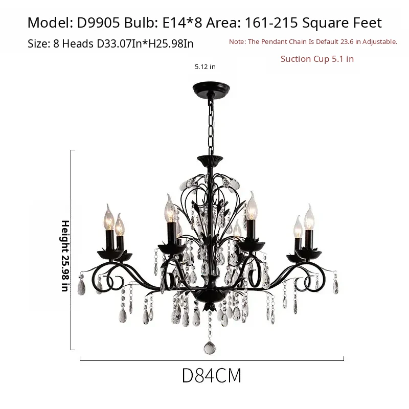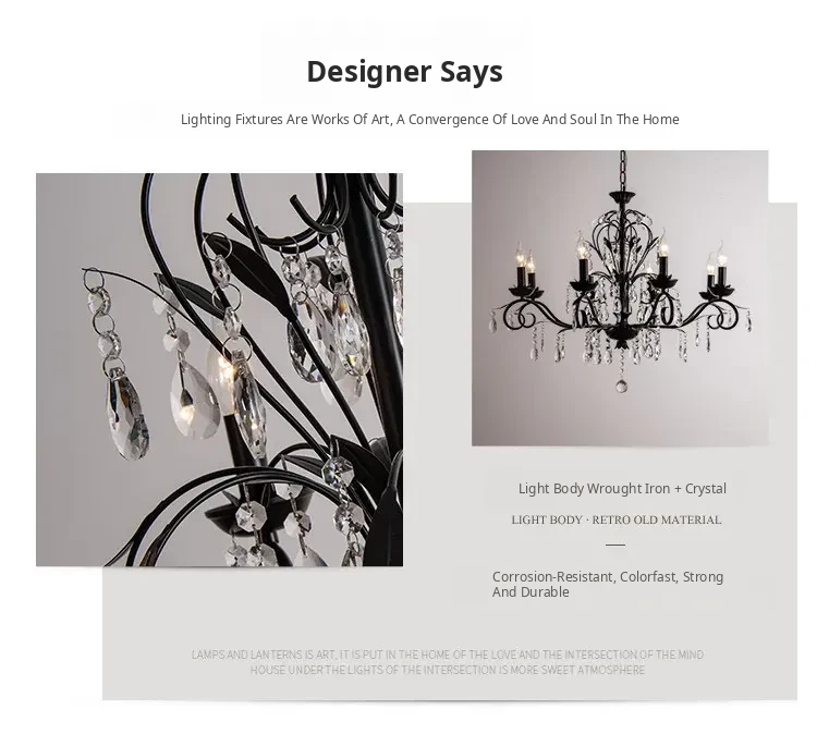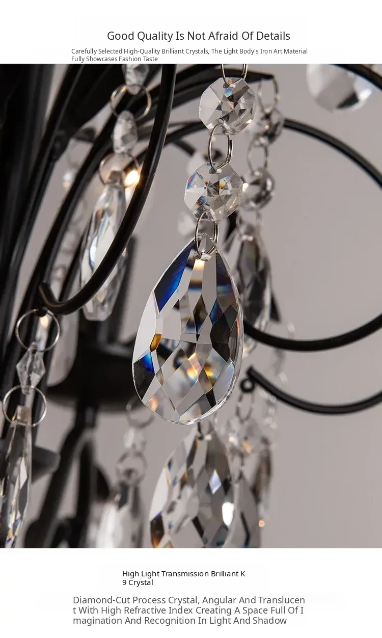 French Crystal Chandelier - Vintage American Candle Style Black Lighting for Elegant Living Rooms, Dining Areas, and Bedrooms - Timeless Antique Charm for Your Home