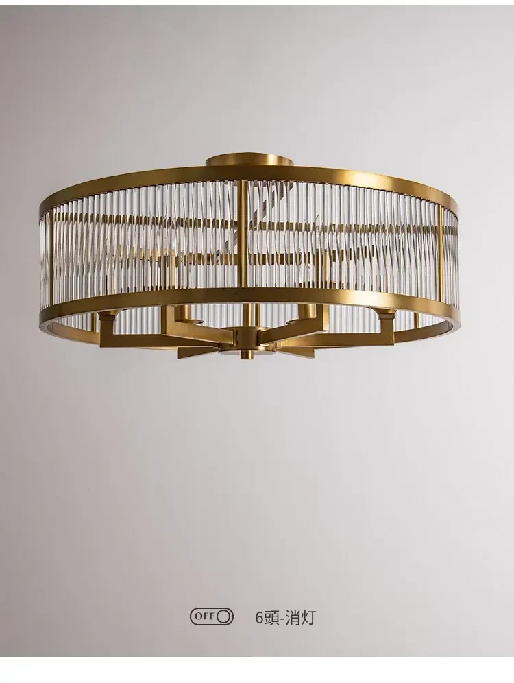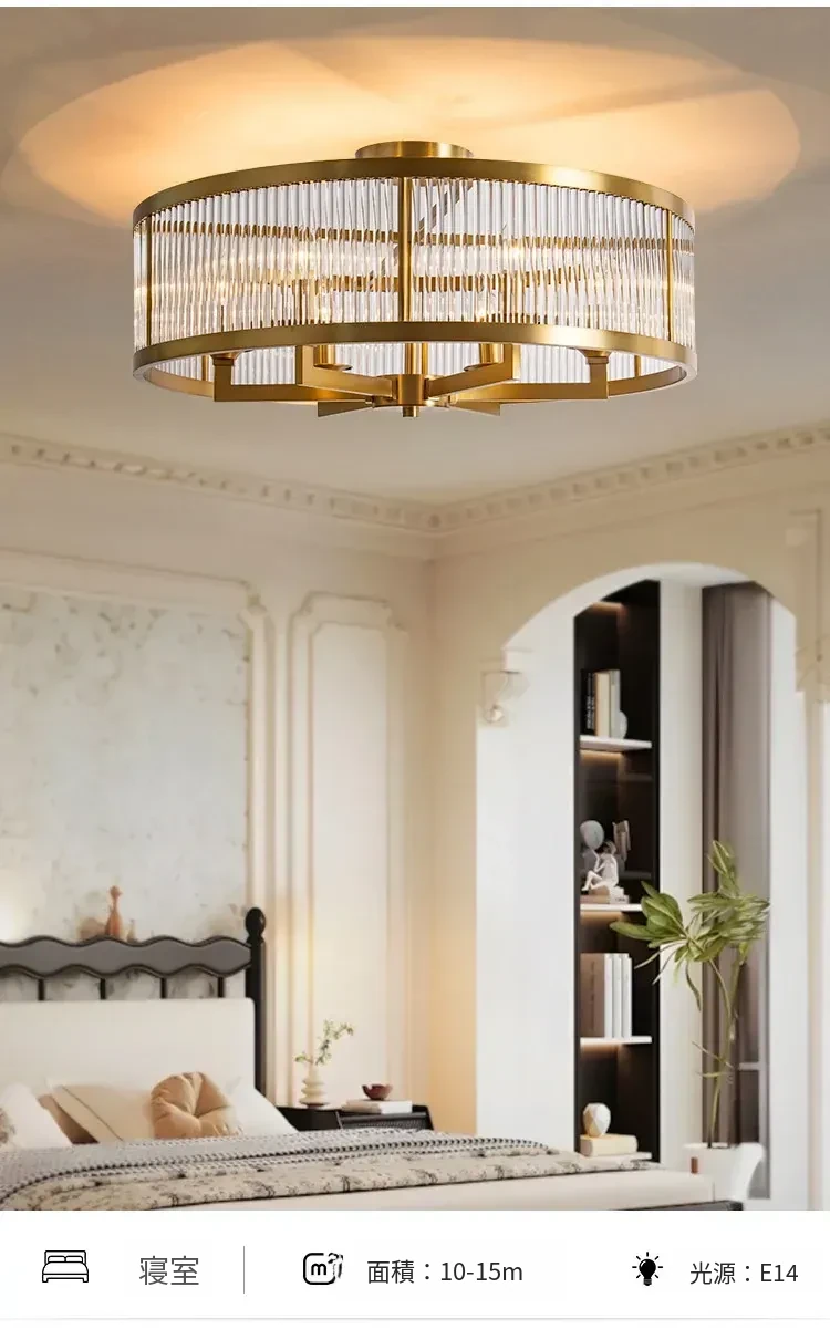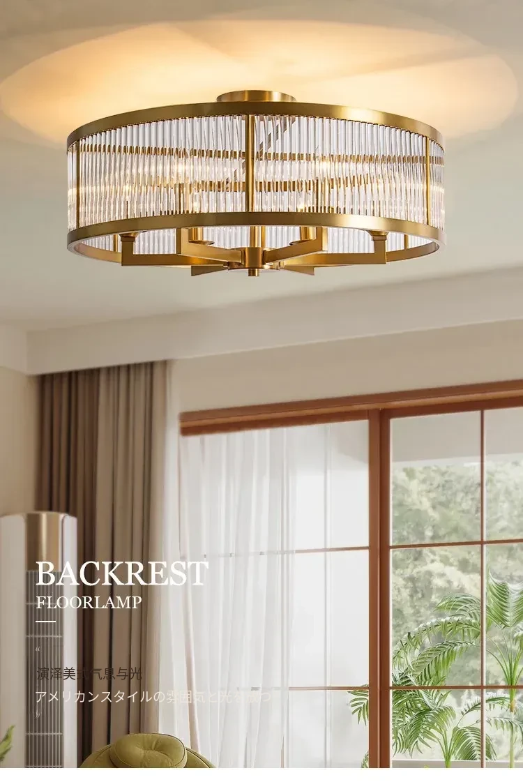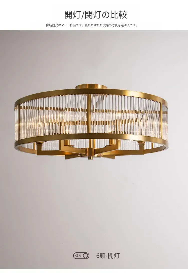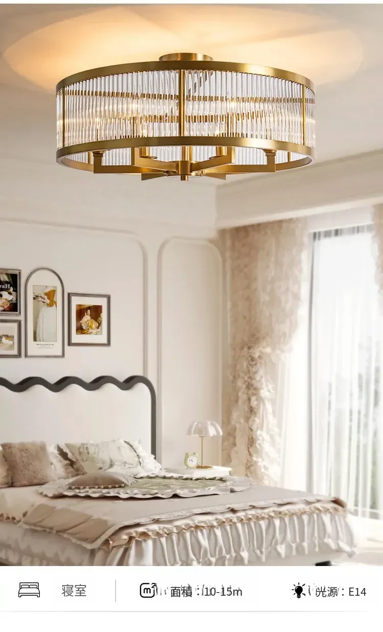 フレンチラグジュアリークリスタルシーリングライト - 寝室や書斎にぴったりな純銅製のレトロで高級感溢れるデザイン。ダイニングルームにも最適なガラス製シーリングライトで、上品な雰囲気を演出します!