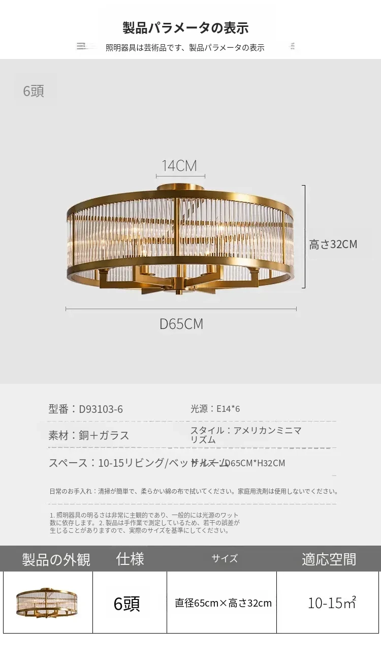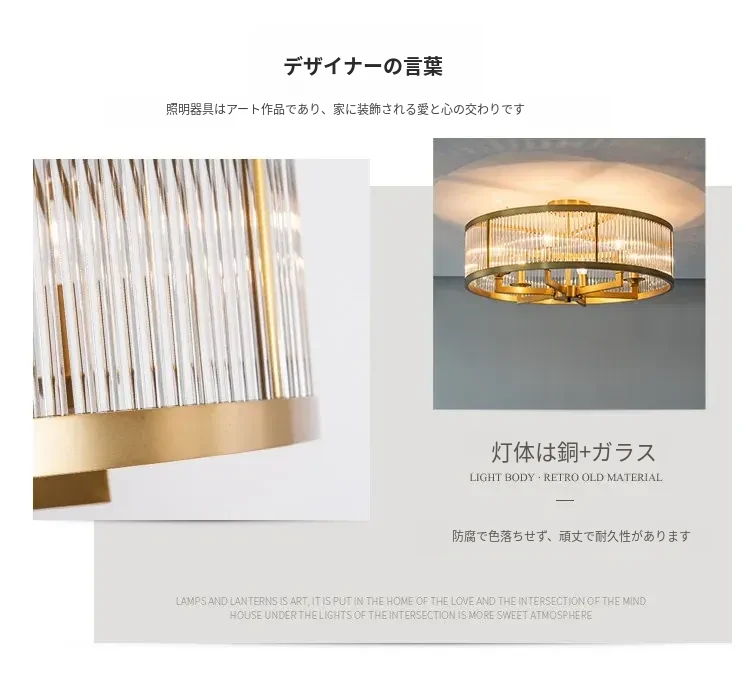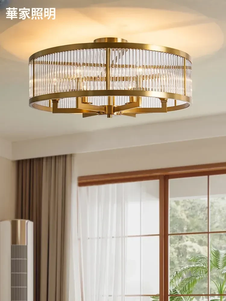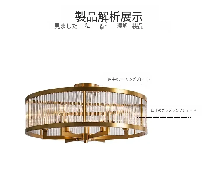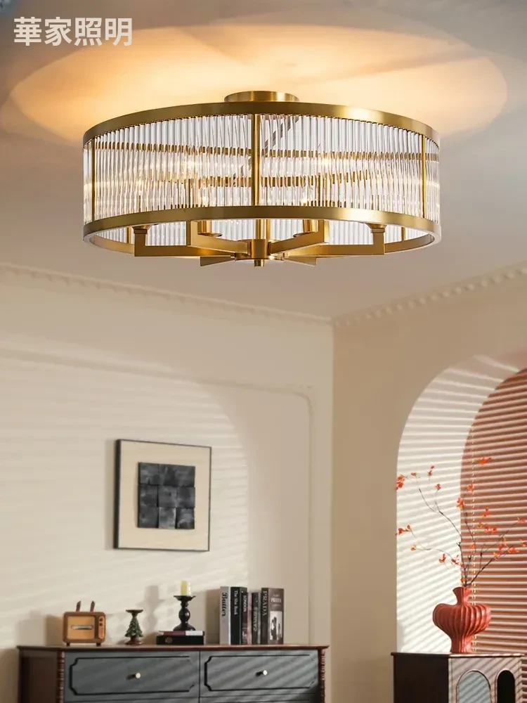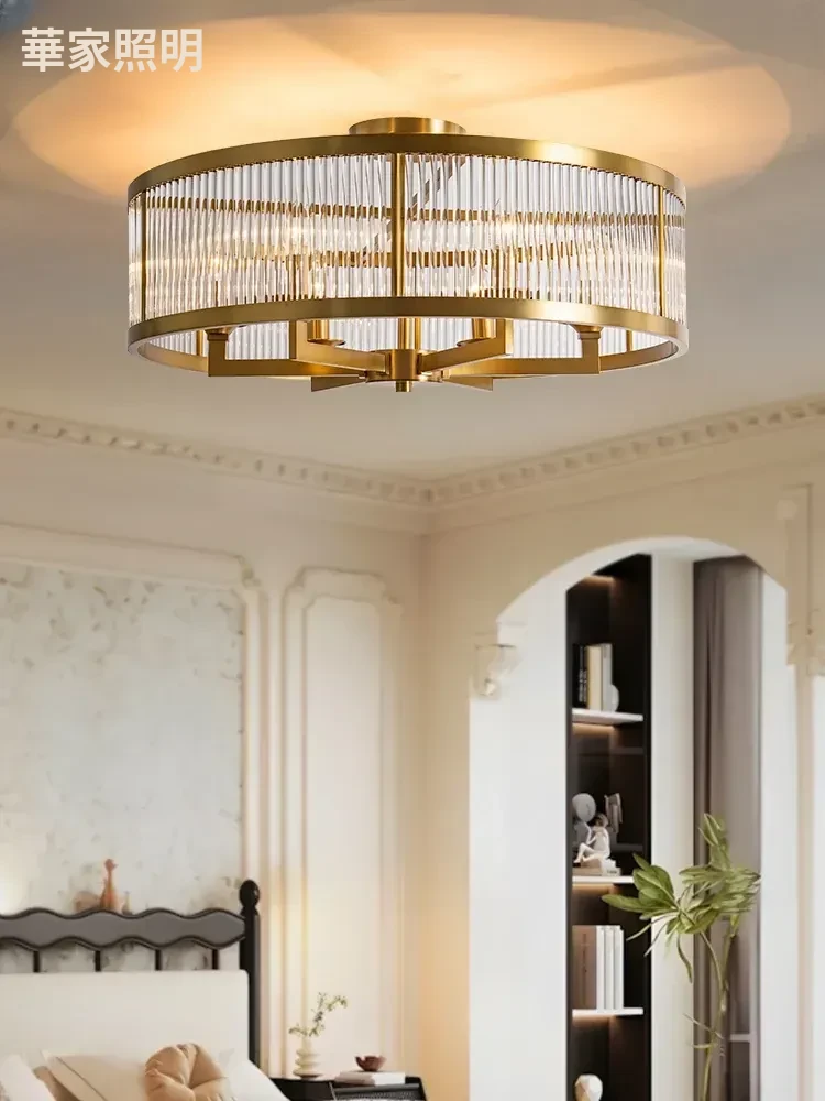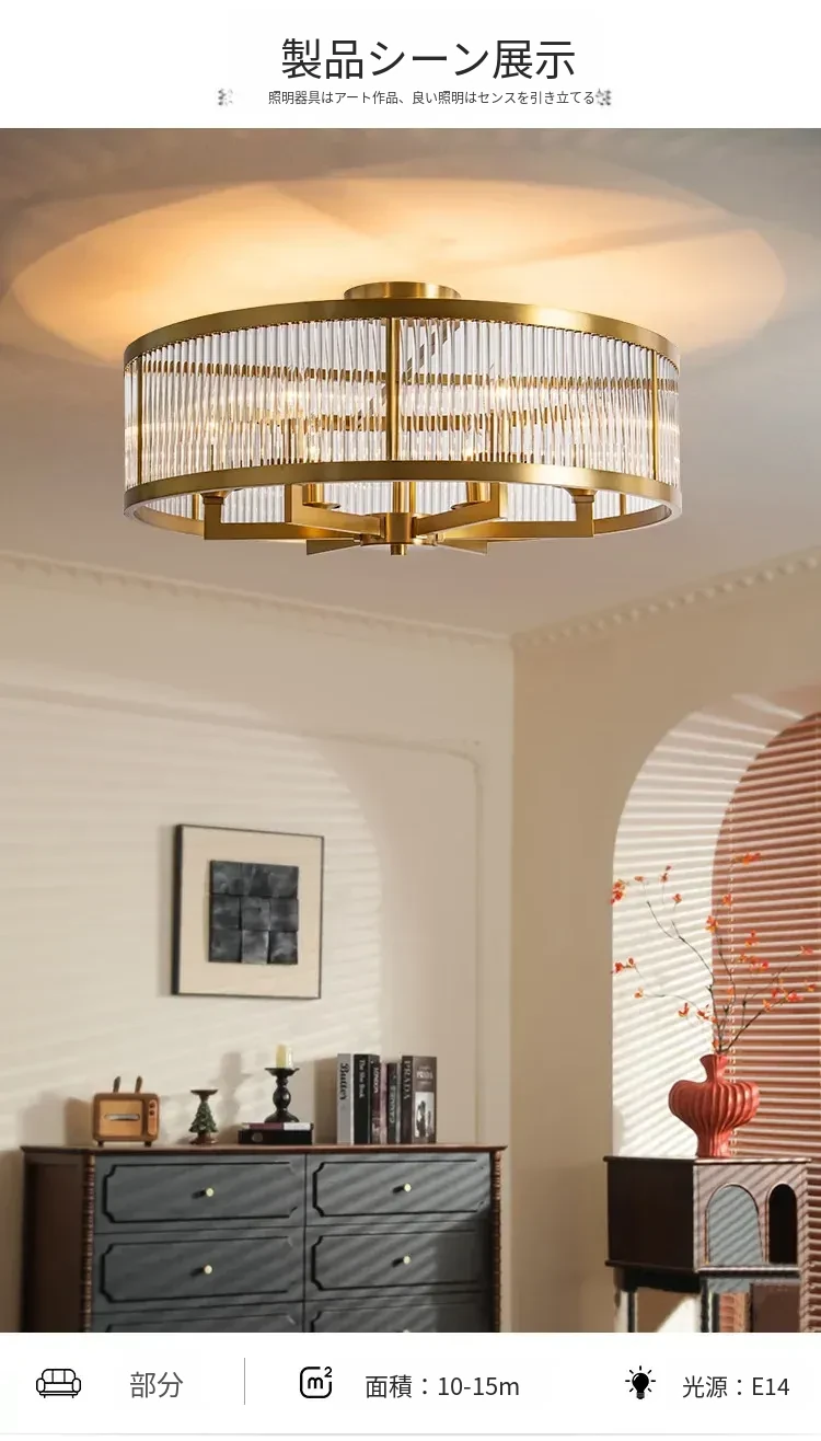 フレンチラグジュアリークリスタルシーリングライト - 寝室や書斎にぴったりな純銅製のレトロで高級感溢れるデザイン。ダイニングルームにも最適なガラス製シーリングライトで、上品な雰囲気を演出します!