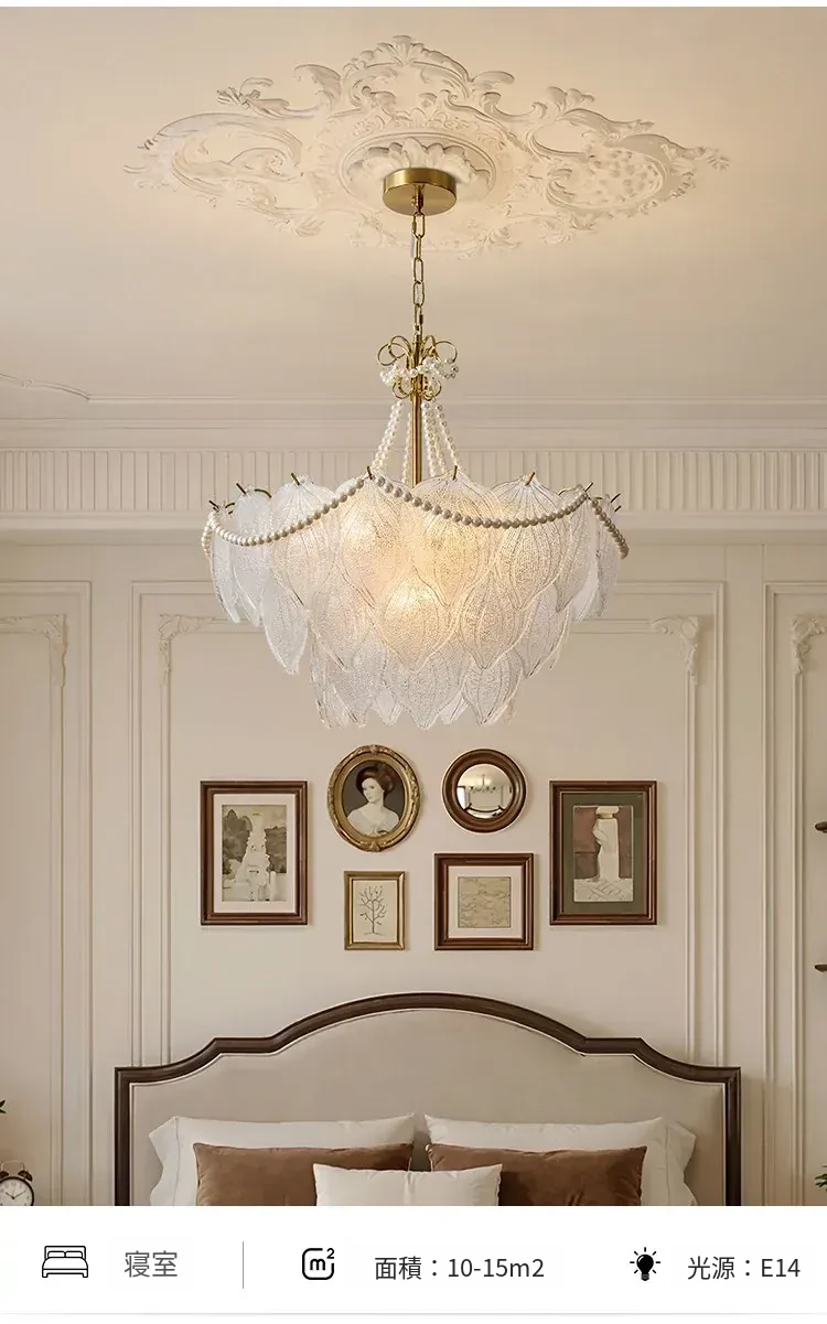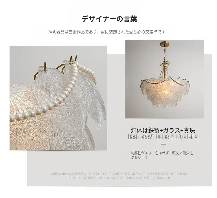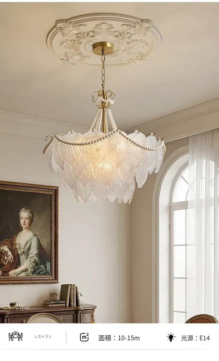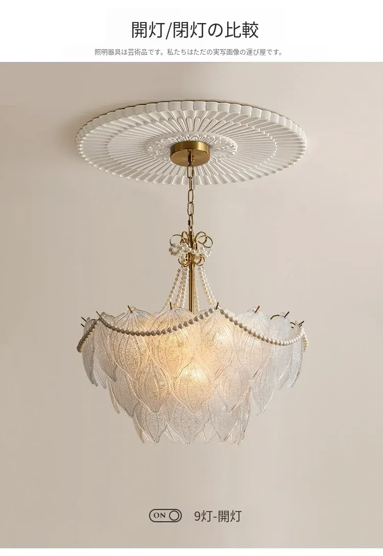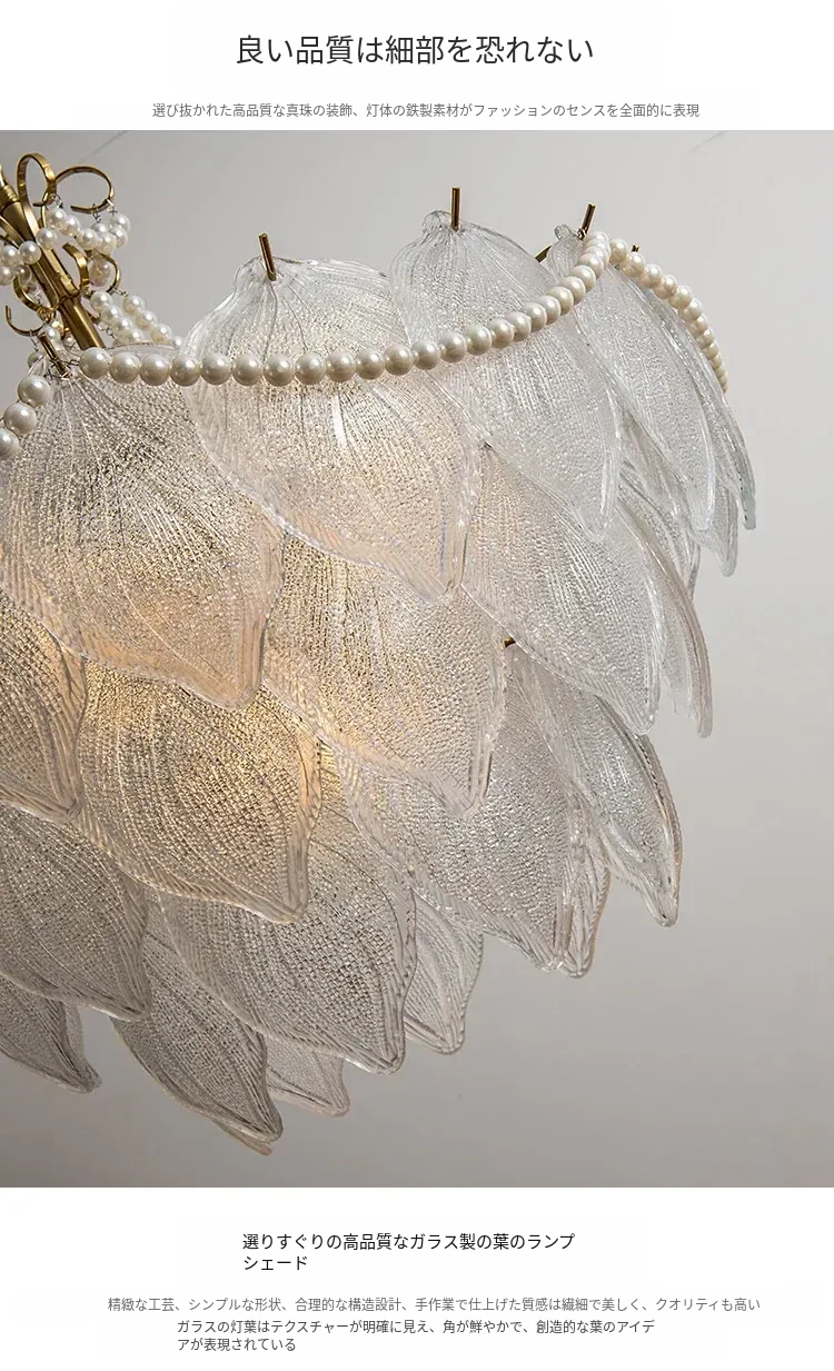 フランス風軽奢華ガラスシャンデリア モダンミニマリズム 珍珠デザイン リビングルーム・ベッドルーム・ダイニング用 シックでエレガントなインテリアに最適!