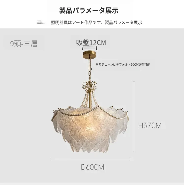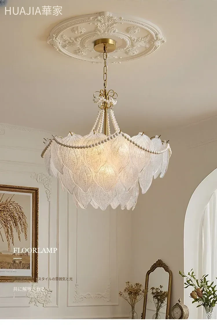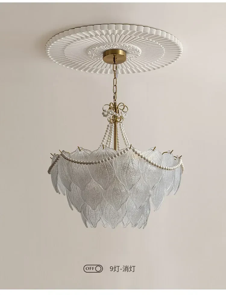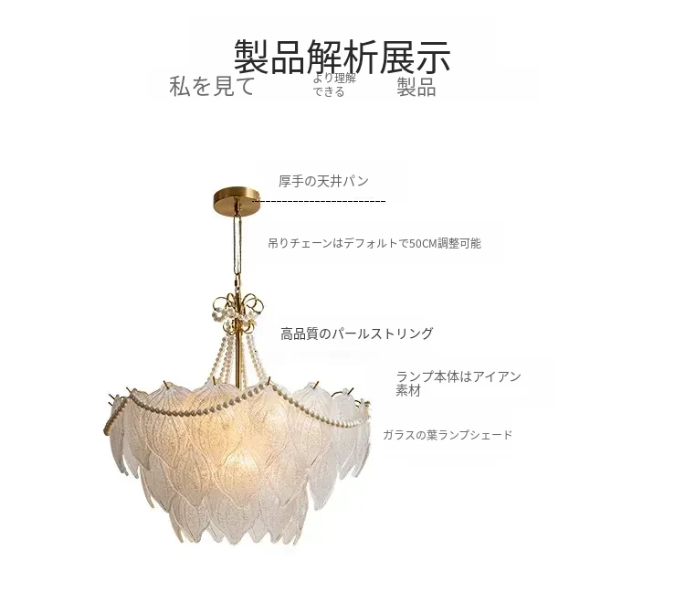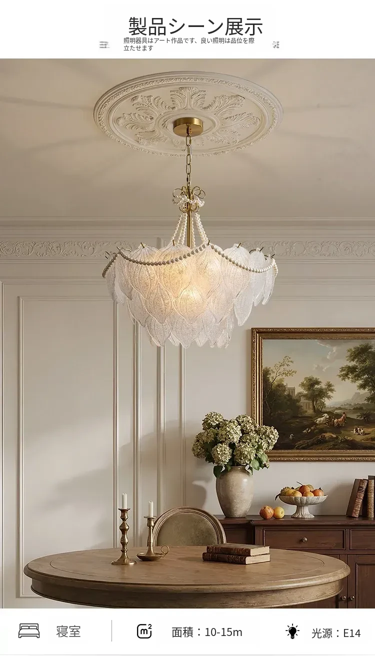 フランス風軽奢華ガラスシャンデリア モダンミニマリズム 珍珠デザイン リビングルーム・ベッドルーム・ダイニング用 シックでエレガントなインテリアに最適!