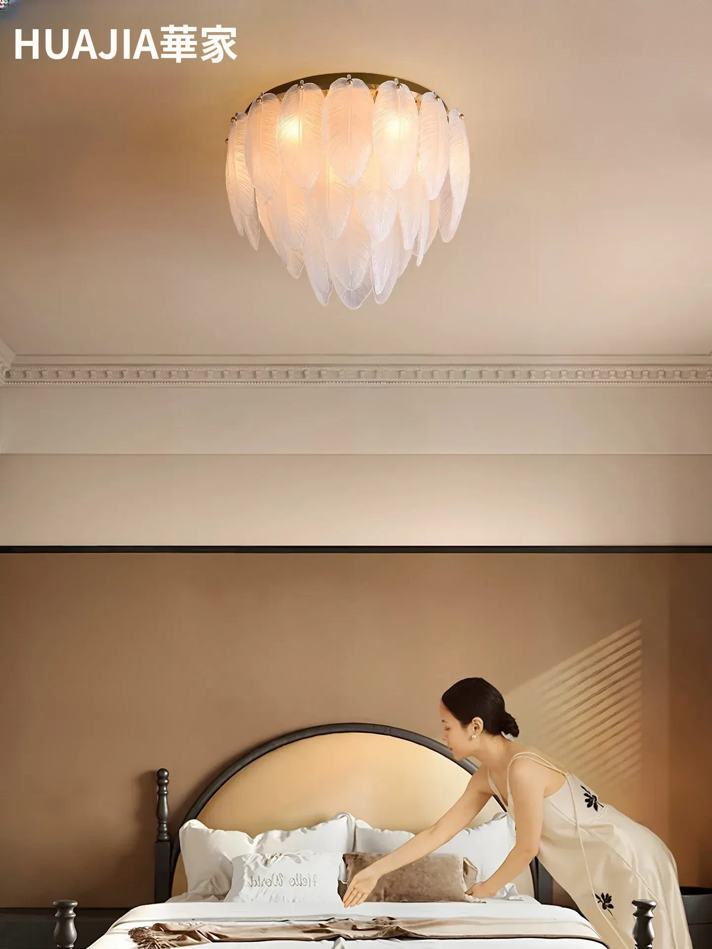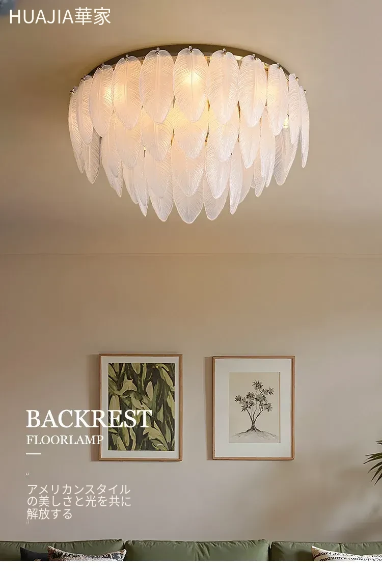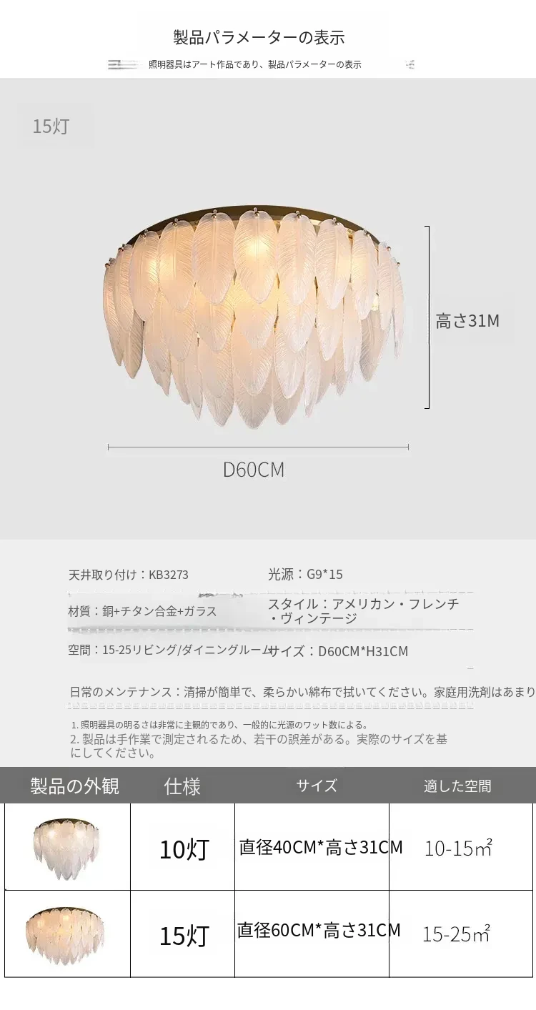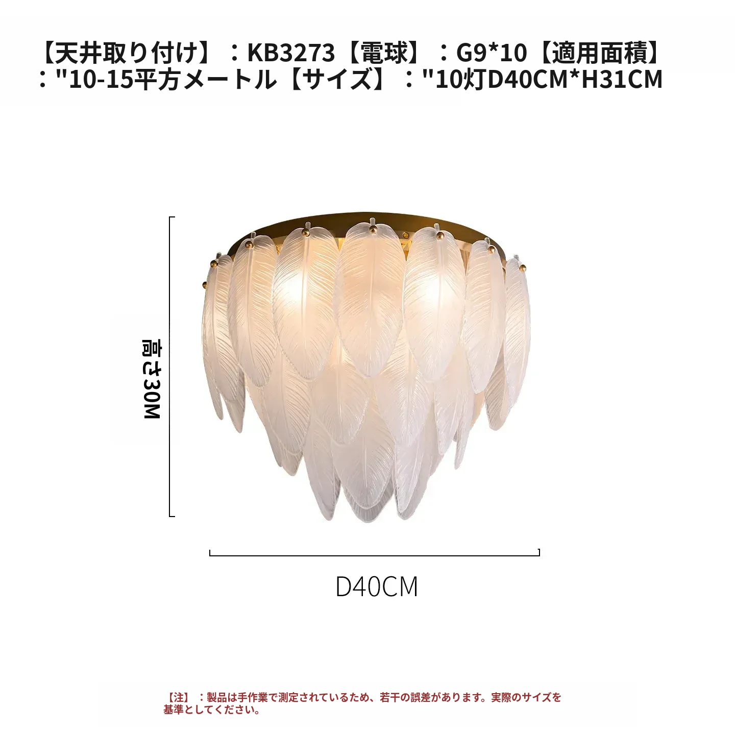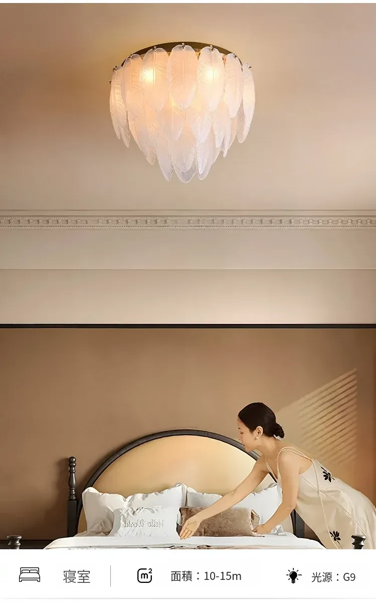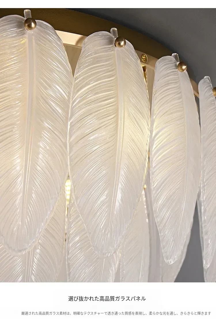 フランス風ラグジュアリー羽毛シーリングライト – 寝室や書斎、ダイニングに最適な全銅製の雰囲気満点のガラスシーリング照明!おしゃれで上品な空間を演出します。