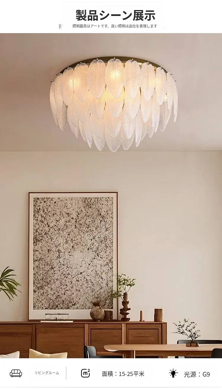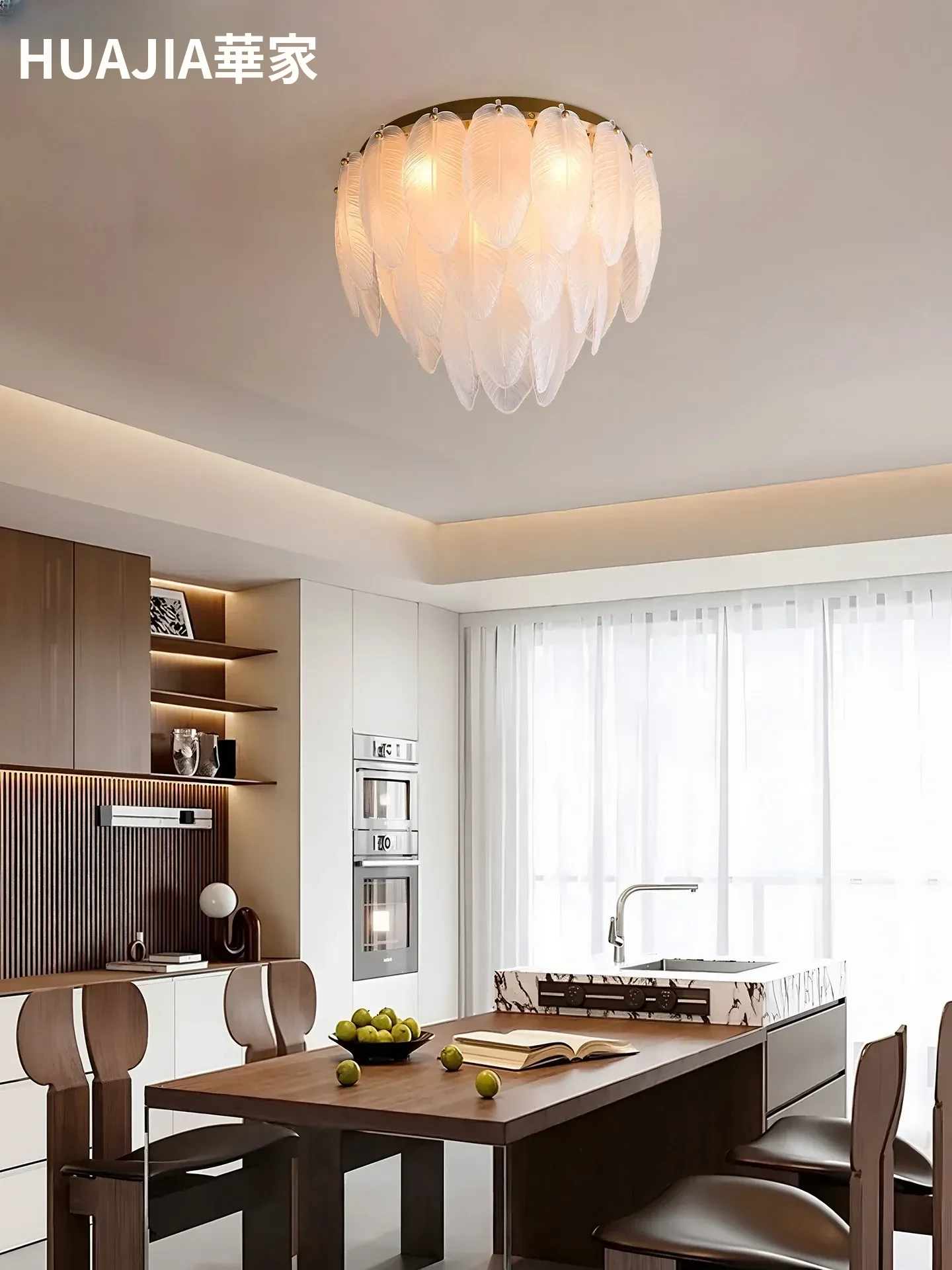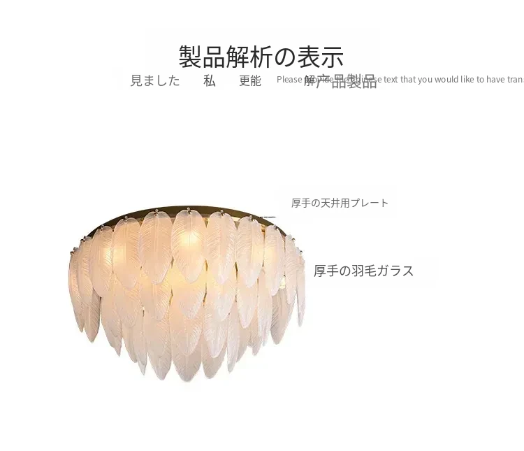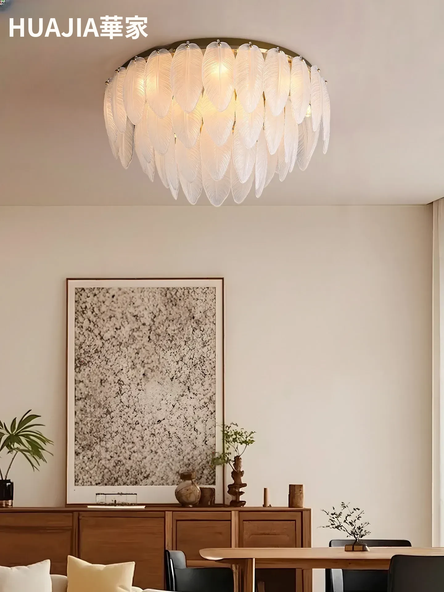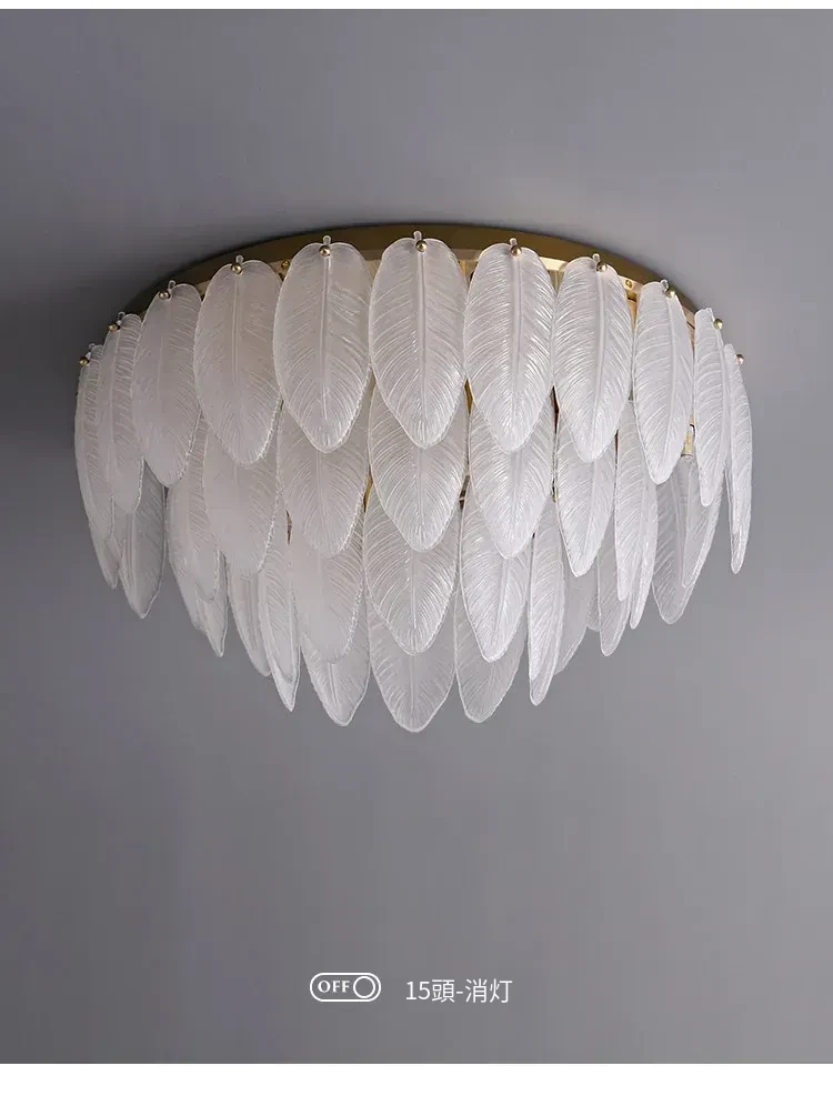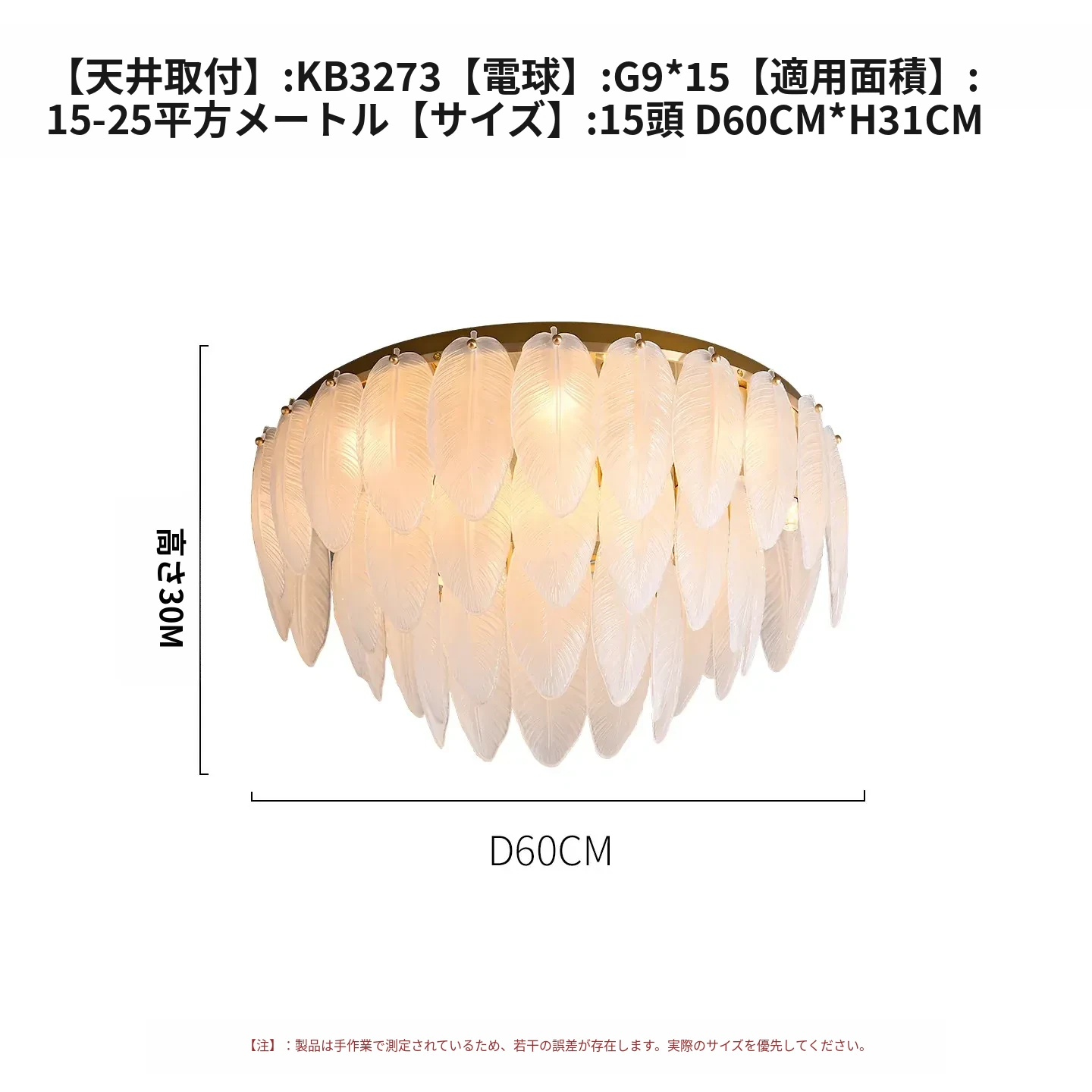 フランス風ラグジュアリー羽毛シーリングライト – 寝室や書斎、ダイニングに最適な全銅製の雰囲気満点のガラスシーリング照明!おしゃれで上品な空間を演出します。