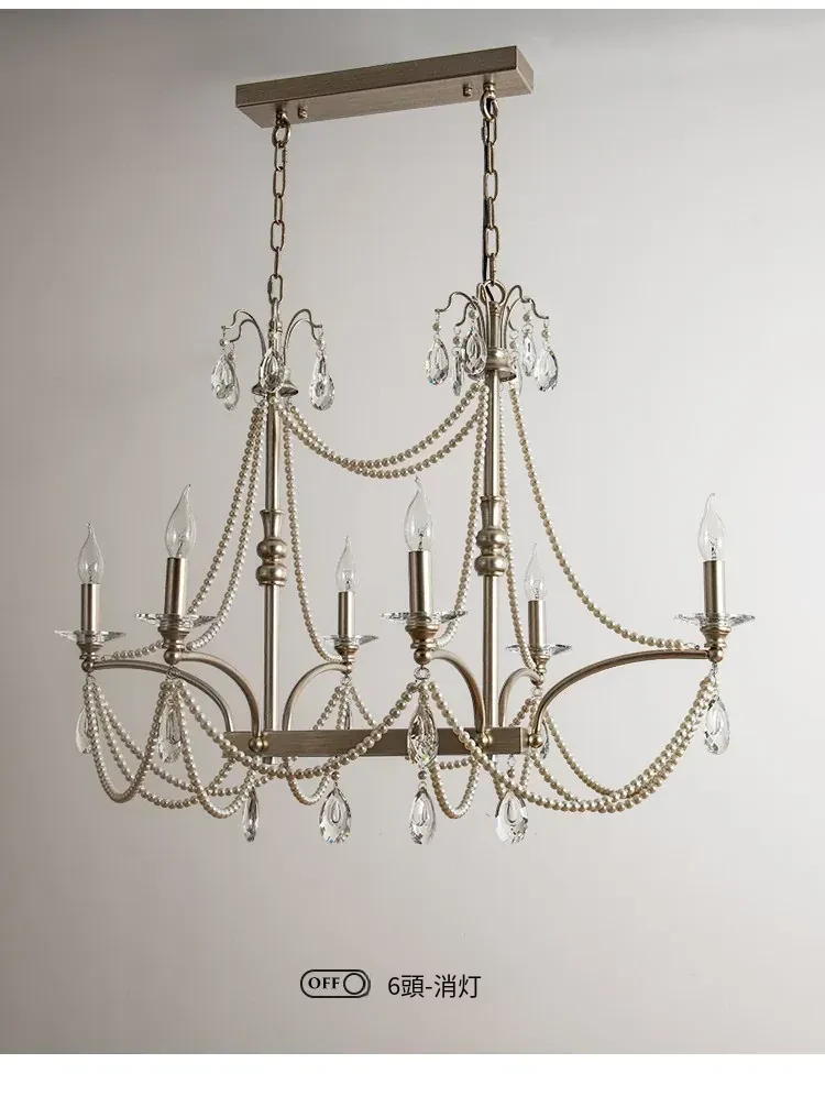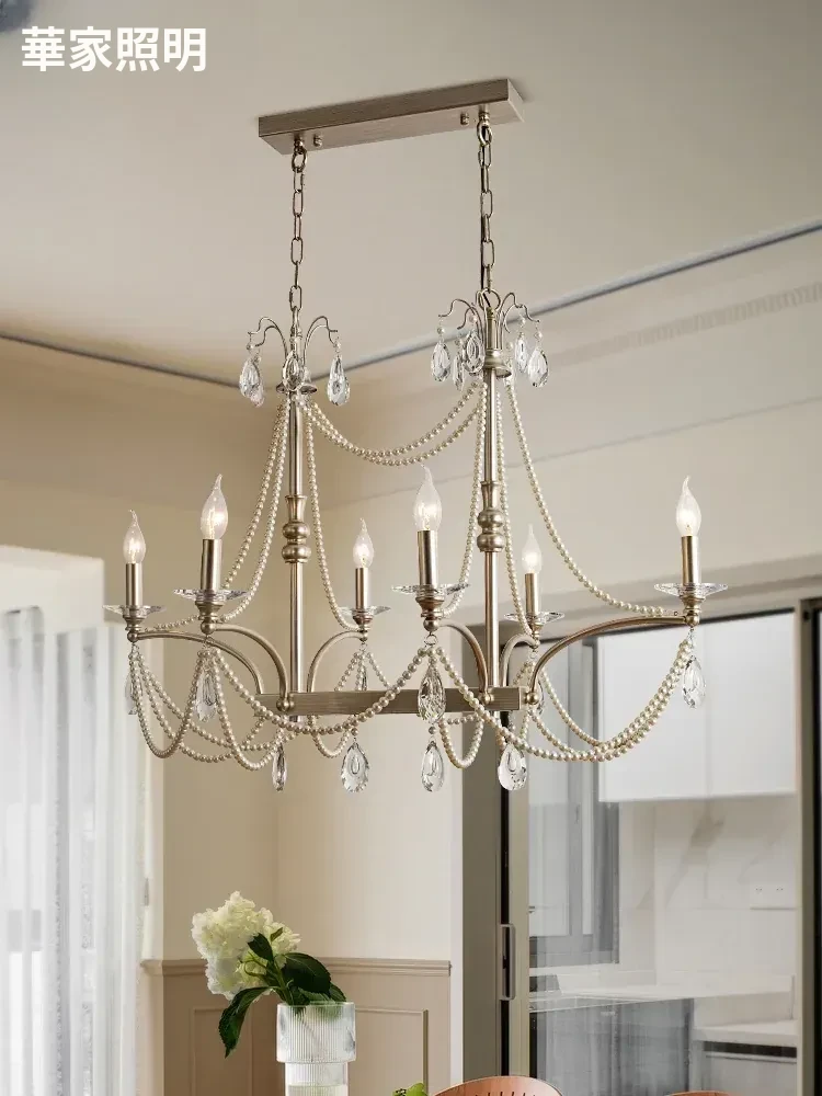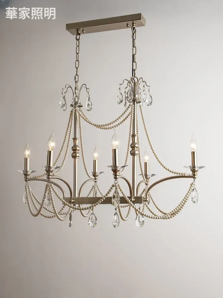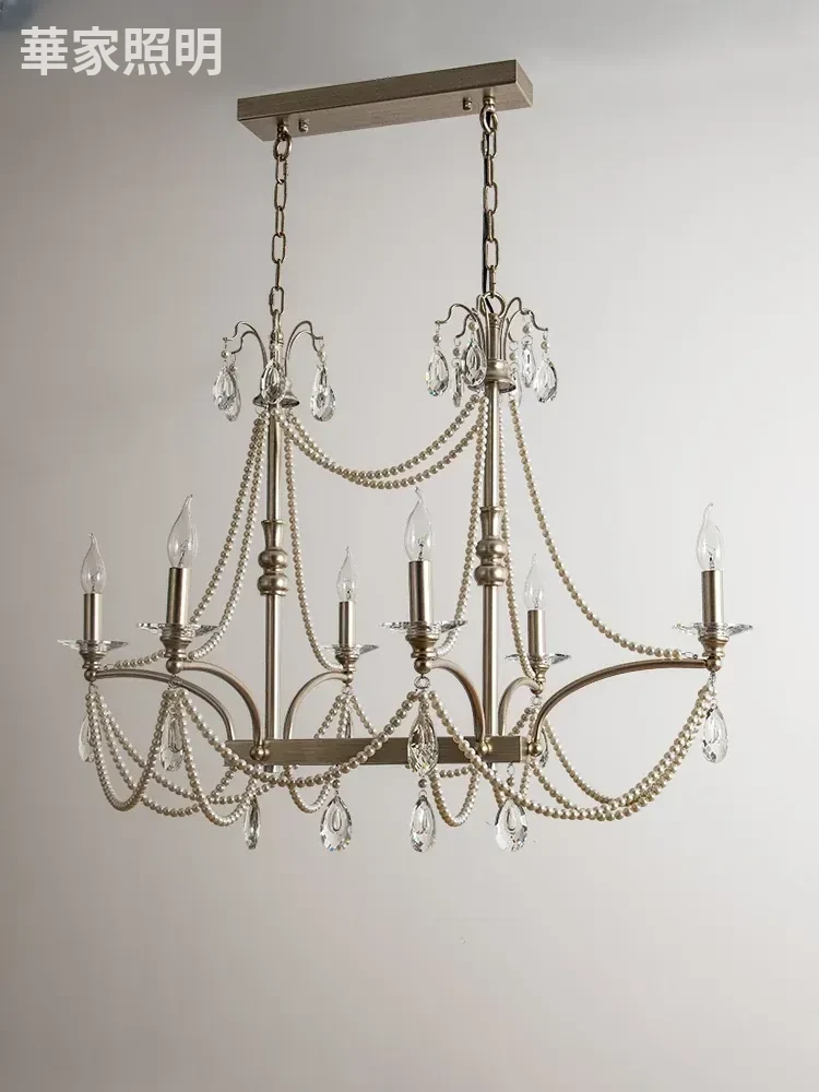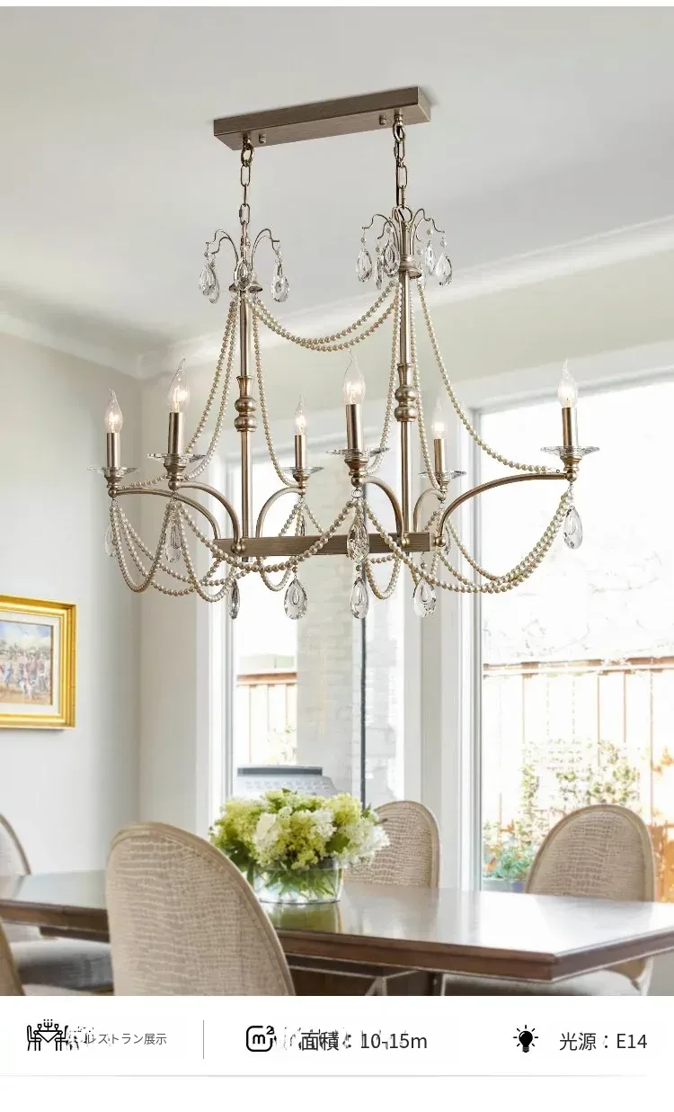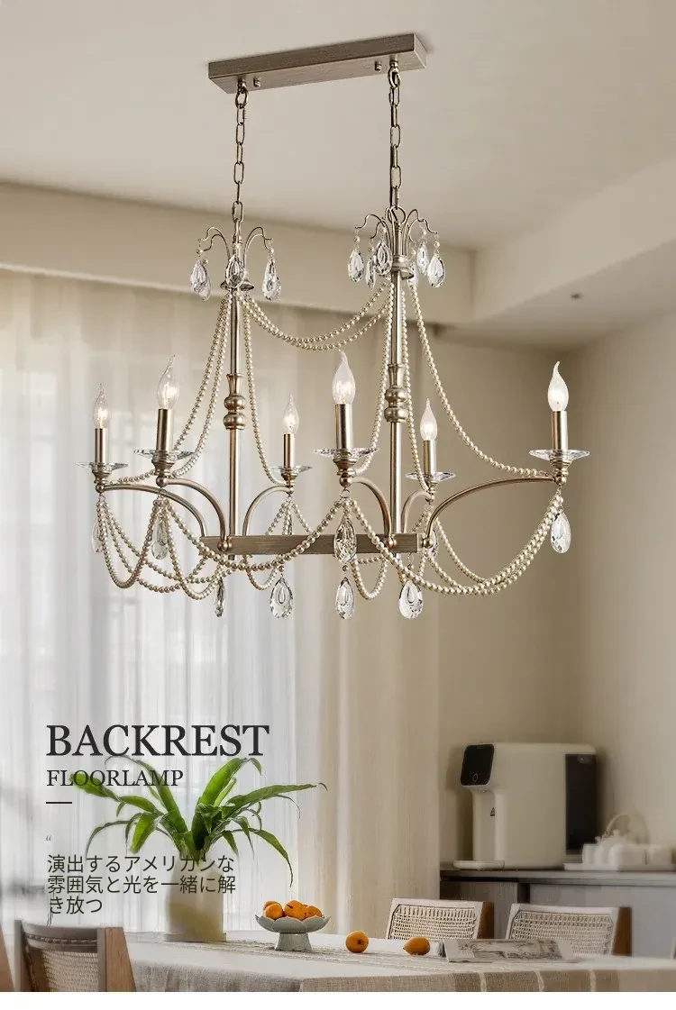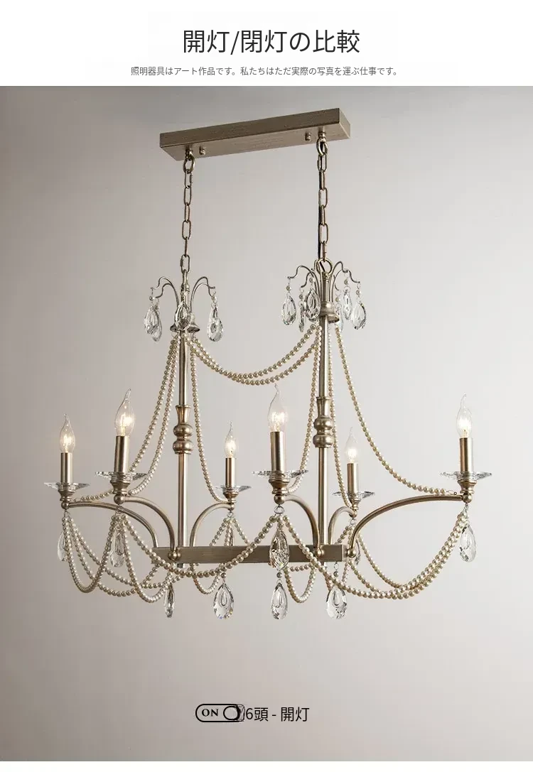 フランス風レストラン用長方形ダイニングテーブル吊り下げライト - 創造的で高級感あふれるクリスタルとアメリカンヴィンテージスタイルの軽やかな贅沢、パール照明器具で特別な空間を演出!