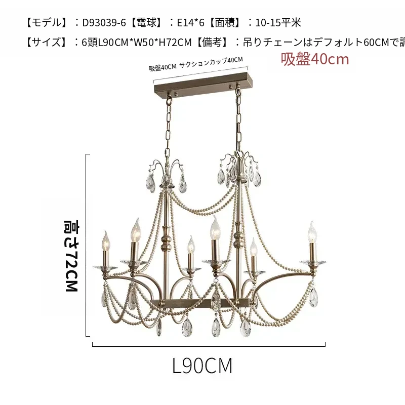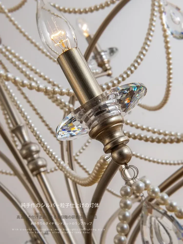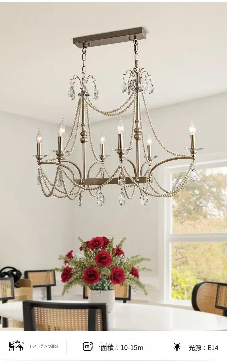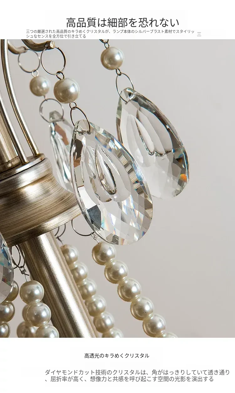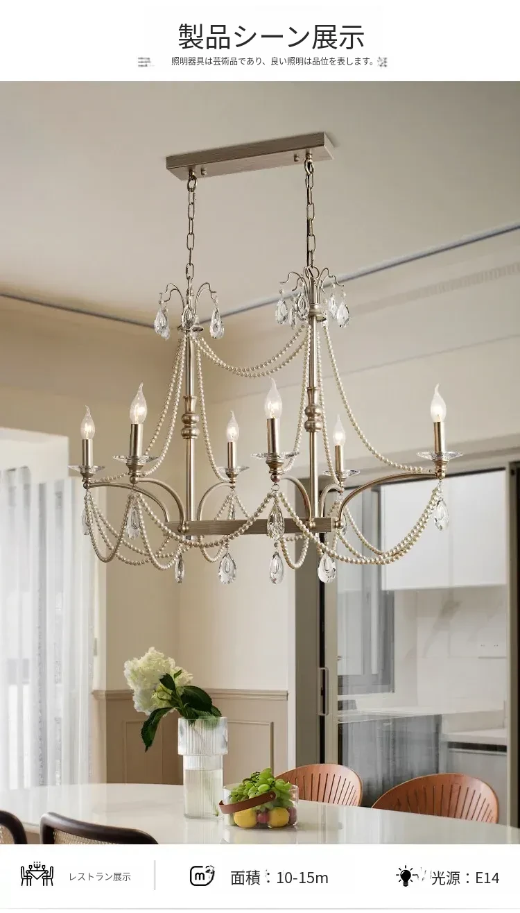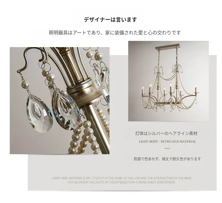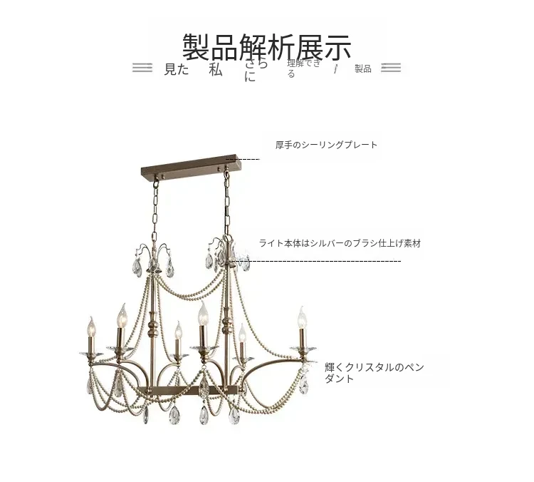 フランス風レストラン用長方形ダイニングテーブル吊り下げライト - 創造的で高級感あふれるクリスタルとアメリカンヴィンテージスタイルの軽やかな贅沢、パール照明器具で特別な空間を演出!