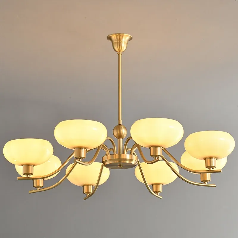 French Style Chandelier - Vintage American Elegance for Living Room, Bedroom & Dining Area - Premium Quality All-Copper and Glass Design for a Cozy Atmosphere