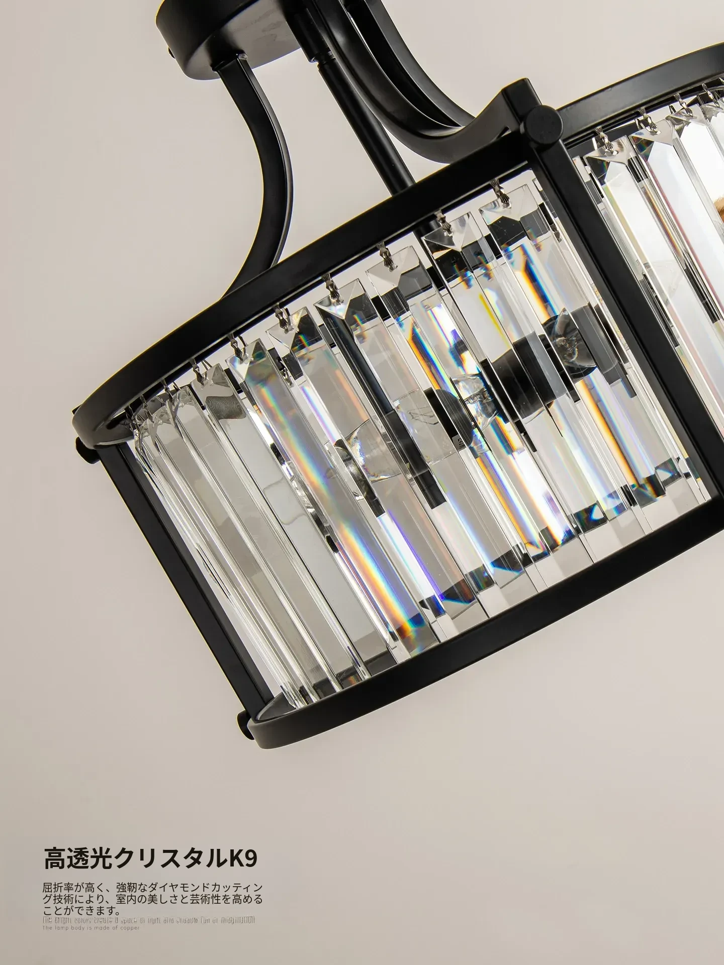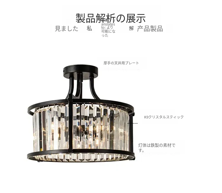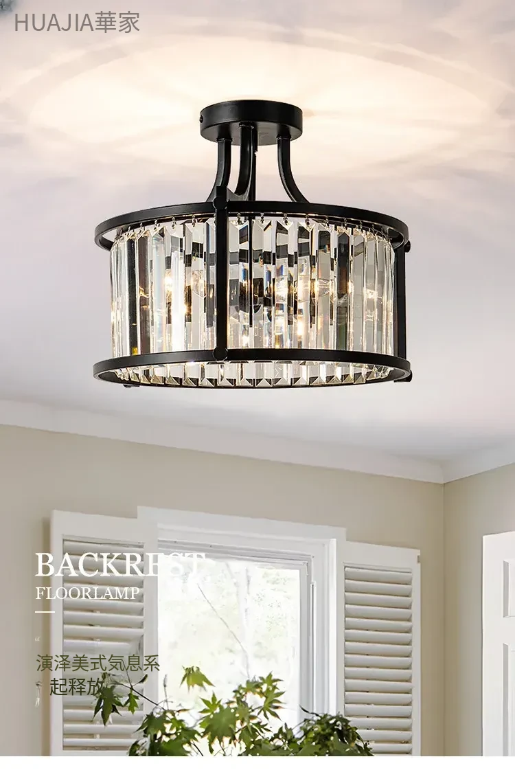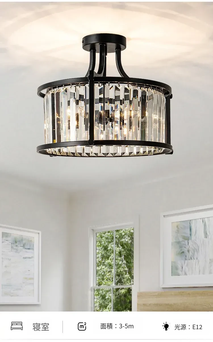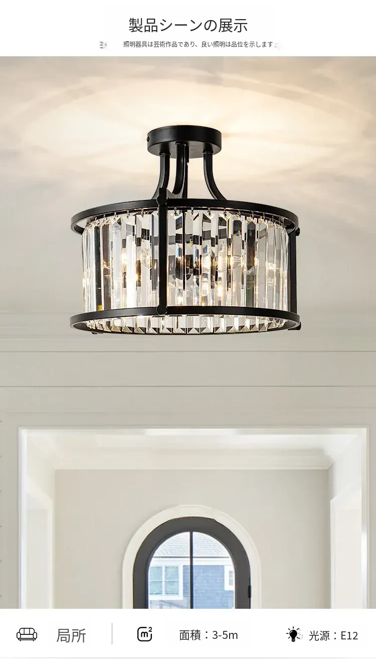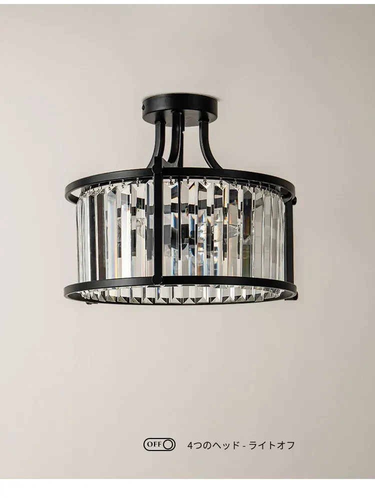 フレンチスタイルシーリングライト|ラグジュアリークリスタルの寝室用|アメリカンブラックミニマリストデザイン|書斎やダイニングにも最適なハーフペンダントシーリングライト!洗練された空間を演出します。