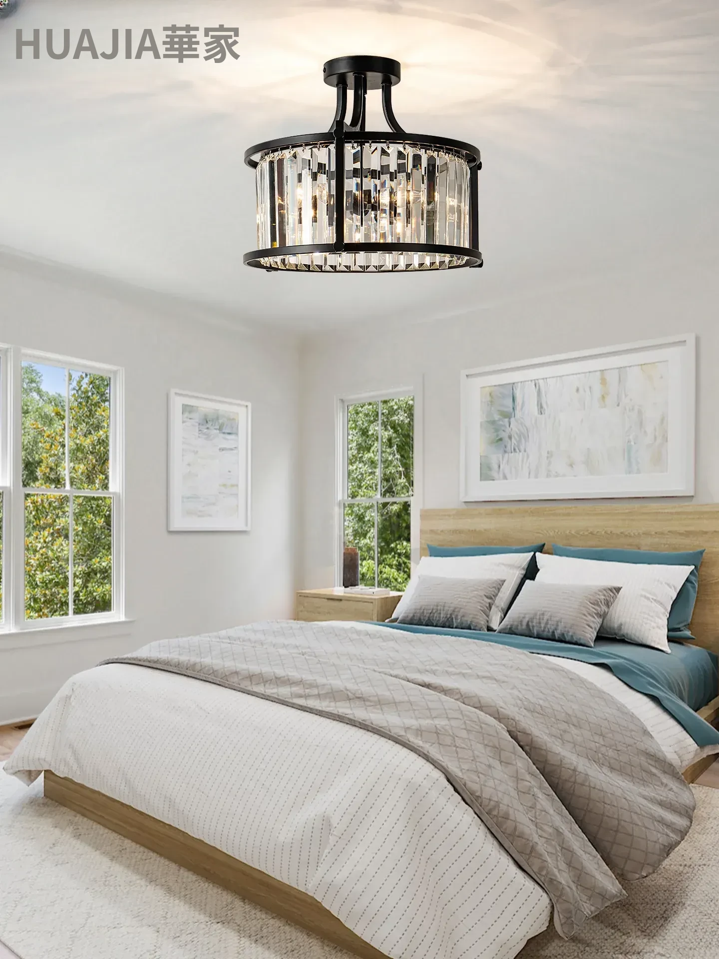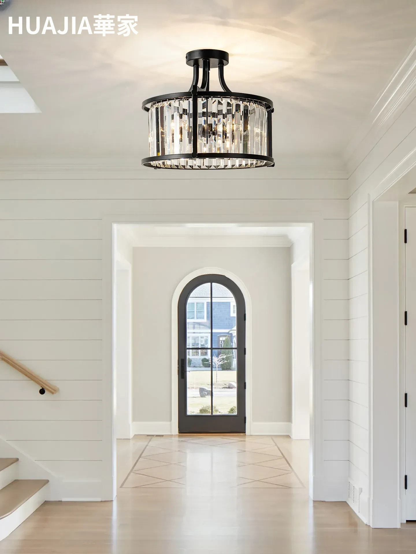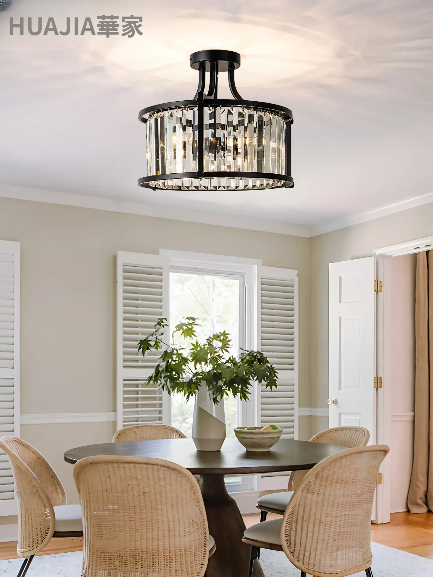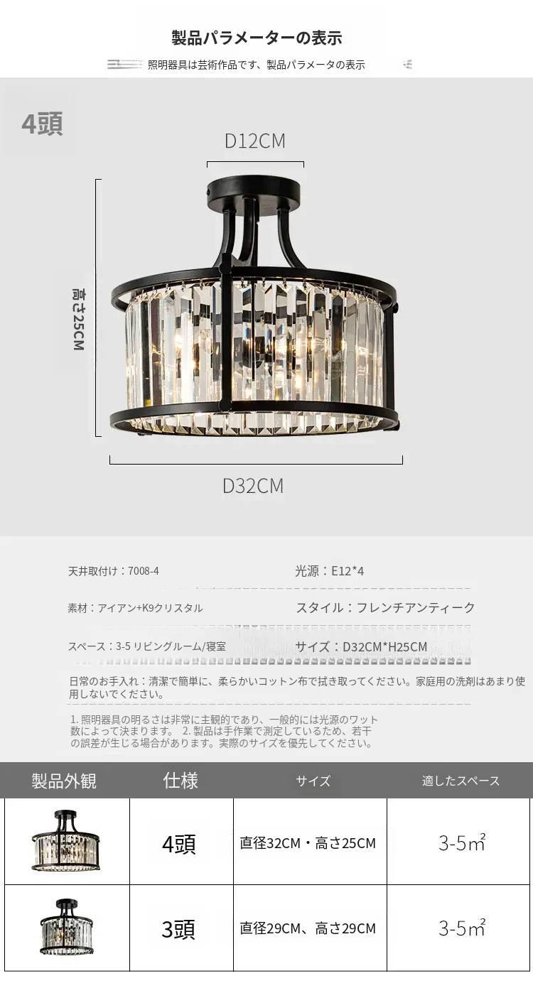 フレンチスタイルシーリングライト|ラグジュアリークリスタルの寝室用|アメリカンブラックミニマリストデザイン|書斎やダイニングにも最適なハーフペンダントシーリングライト!洗練された空間を演出します。