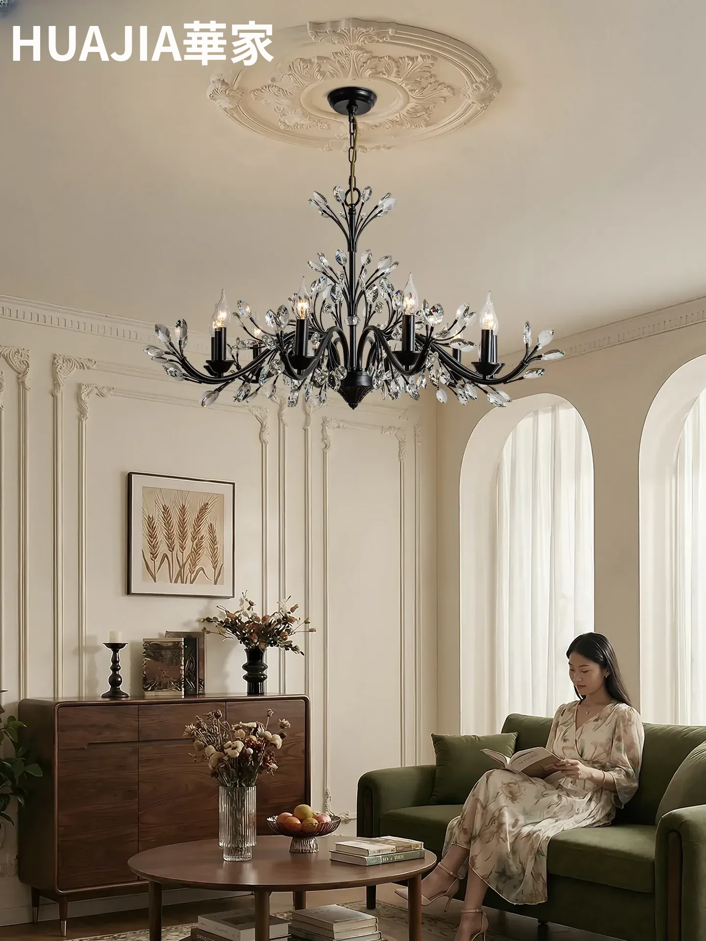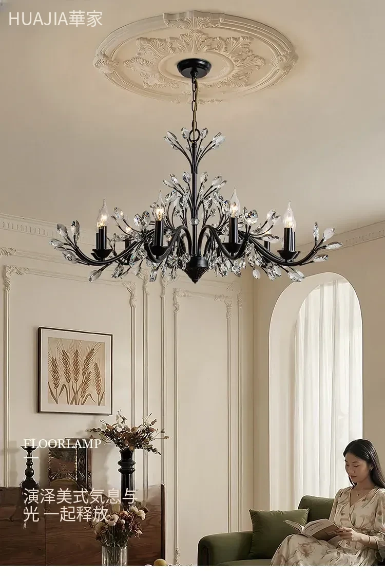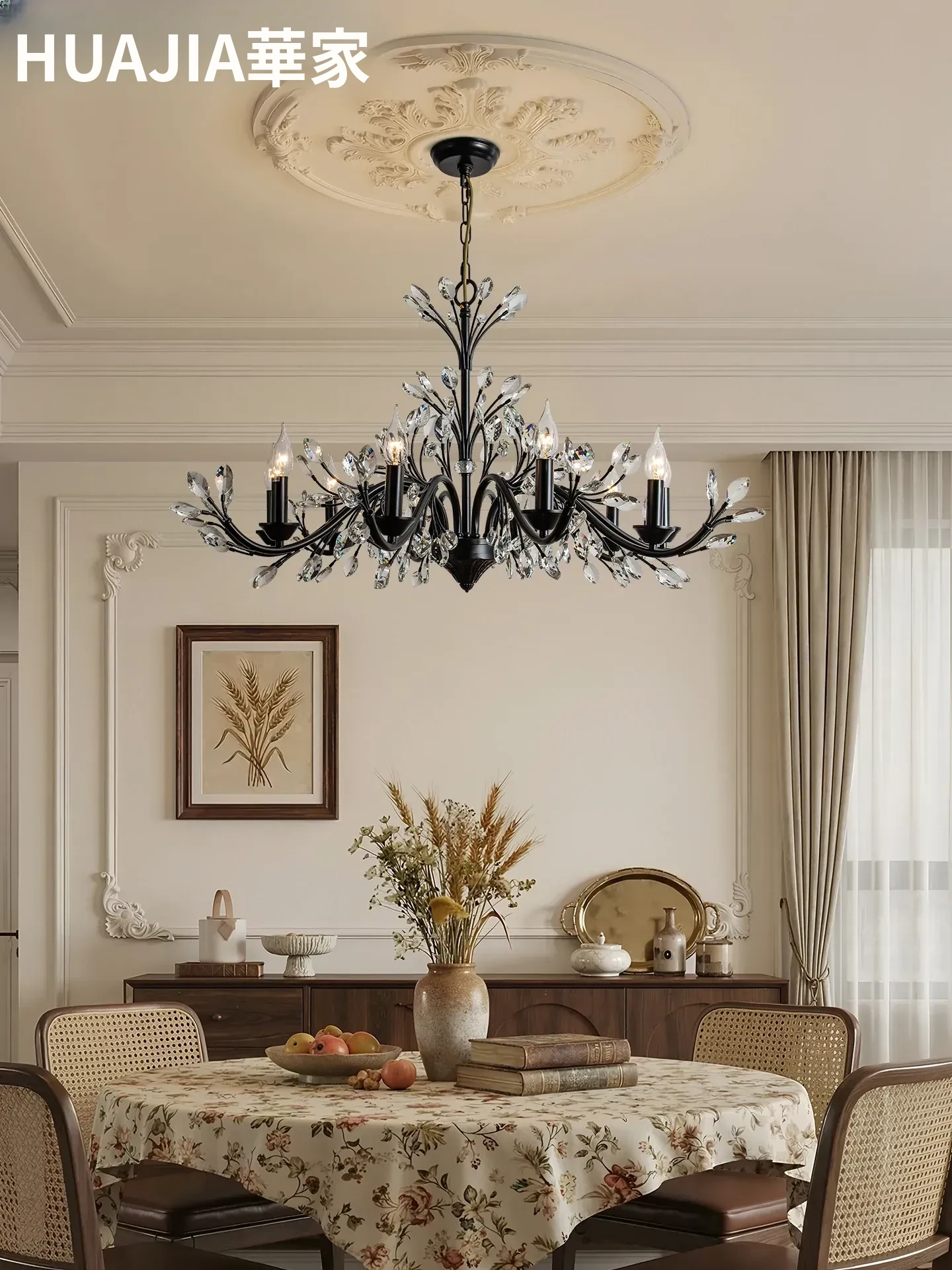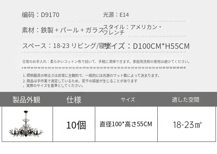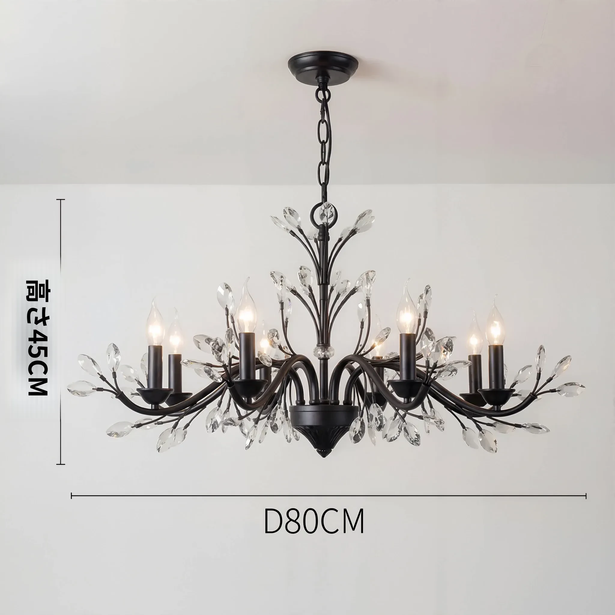 フレンチスタイルのシャンデリア、ラグジュアリーで高級感あふれるクリスタル製。シンプルでスタイリッシュなアメリカンデザイン。リビングや寝室、ダイニングにぴったりのムードを演出する照明。