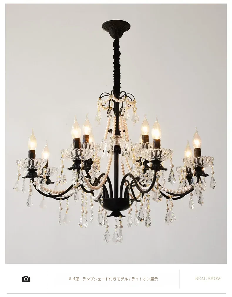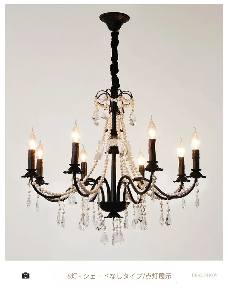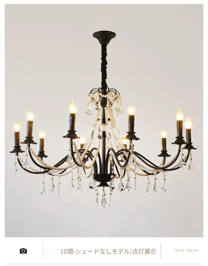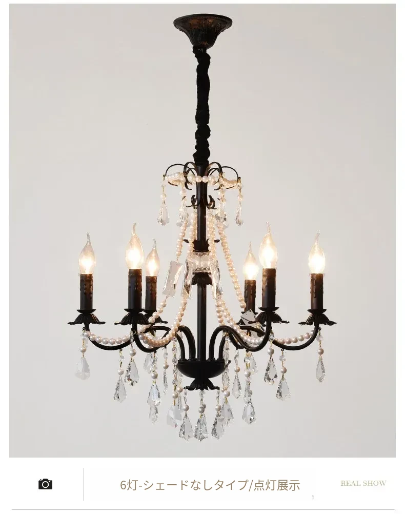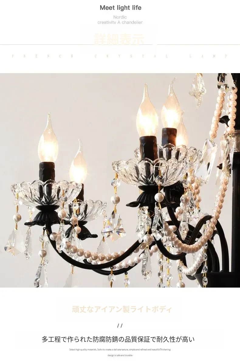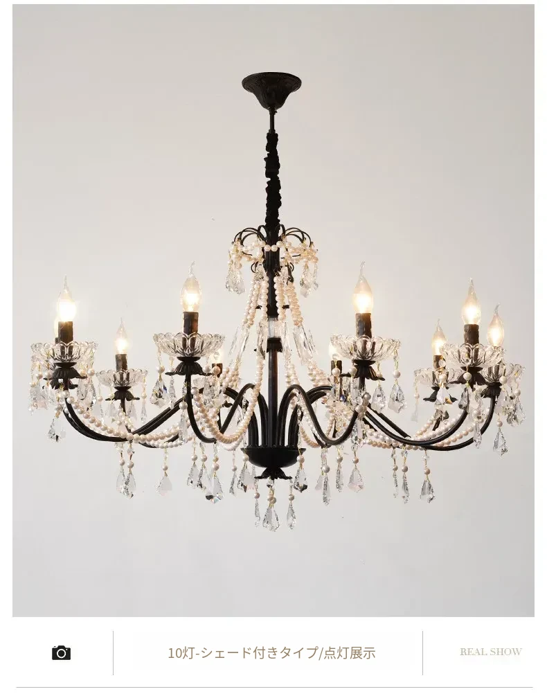 フレンチヴィンテージ風のブラックパールリビングルームシャンデリア|アメリカンレトロなベッドルーム・ダイニングルーム・別荘にぴったりなキャンドルクリスタルランプ!優雅な雰囲気を演出し、特別な空間を創造します。