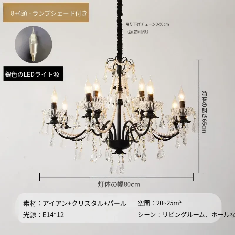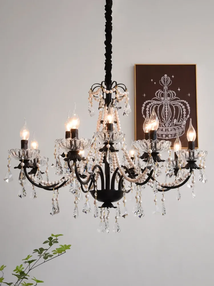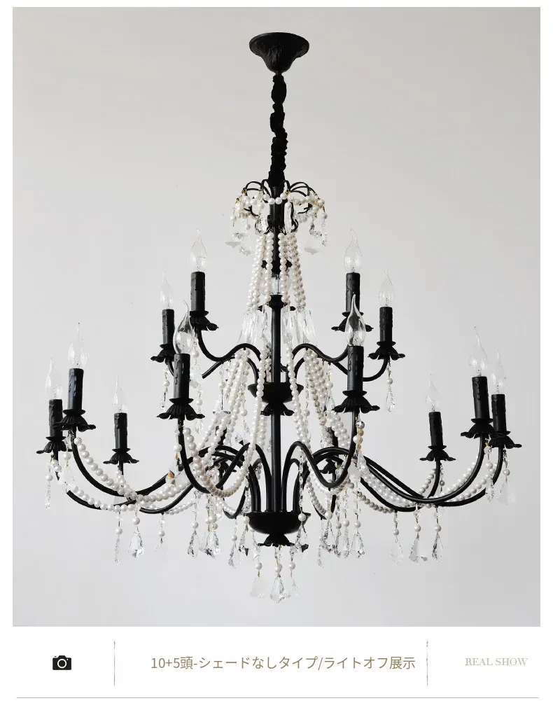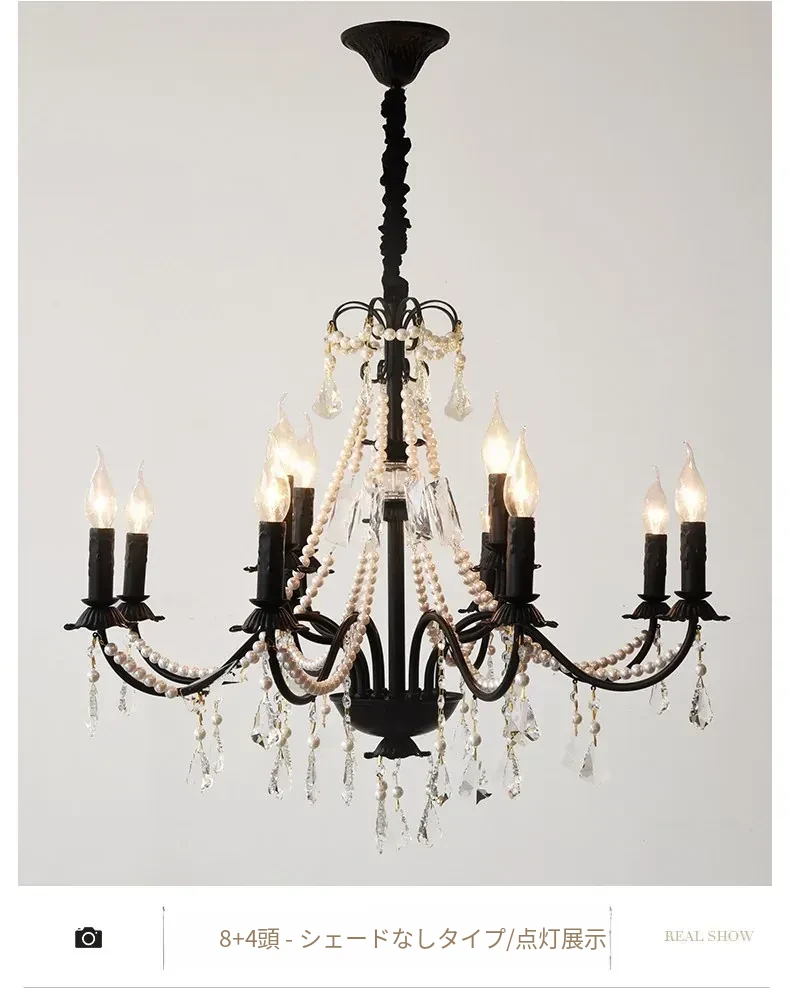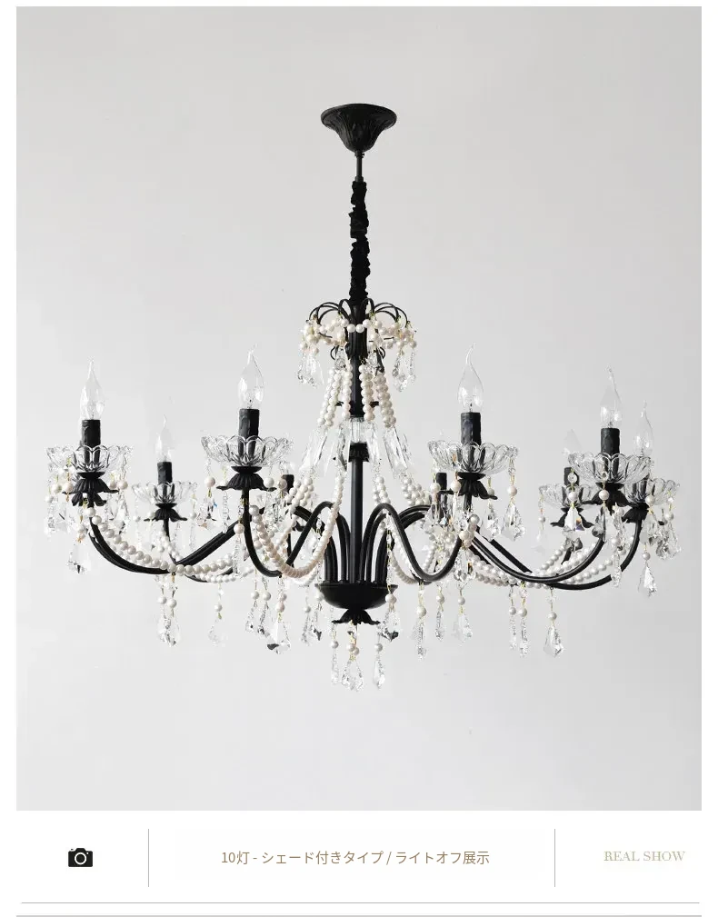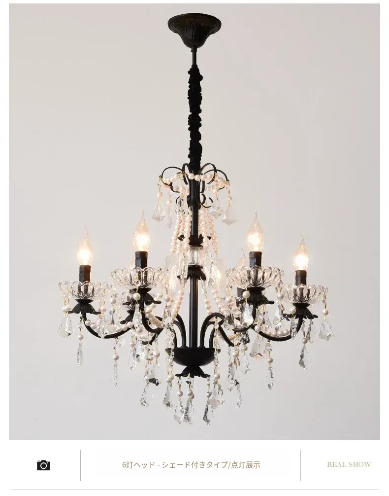 フレンチヴィンテージ風のブラックパールリビングルームシャンデリア|アメリカンレトロなベッドルーム・ダイニングルーム・別荘にぴったりなキャンドルクリスタルランプ!優雅な雰囲気を演出し、特別な空間を創造します。