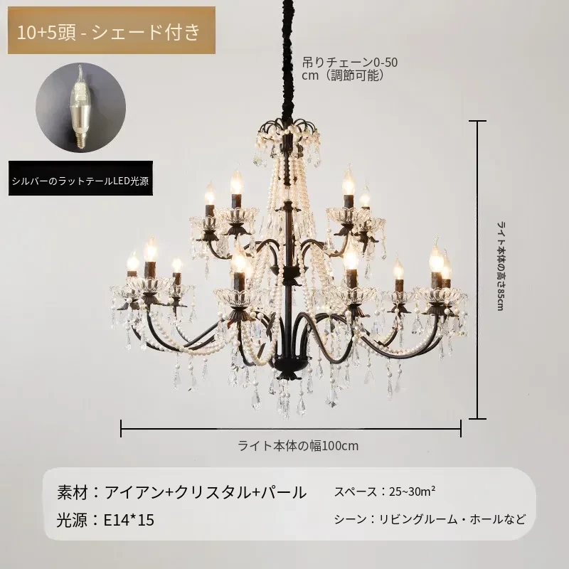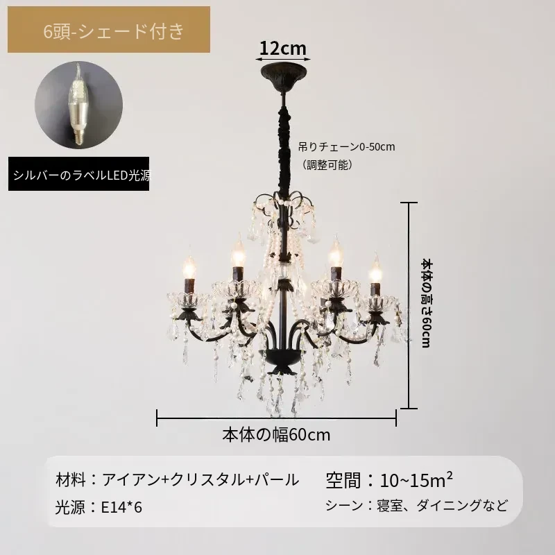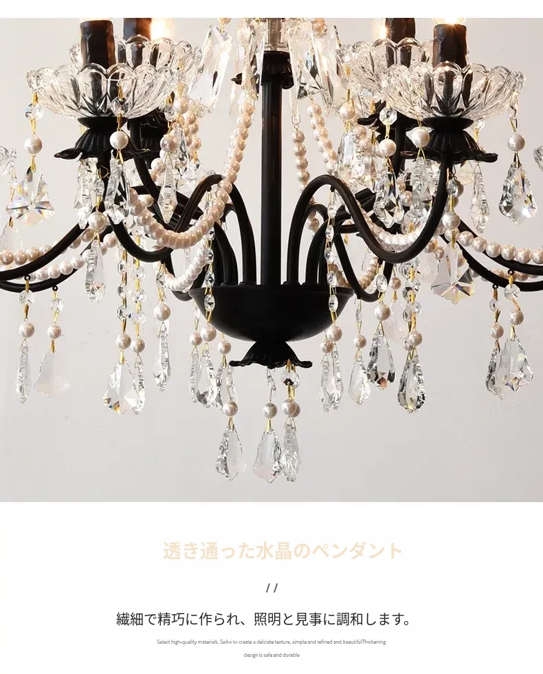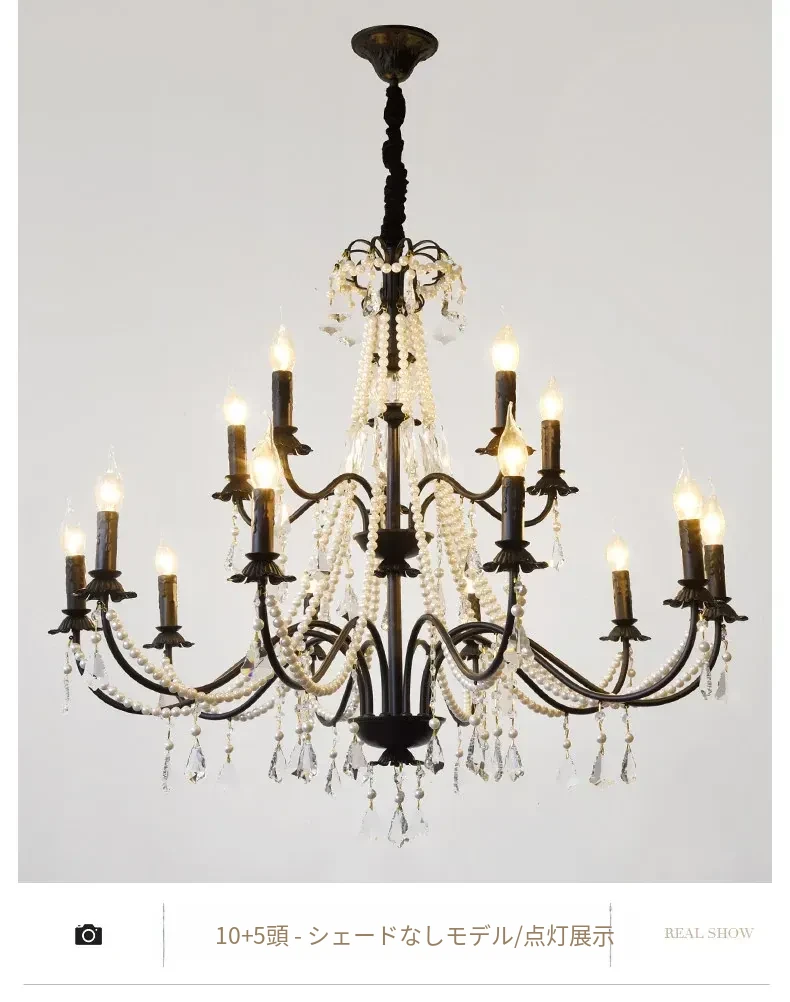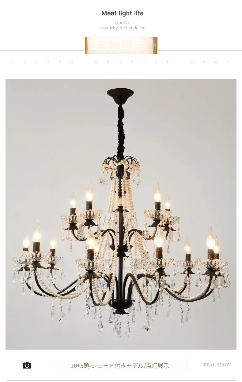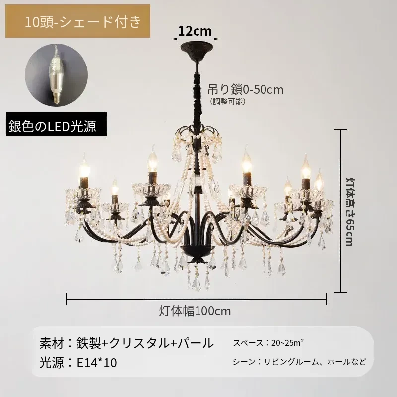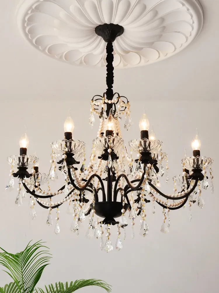 フレンチヴィンテージ風のブラックパールリビングルームシャンデリア|アメリカンレトロなベッドルーム・ダイニングルーム・別荘にぴったりなキャンドルクリスタルランプ!優雅な雰囲気を演出し、特別な空間を創造します。