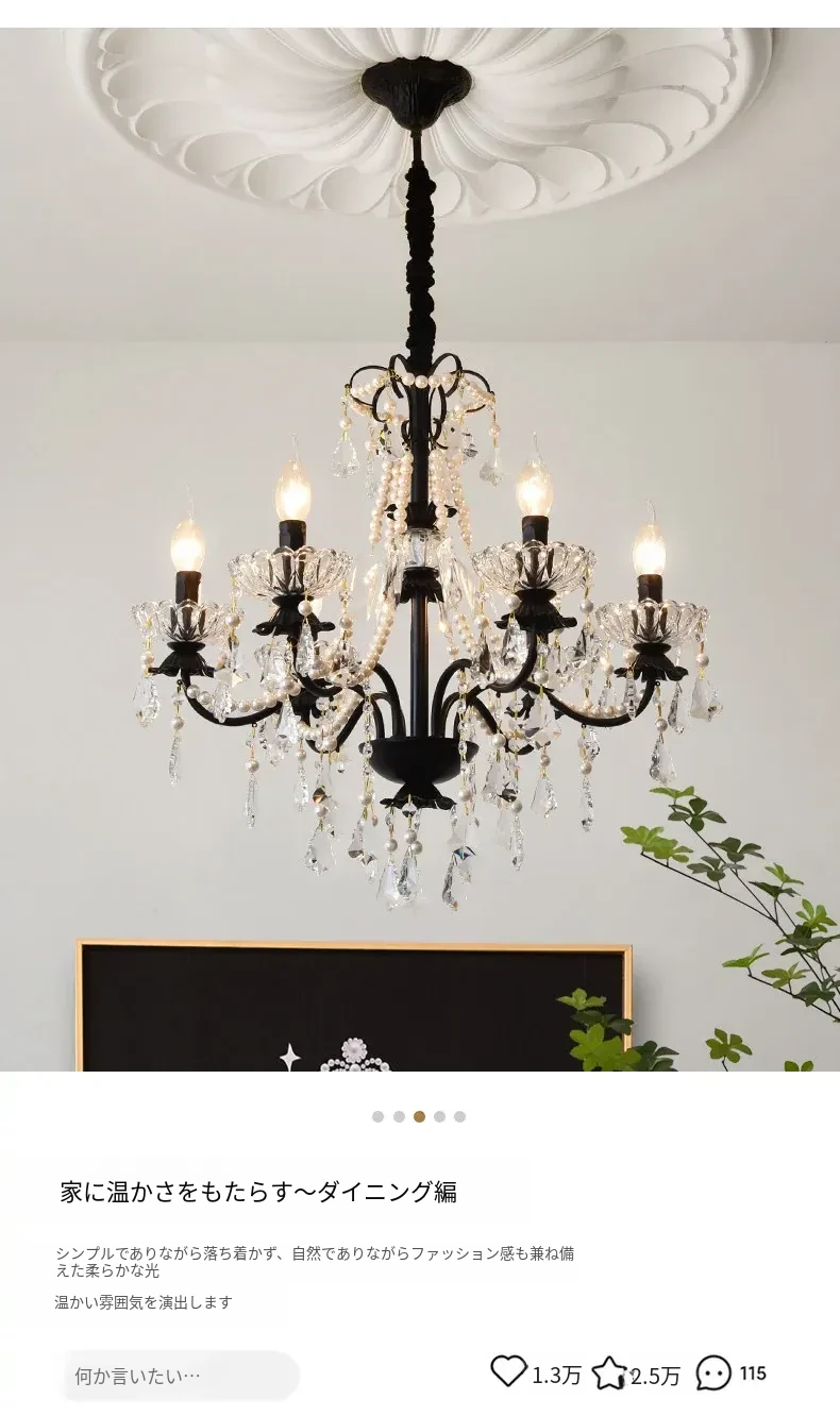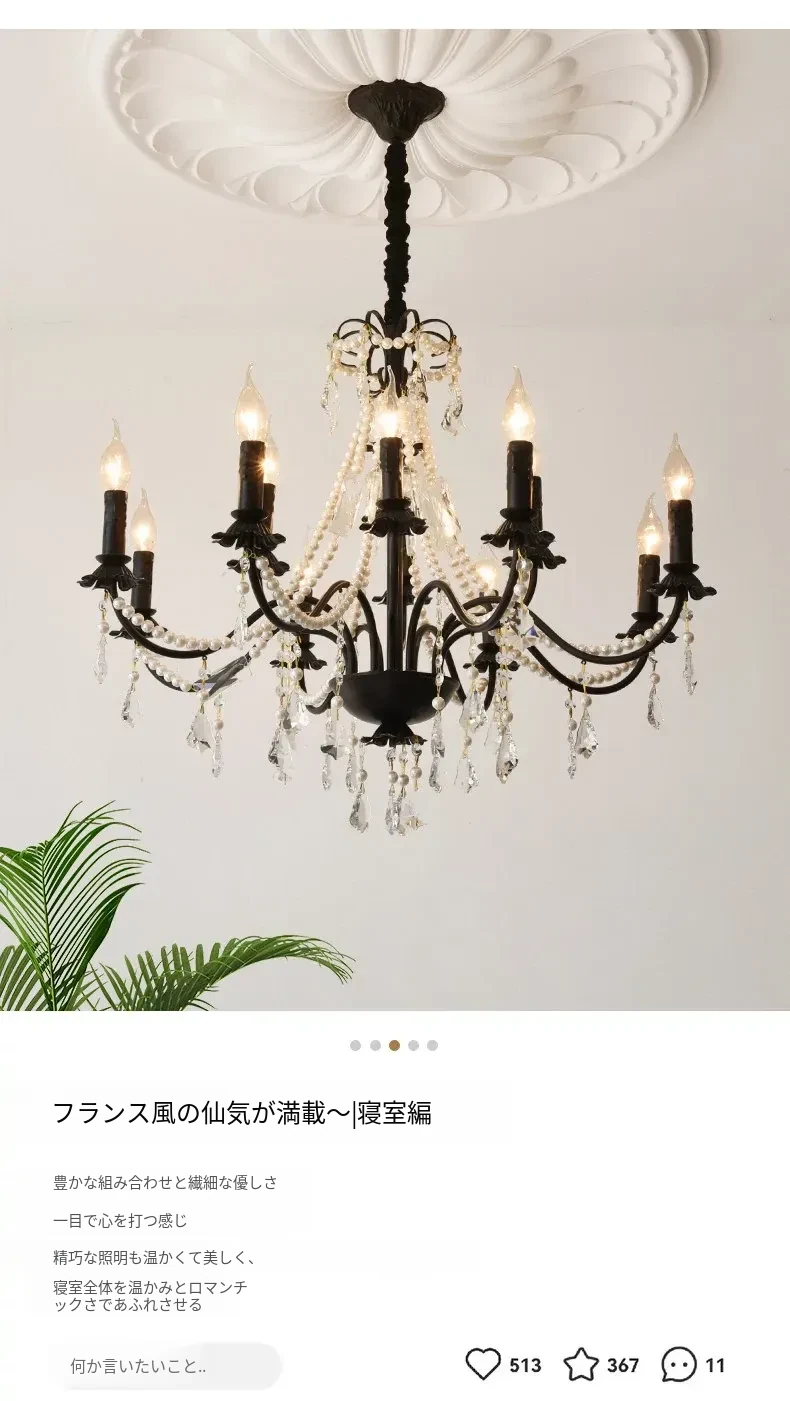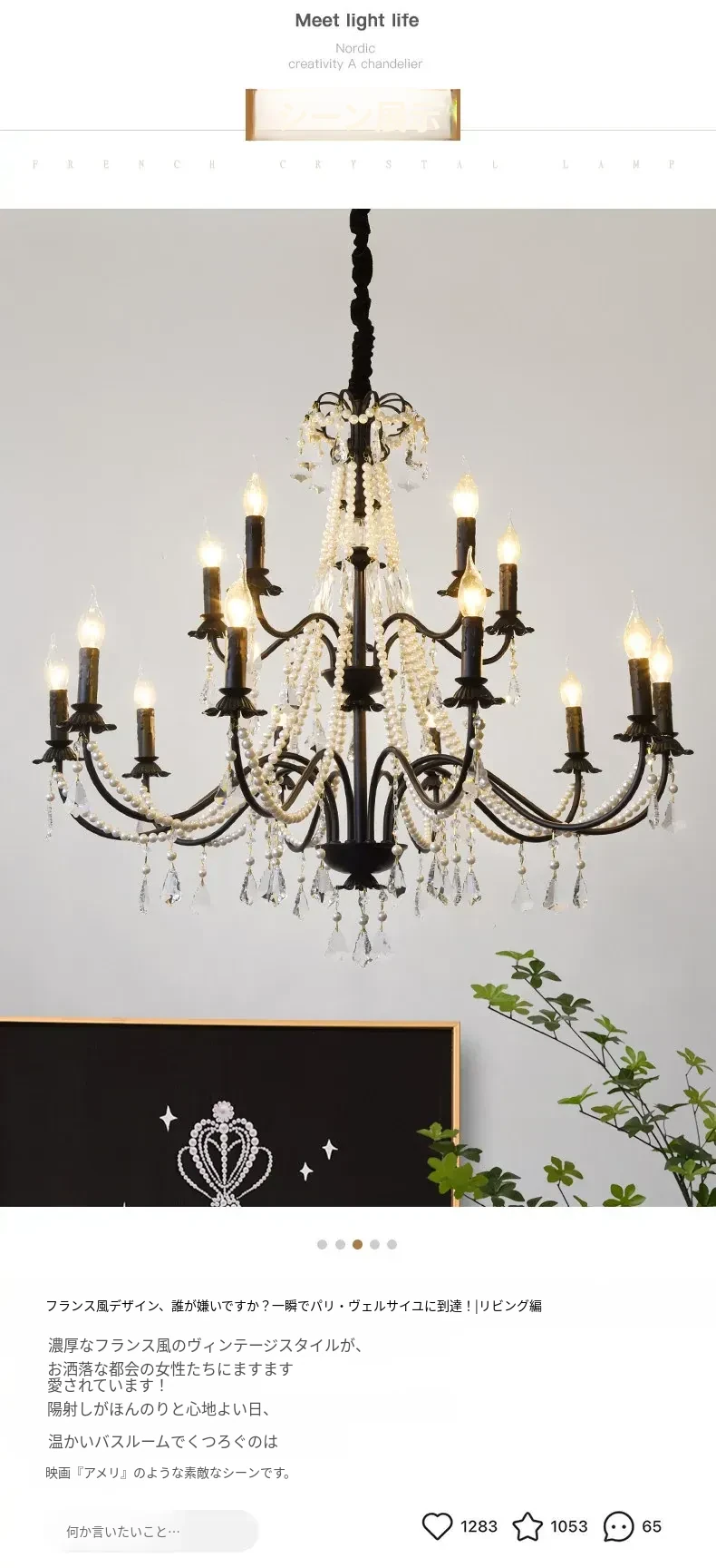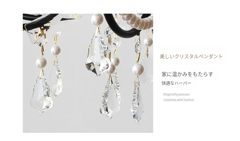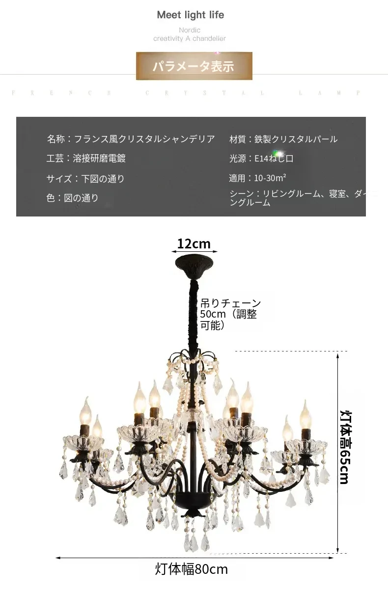 フレンチヴィンテージ風のブラックパールリビングルームシャンデリア|アメリカンレトロなベッドルーム・ダイニングルーム・別荘にぴったりなキャンドルクリスタルランプ!優雅な雰囲気を演出し、特別な空間を創造します。