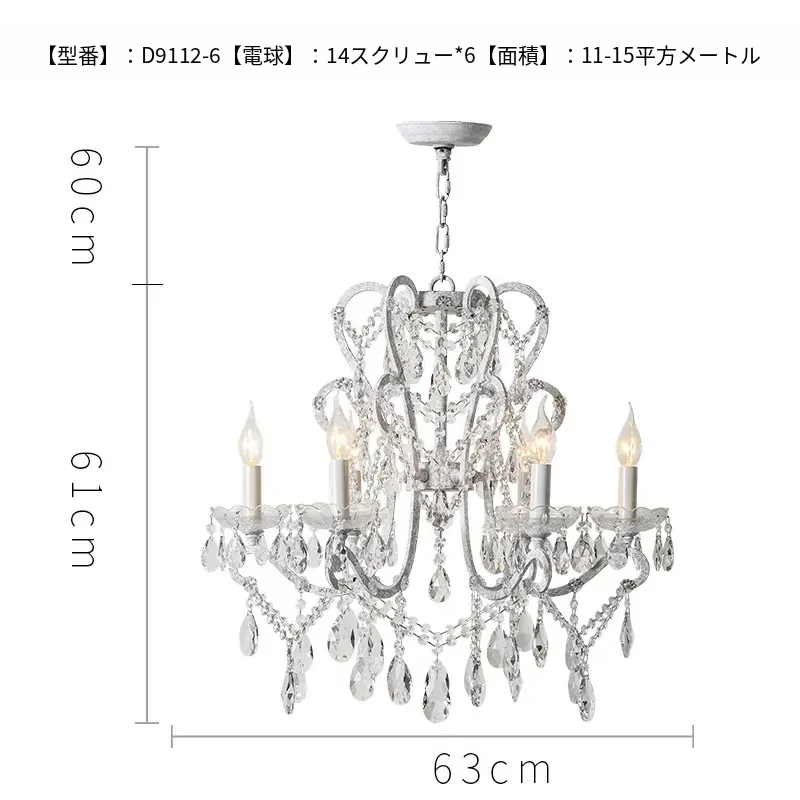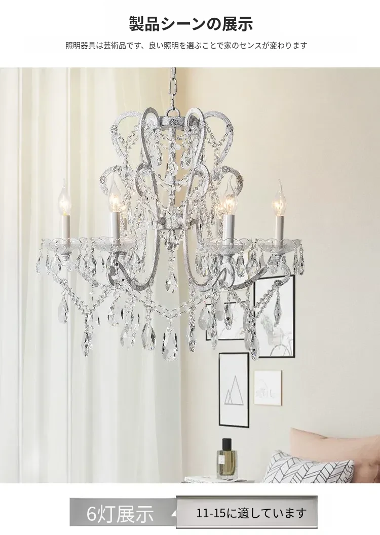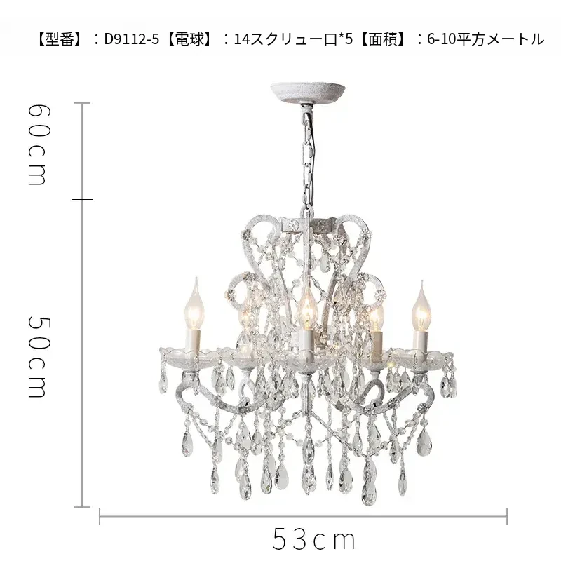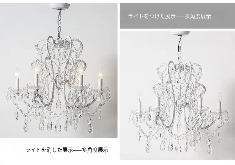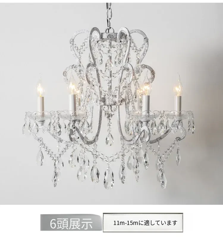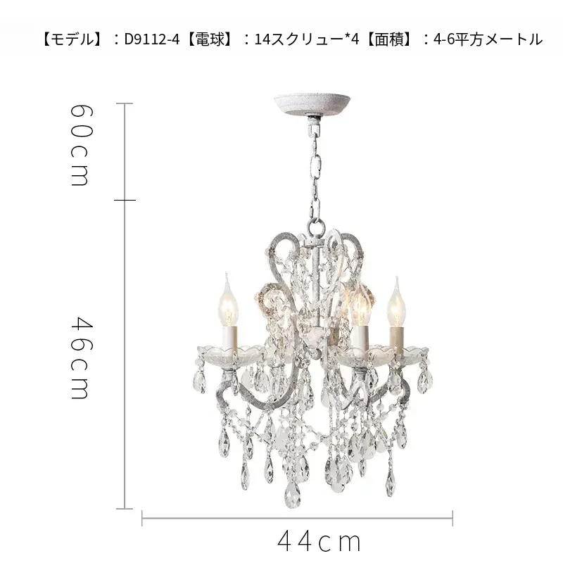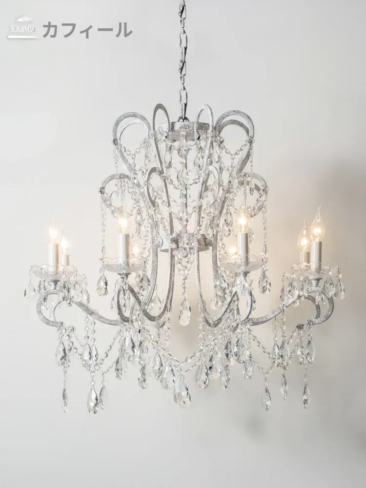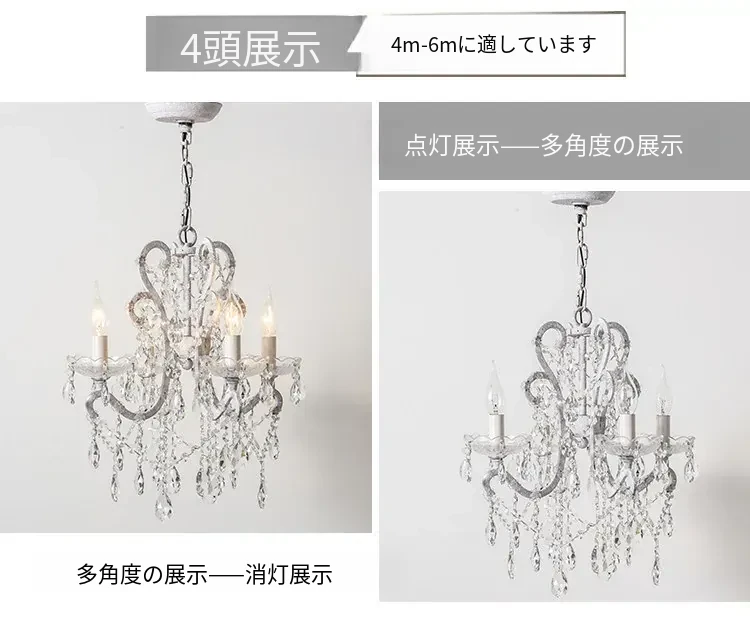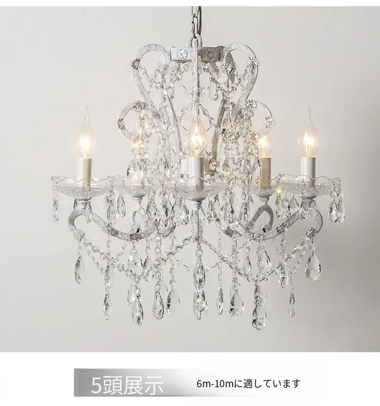 フランス風ヴィンテージシャンデリア アメリカンレトロクリスタルライト ホワイトクリームの雰囲気漂う 寝室・書斎・ダイニングに最適な照明