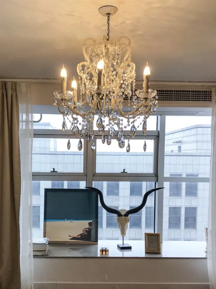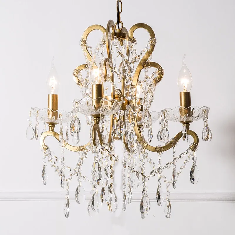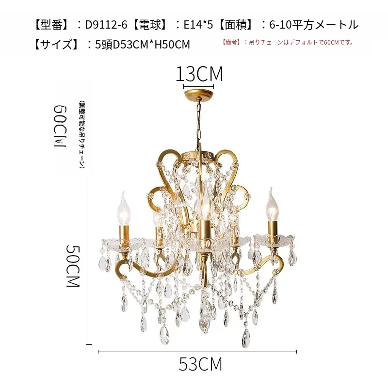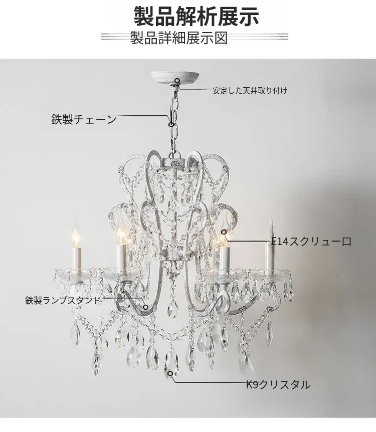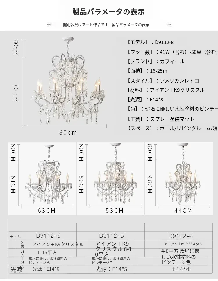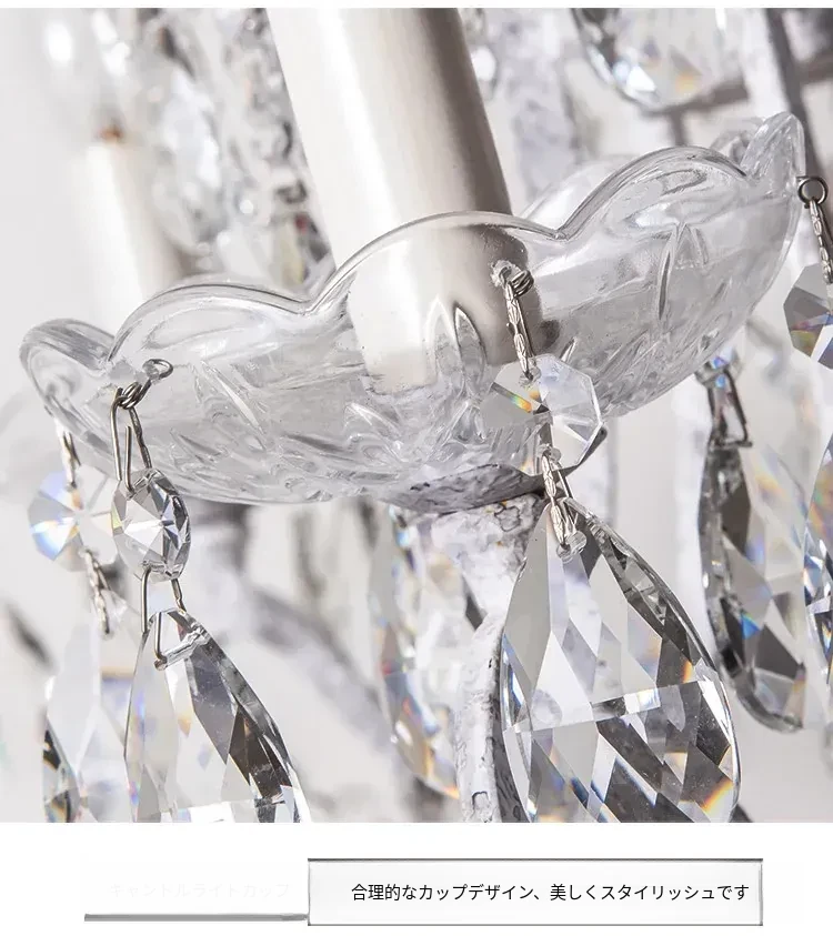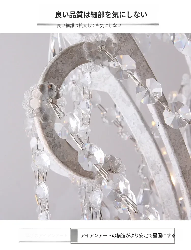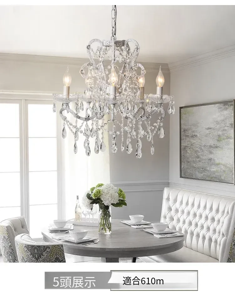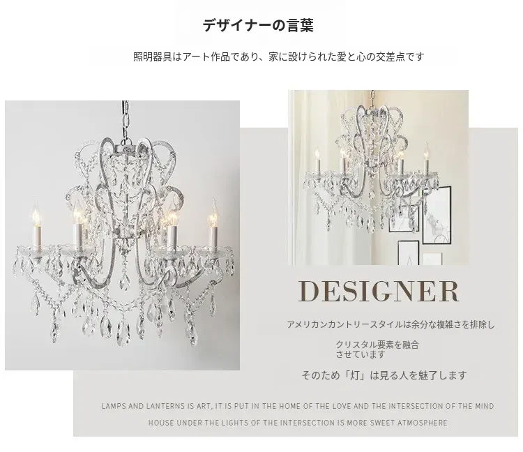 フランス風ヴィンテージシャンデリア アメリカンレトロクリスタルライト ホワイトクリームの雰囲気漂う 寝室・書斎・ダイニングに最適な照明