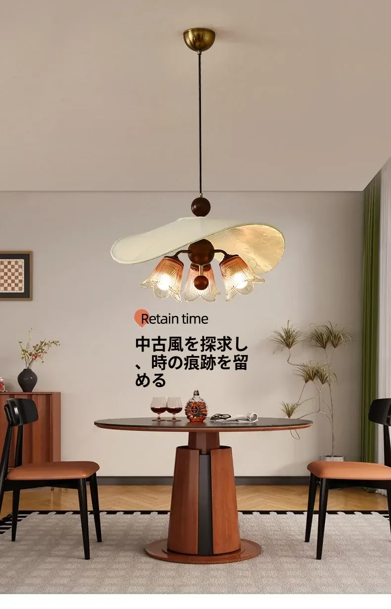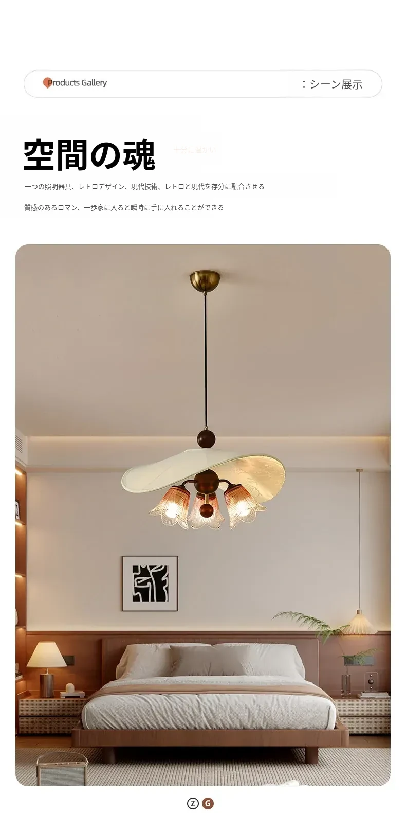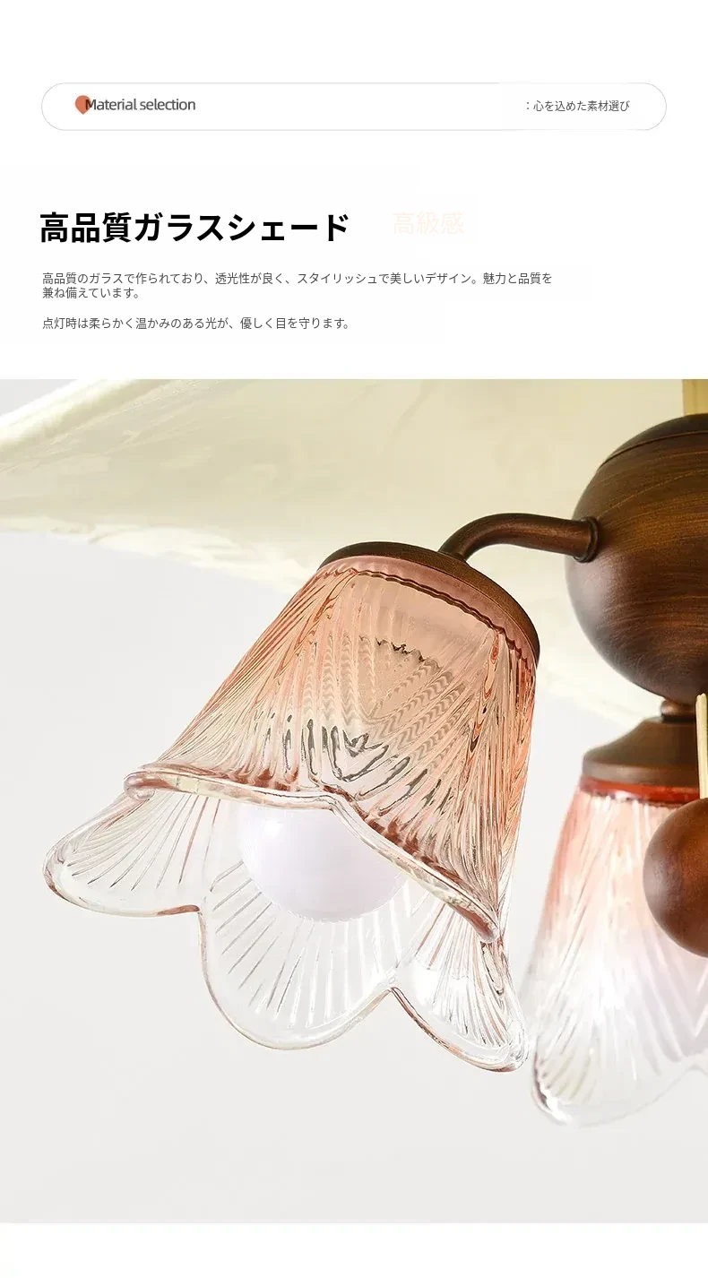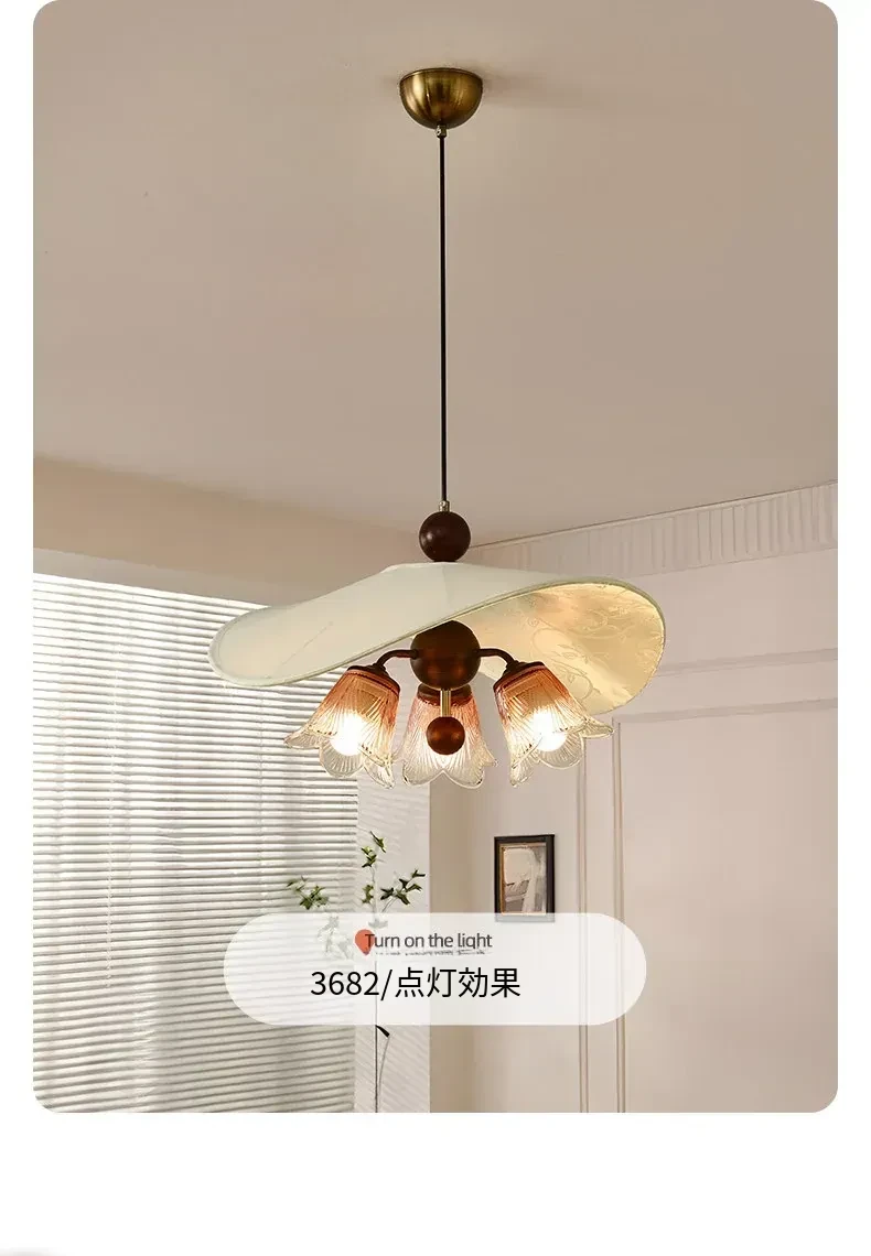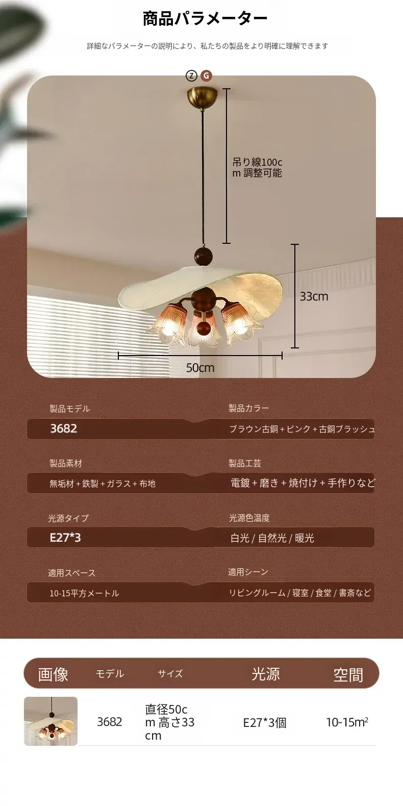 フレンチヴィンテージシャンデリア|アメリカンレトロ布製ダイニングライト|雰囲気抜群のベッドルーム&書斎用ガラス吊り灯具!おしゃれで温かみのある空間を演出します。