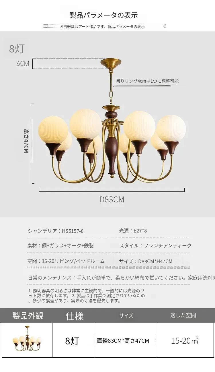 フレンチシャンデリア ヴィンテージ風リビングライト アメリカンレトロ バウハウススタイル 全銅製 ダイニング用シャンデリア おしゃれで優雅な空間を演出します!