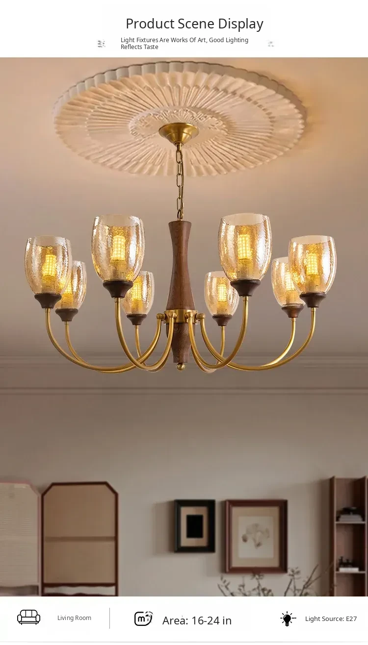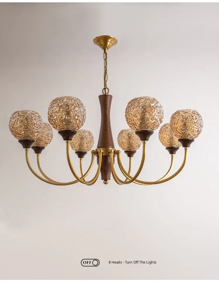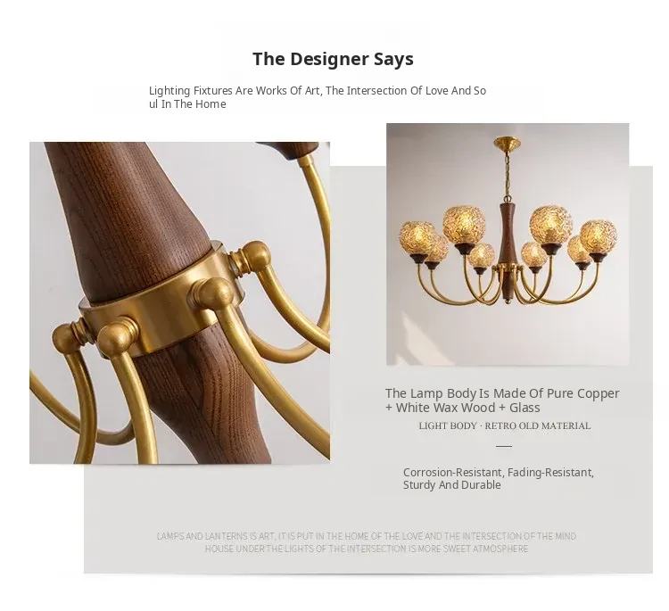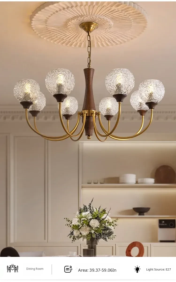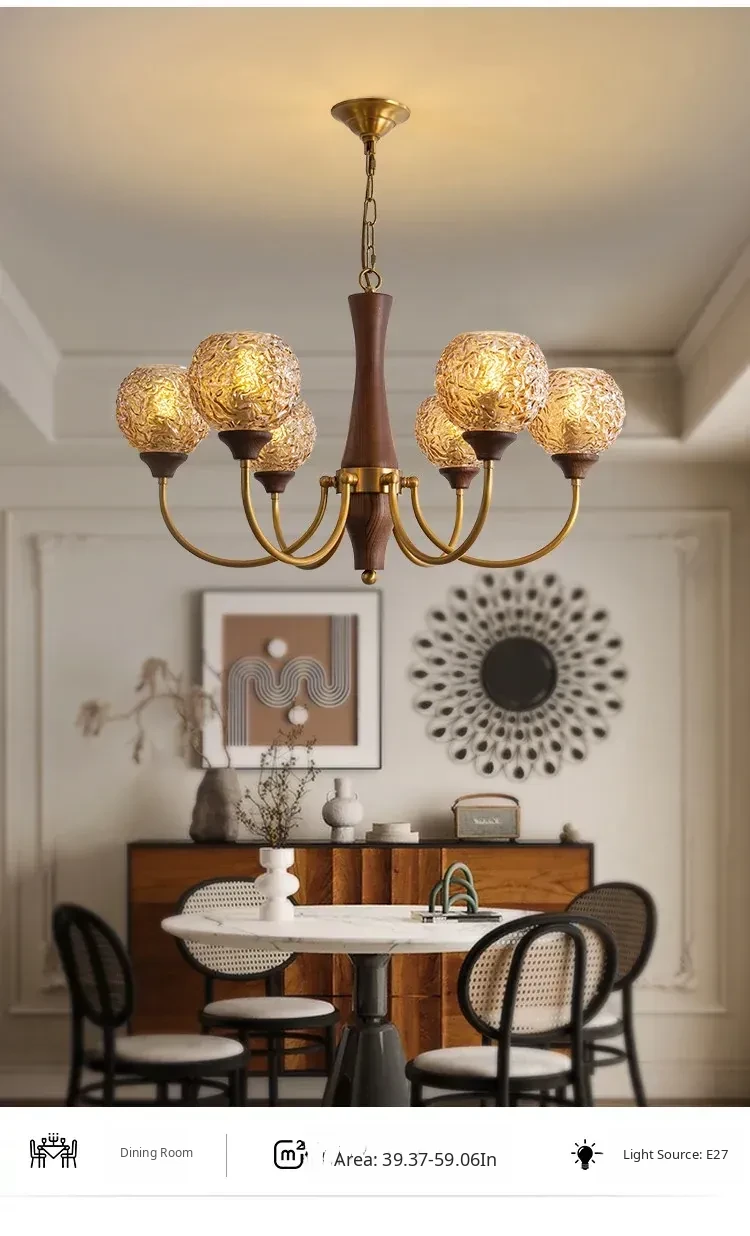 French Vintage Chandelier for Living Room, Dining Room, and Bedroom - Elegant Pure Copper Retro Lighting Fixture for a Cozy Atmosphere
